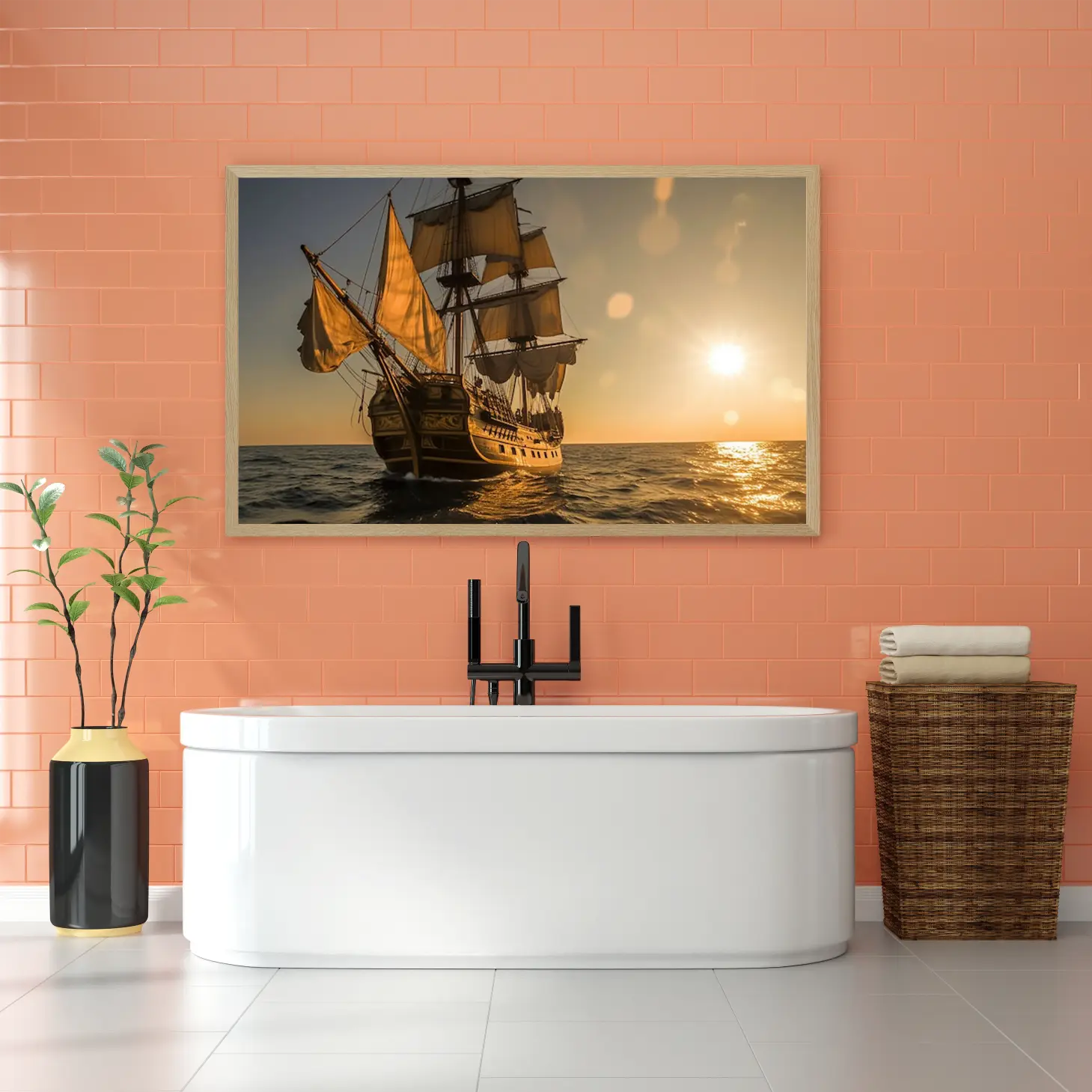 استمتع بجمال لوحة الكانفاس التي تجسد لحظة ساحرة من الإبحار تحت أشعة الشمس الذهبية، حيث يلتقي الفن بالتاريخ في تصميم راقٍ يضفي لمسة من الفخامة على أي مساحة. تتوفر هذه اللوحة بمقاسات متنوعة وإطارات أنيقة، مما يجعلها خيارًا مثاليًا للتعبير عن الذوق الرفيع، أو لتكون هدية مميزة في المناسبات الخاصة.