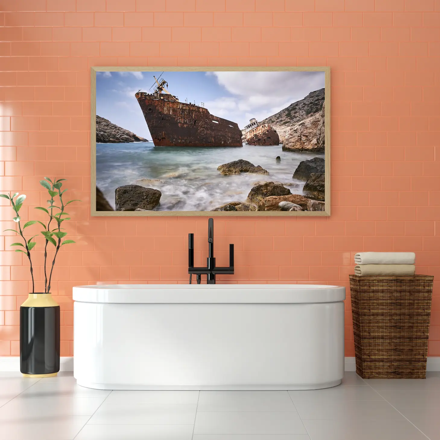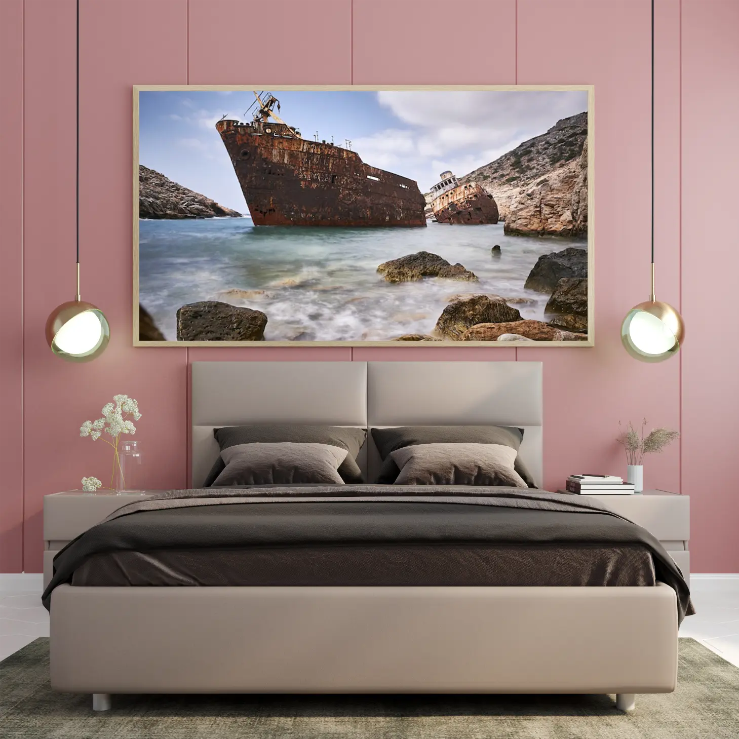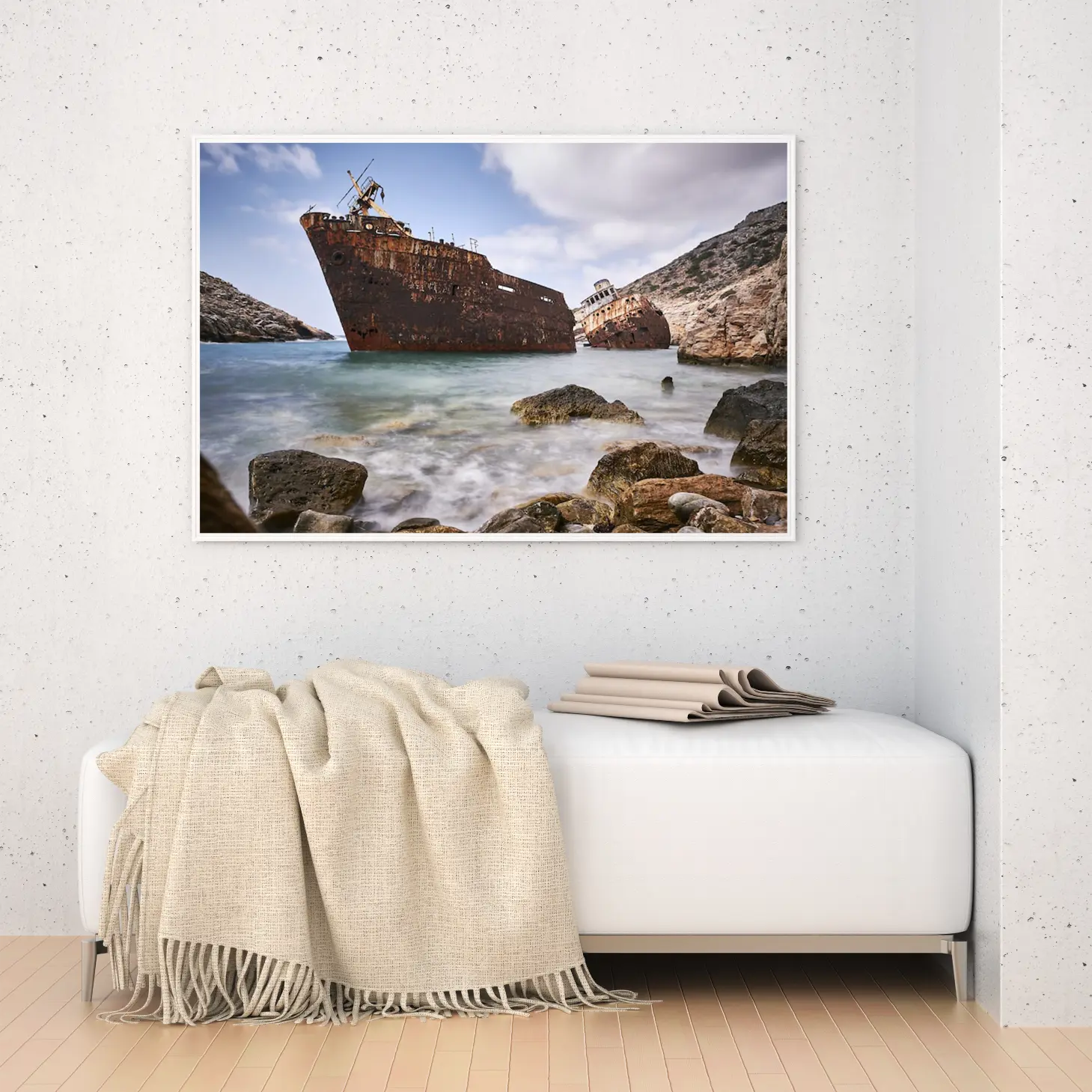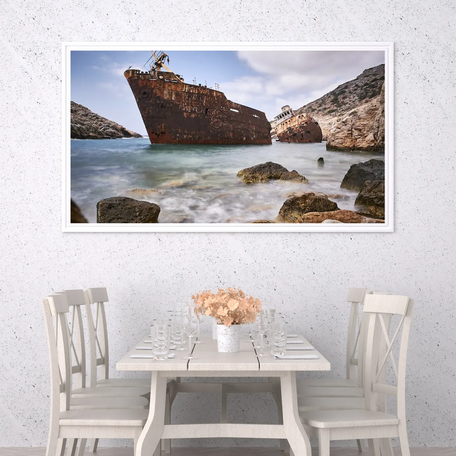 استمتع بجمال هذه اللوحة الفريدة التي تجسد لحظة ساحرة من التاريخ البحري، حيث تلتقي الألوان الدافئة للمياه مع تفاصيل السفن المهجورة. تتوفر بأحجام متعددة وإطارات أنيقة، مما يجعلها خيارًا مثاليًا لإضفاء لمسة من الفخامة على أي مساحة، أو كهدية تعبّر عن الذوق الرفيع في المناسبات الخاصة.