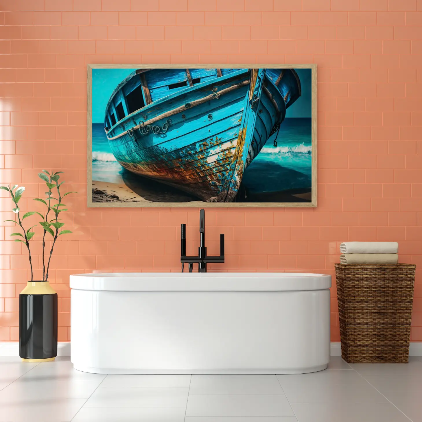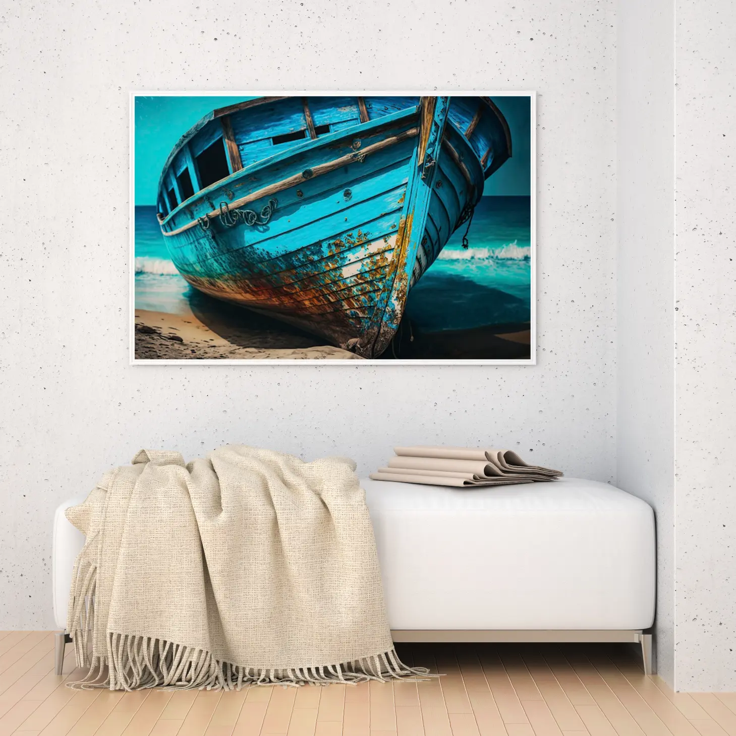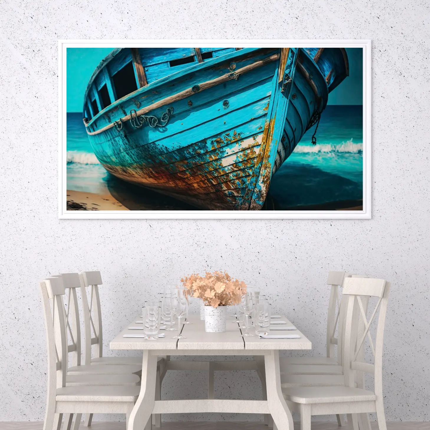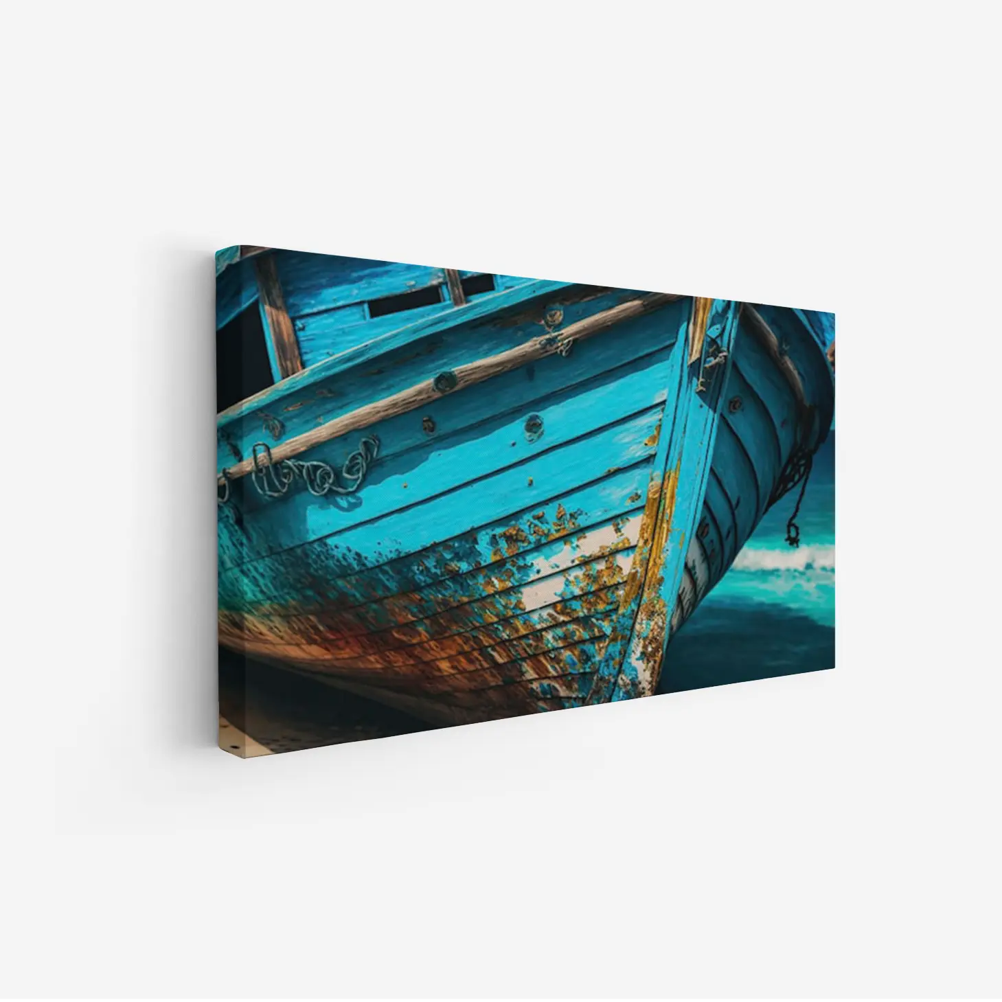 تجسد هذه اللوحة الفنية روح البحر وجمال الطبيعة، حيث تبرز تفاصيل قارب قديم بلون أزرق مميز، مما يضفي إحساسًا بالهدوء والسكينة على أي مساحة تُعرض فيها. تعكس الألوان الزاهية والملمس الفريد للقارب تاريخًا عريقًا، مما يجعلها قطعة فنية تضفي لمسة من الأصالة على ديكور منزلي عصري. إن وجود هذه اللوحة في أي غرفة يخلق أجواءً مريحة، ويعزز من نمط الحياة الهادئ الذي يسعى إليه الكثيرون.