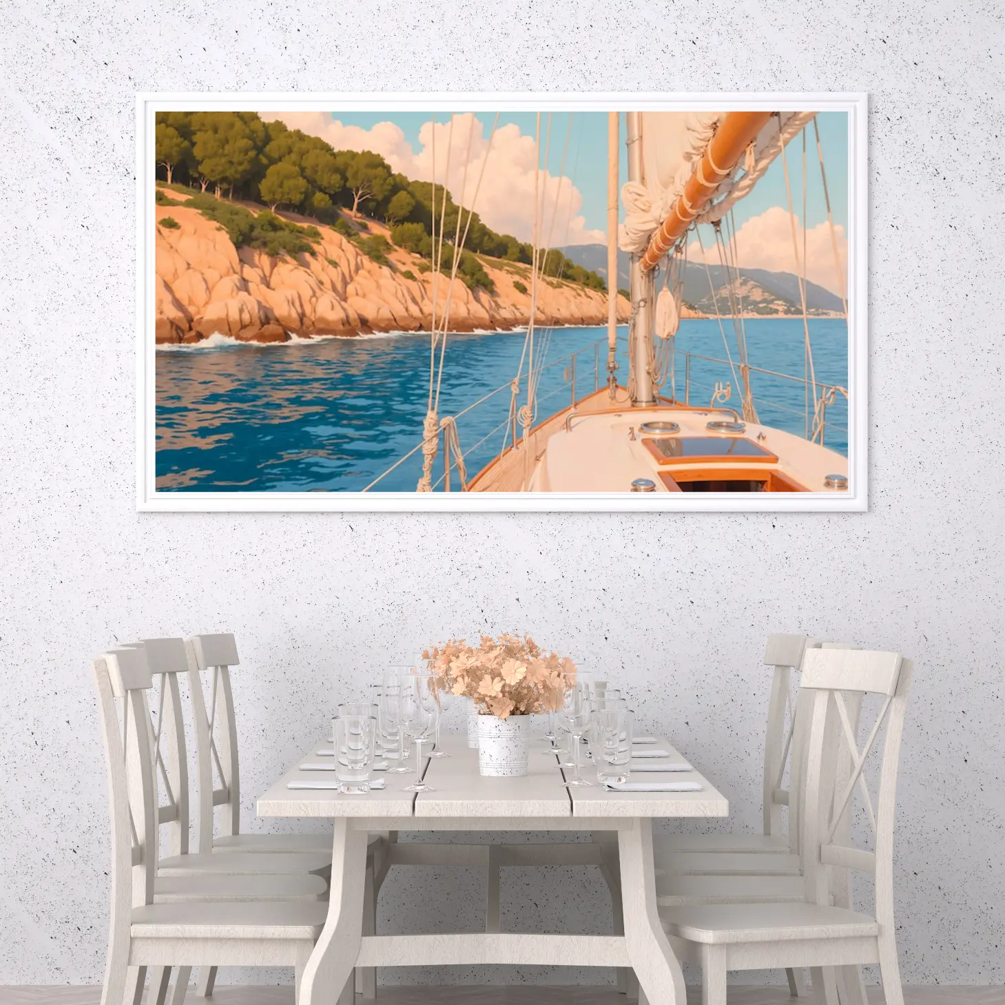 استمتع بجمال البحر وألوانه الساحرة مع هذه اللوحة الفاخرة التي تجسد لحظة هادئة على متن يخت. تتوفر بأحجام متعددة وإطارات أنيقة، مما يجعلها خيارًا مثاليًا للتزيين أو كهدية تعبّر عن الذوق الرفيع في المناسبات الخاصة. اجعل كل زاوية من منزلك تنبض بالحياة مع لمسة فنية راقية تُقدَّم بثقة.