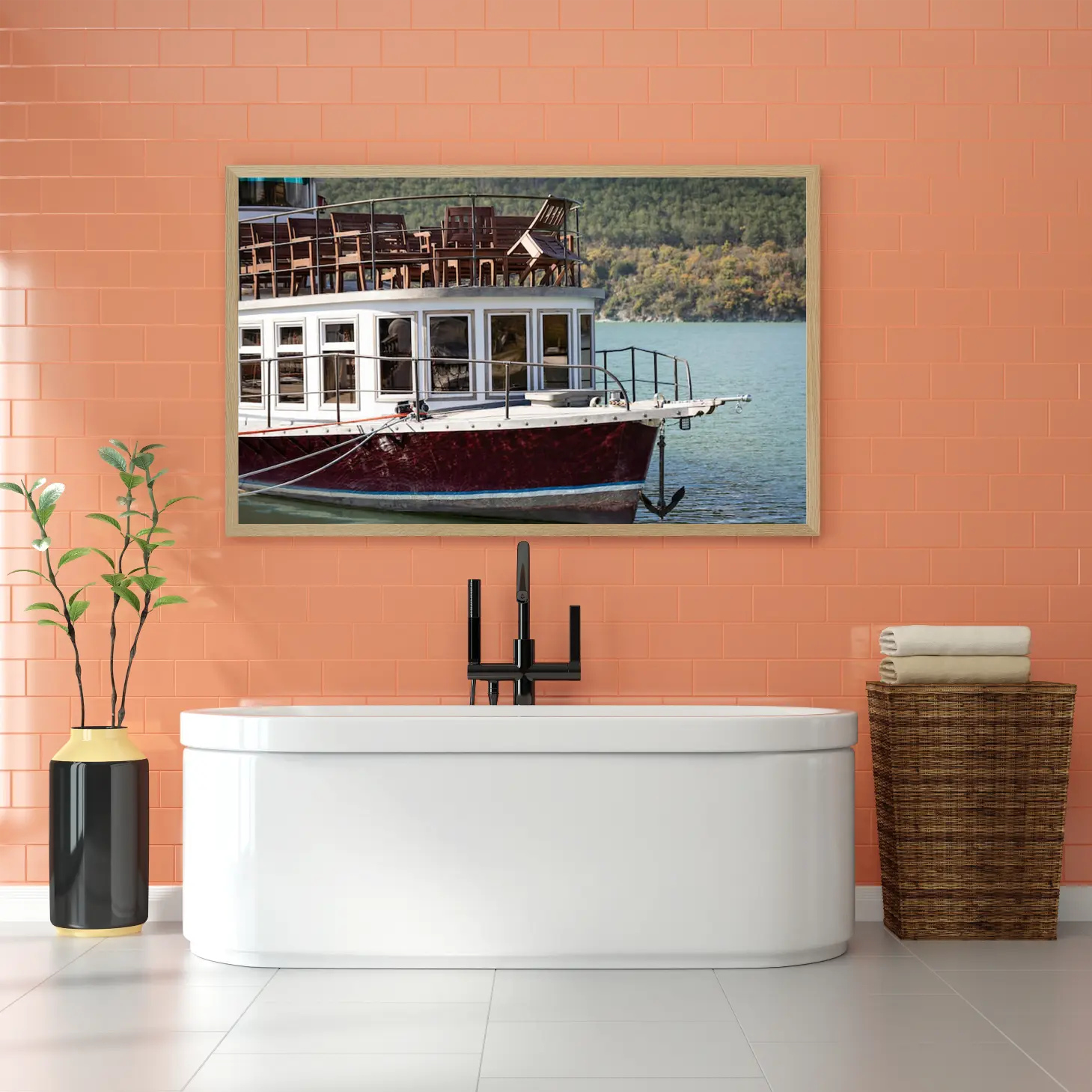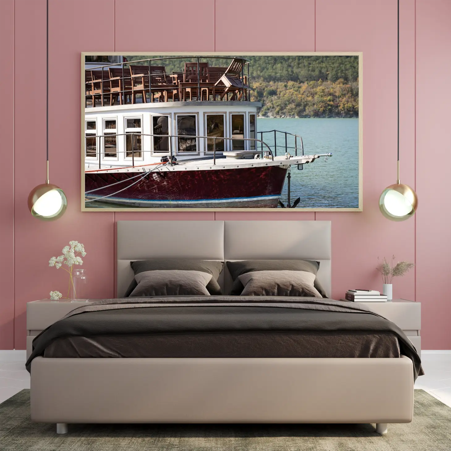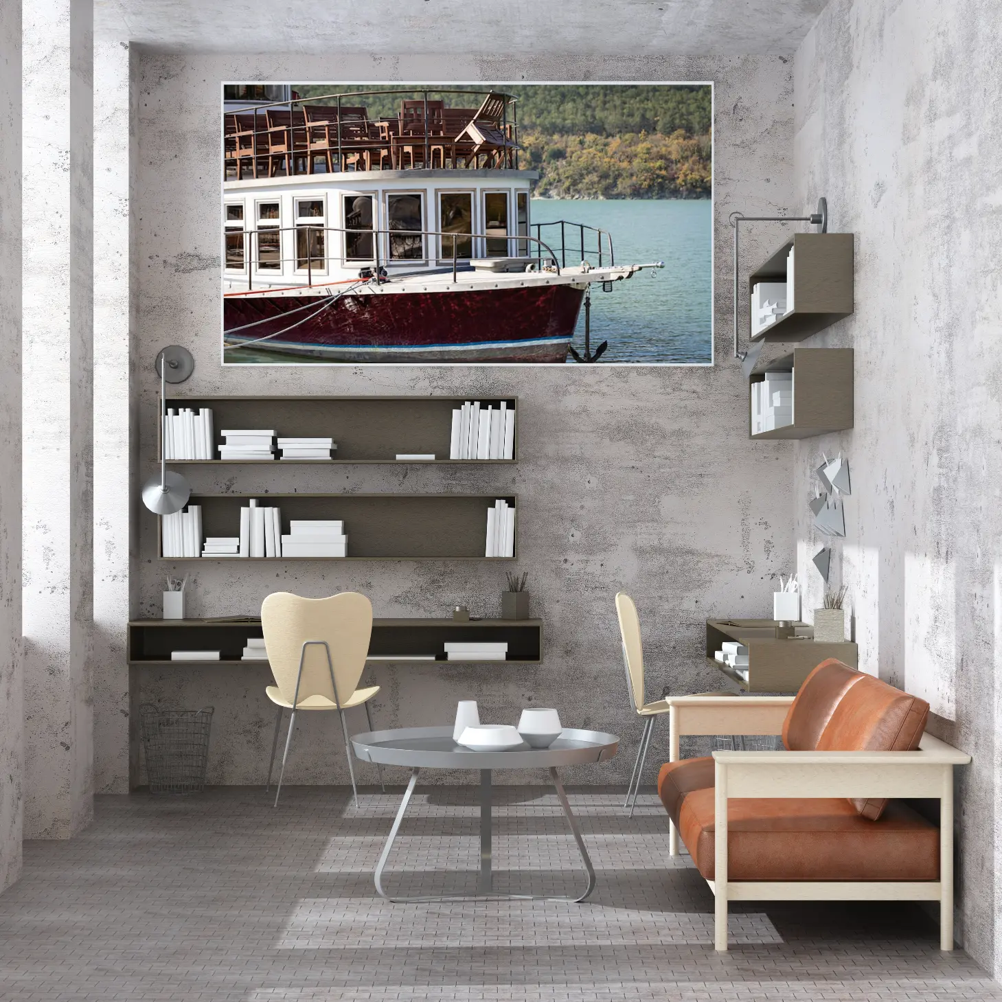 تجسد هذه اللوحة الفنية مشهداً مفعماً بالحياة، حيث تتألق قارب جميل يتوسط مياه هادئة، محاطاً بألوان الطبيعة الخلابة. تعكس الأجواء العامة شعوراً بالهدوء والسكينة، مما يجعلها خياراً مثالياً لإضفاء لمسة من الأناقة على أي مساحة. إن وجود هذه القطعة الفنية في منزلك أو مكتبك سيخلق جواً من الاسترخاء والراحة، ويعكس نمط حياة متوازن ومتناغم.