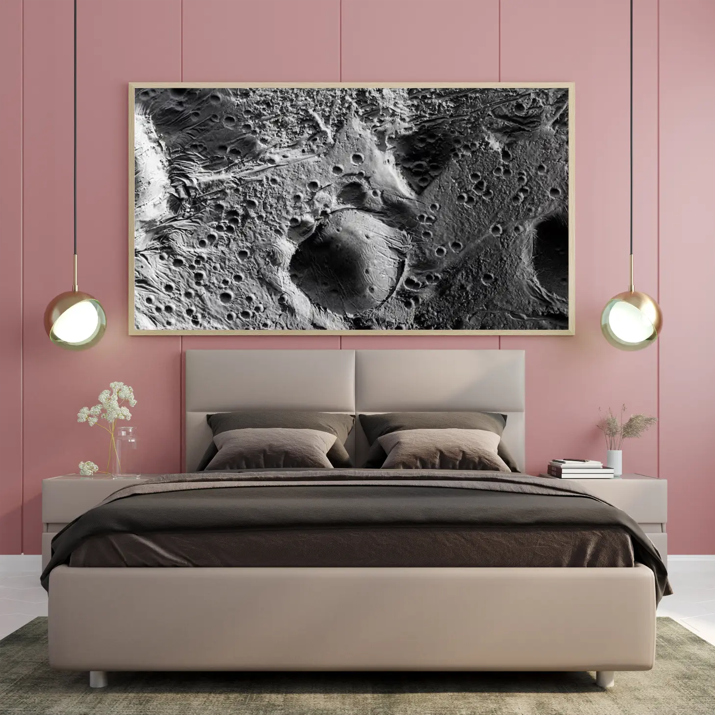 استمتع بجمال الفضاء الغامض مع هذه اللوحة الفنية الرائعة التي تجسد تفاصيل سطح الكواكب بلونها الرمادي الأنيق. تضفي هذه التحفة لمسة من الفخامة والغموض على أي مساحة، مما يجعلها الخيار المثالي لعشاق الفلك والفن. اجعل جدرانك تتحدث عن الإبداع والخيال مع هذه اللوحة الفريدة.