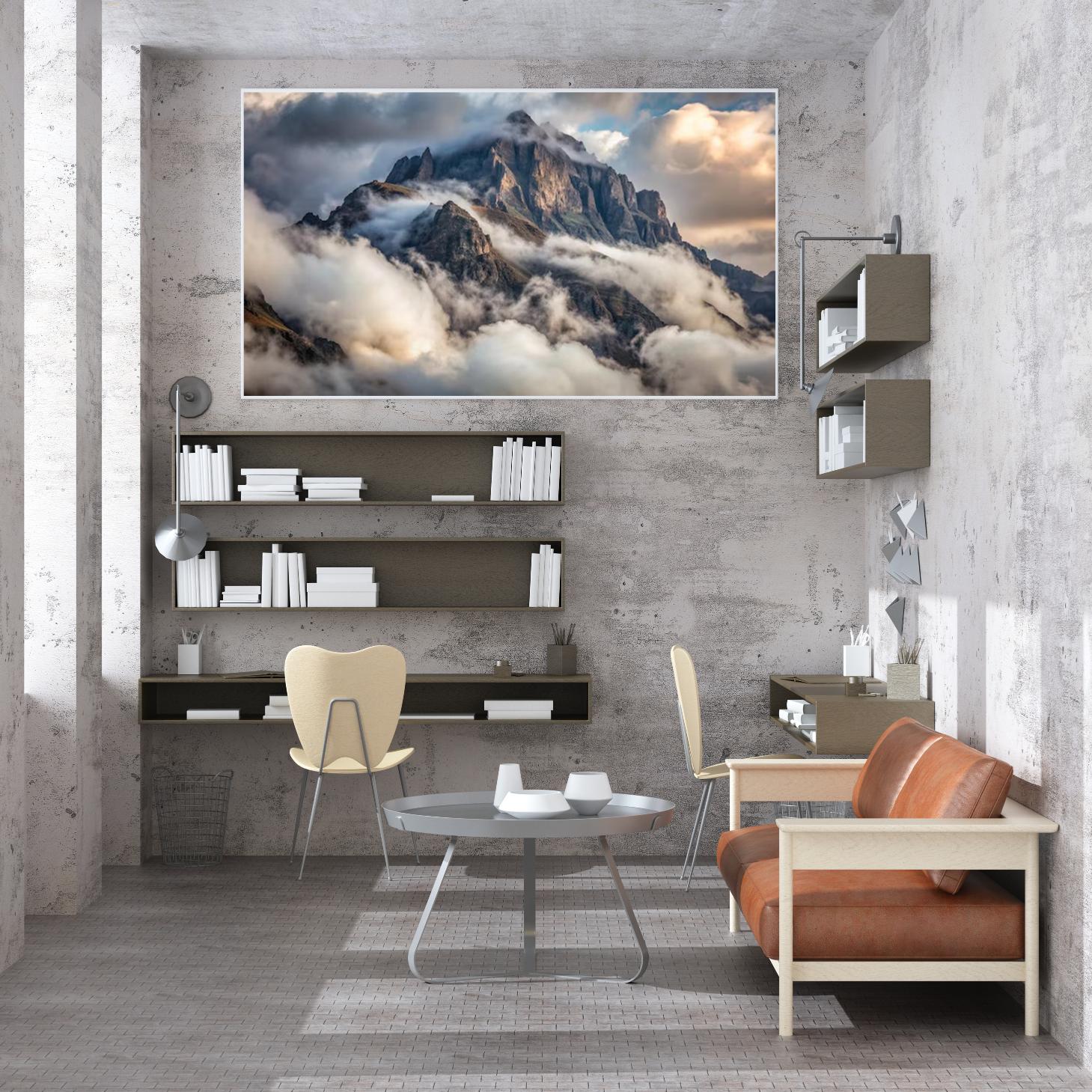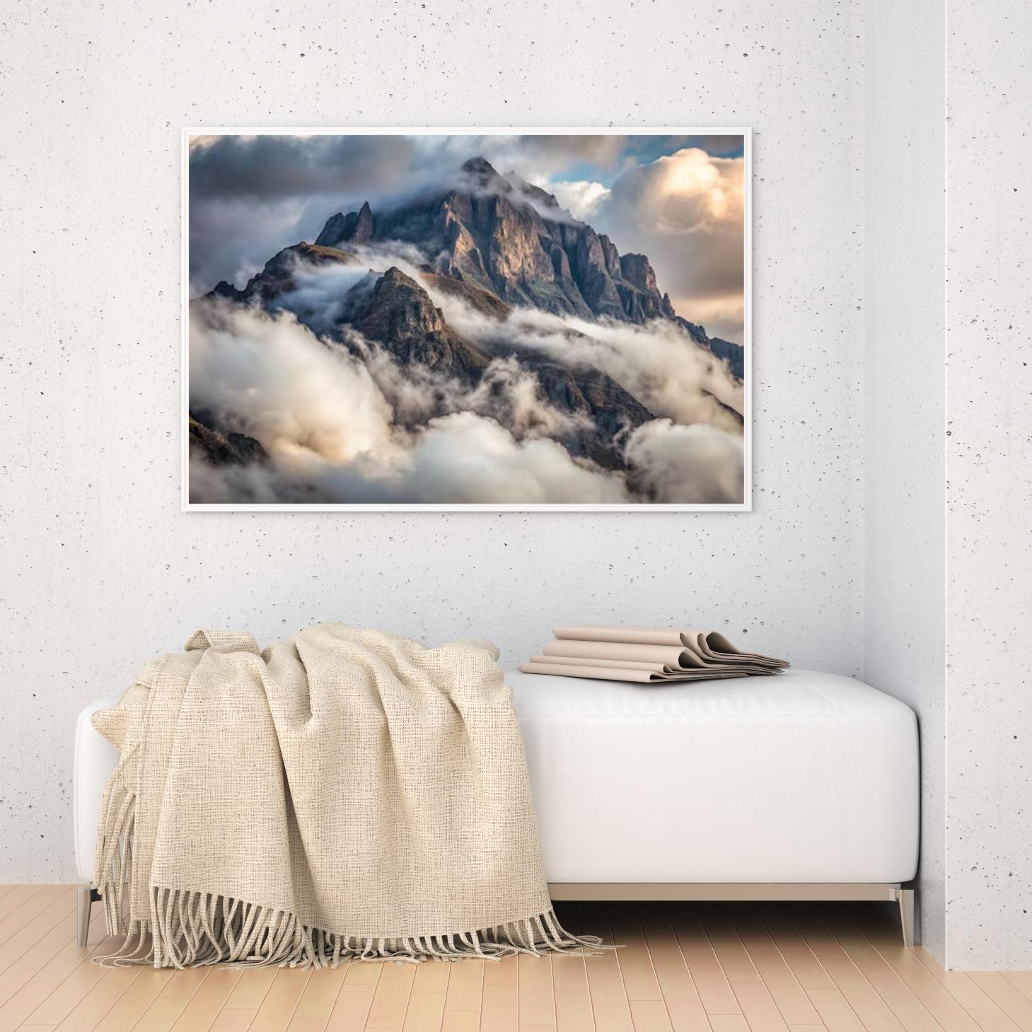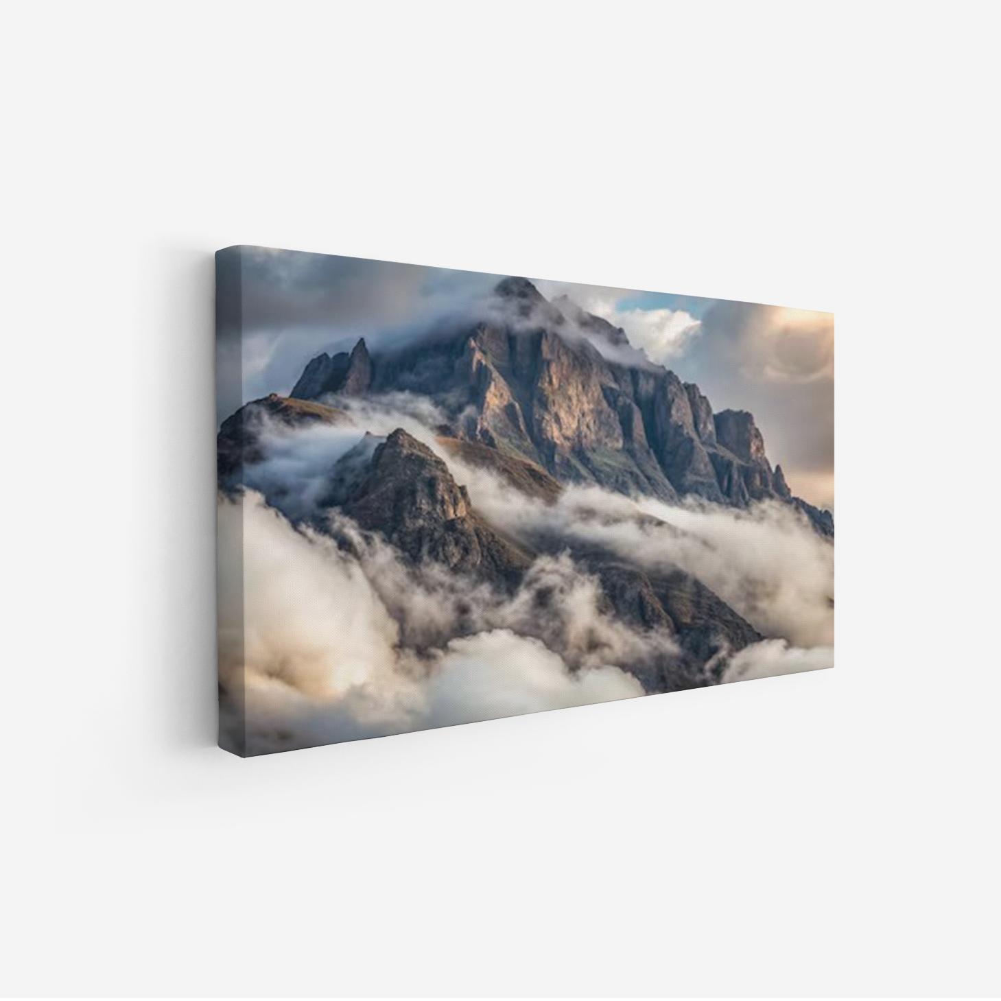 استمتع بجمال الطبيعة الخلاب مع هذه اللوحة الرائعة التي تجسد عظمة الجبال وسط السحب المتلألئة. متاحة بمقاسات متعددة وإطارات أنيقة، تُعد هذه اللوحة خيارًا مثاليًا لإضفاء لمسة فاخرة على أي مساحة، مما يجعلها هدية تعبّر عن الذوق الرفيع في المناسبات الخاصة. اجعل من كل لحظة ذكرى لا تُنسى مع هذا العمل الفني المذهل.
