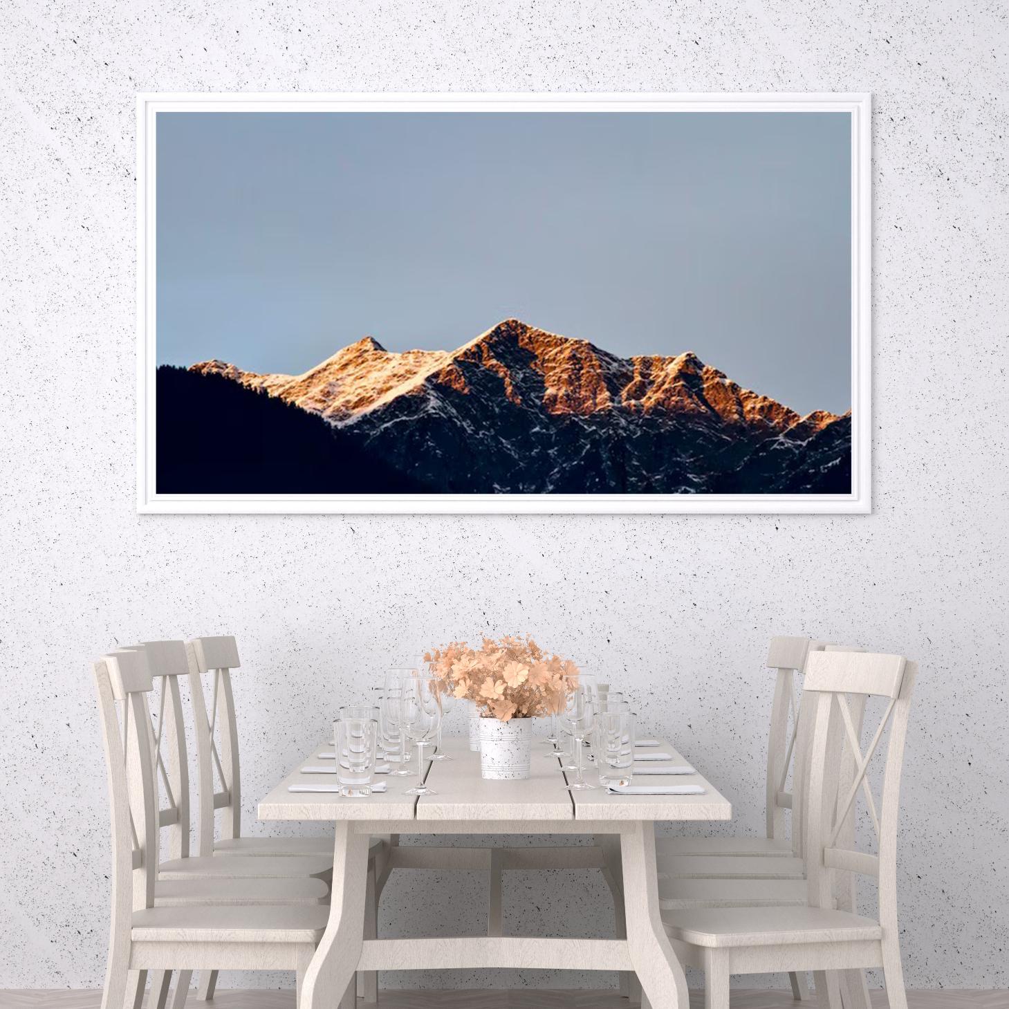 تتجلى في هذه اللوحة جماليات الطبيعة الخلابة، حيث تتناغم قمم الجبال المهيبة مع ألوان السماء الهادئة، مما يخلق إحساسًا بالسكينة والهدوء. تعكس هذه القطعة الفنية روح المغامرة والتحدي، مما يجعلها إضافة مثالية لأي مساحة. تأثيرها البصري يضفي لمسة من الفخامة على المكان، ويعزز من نمط الحياة العصري الذي يسعى الكثيرون لتحقيقه.