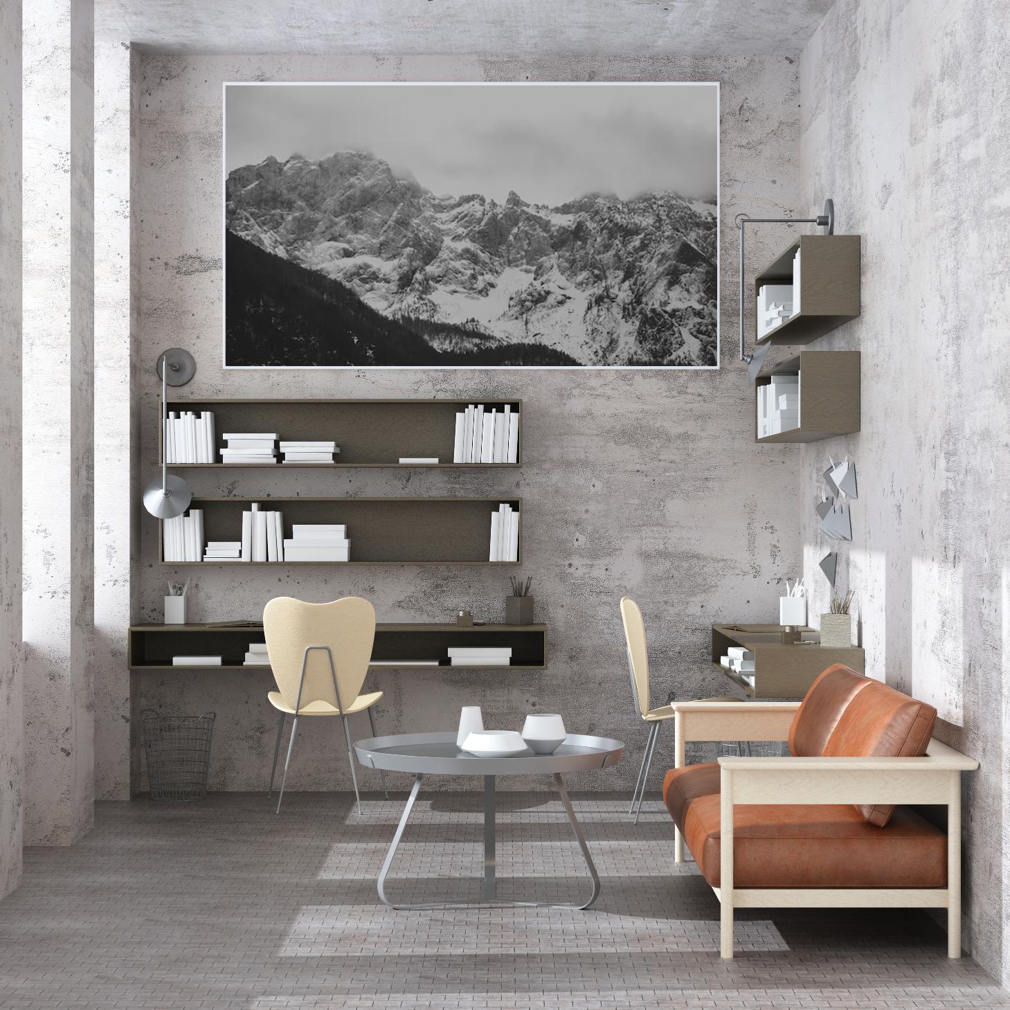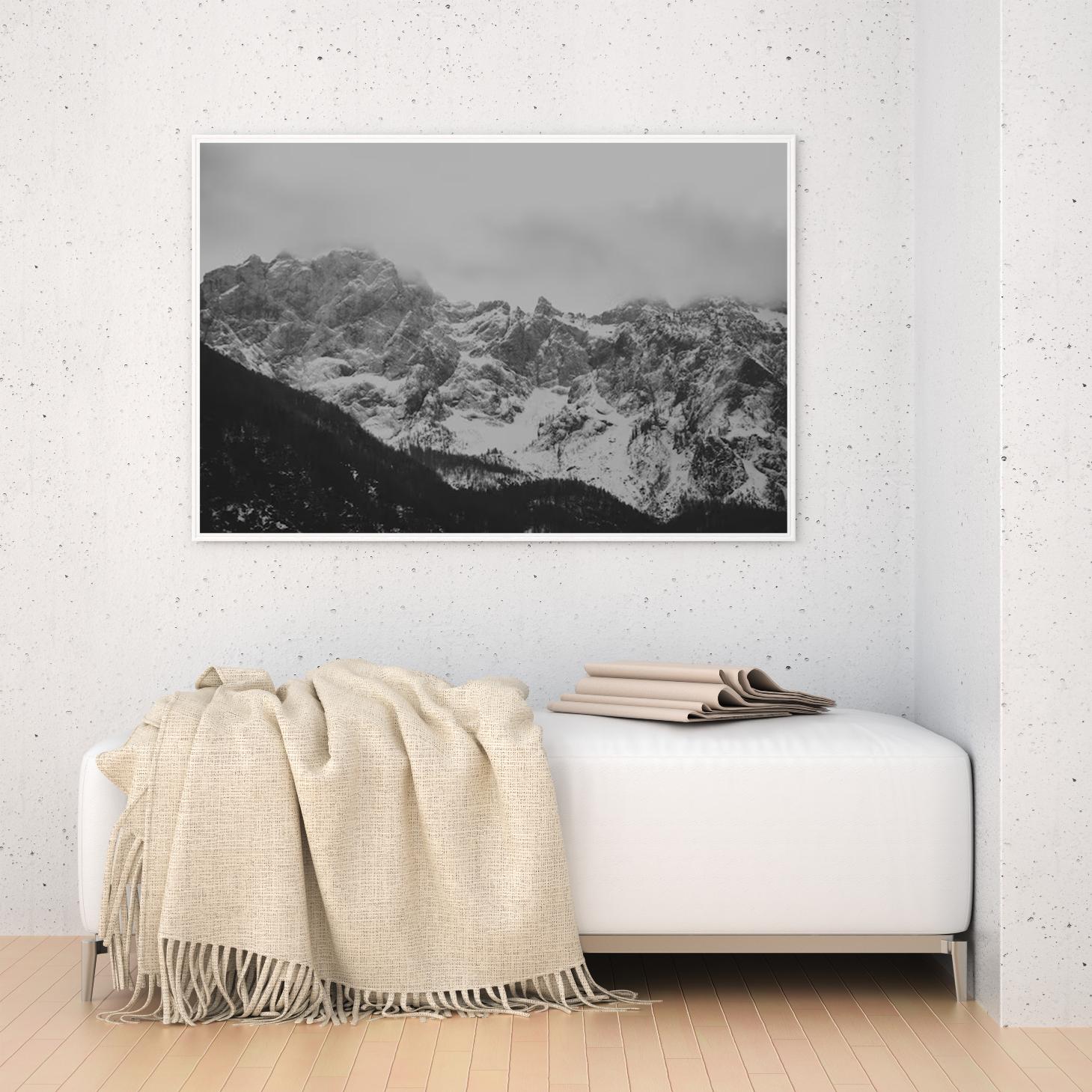 تجسد هذه اللوحة الفنية مشهدًا جبليًا خلابًا، حيث تتعانق القمم الثلجية مع الغيوم الرمادية، مما يخلق إحساسًا بالهدوء والسكينة. تعكس الألوان الأحادية جمال الطبيعة في أبهى صورها، مما يجعلها قطعة فنية تضفي لمسة من الرقي على أي مساحة. إن تأثير هذه اللوحة على أجواء المكان لا يمكن إنكاره، فهي تجلب شعورًا بالاسترخاء وتدعو للتأمل، مما يجعلها خيارًا مثاليًا لمن يسعى لإضفاء لمسة من الجمال الطبيعي على حياته اليومية.