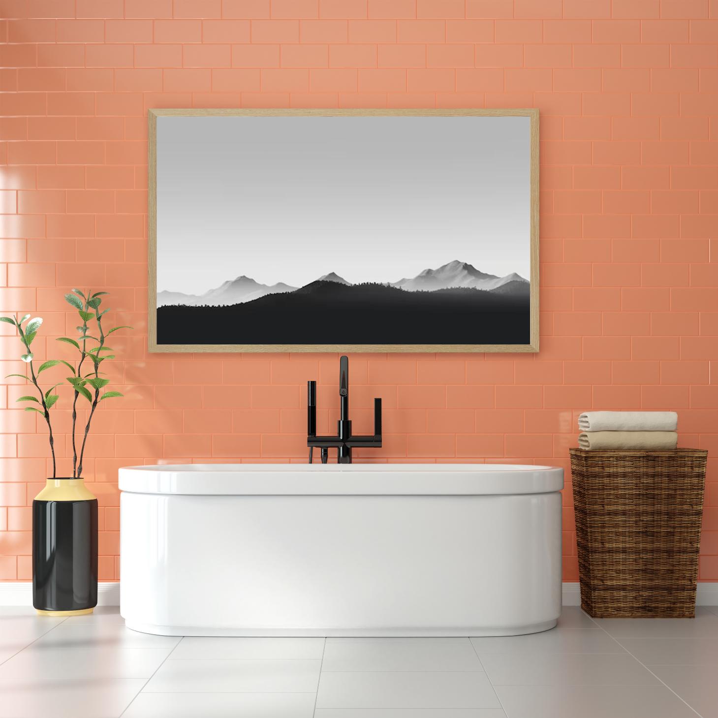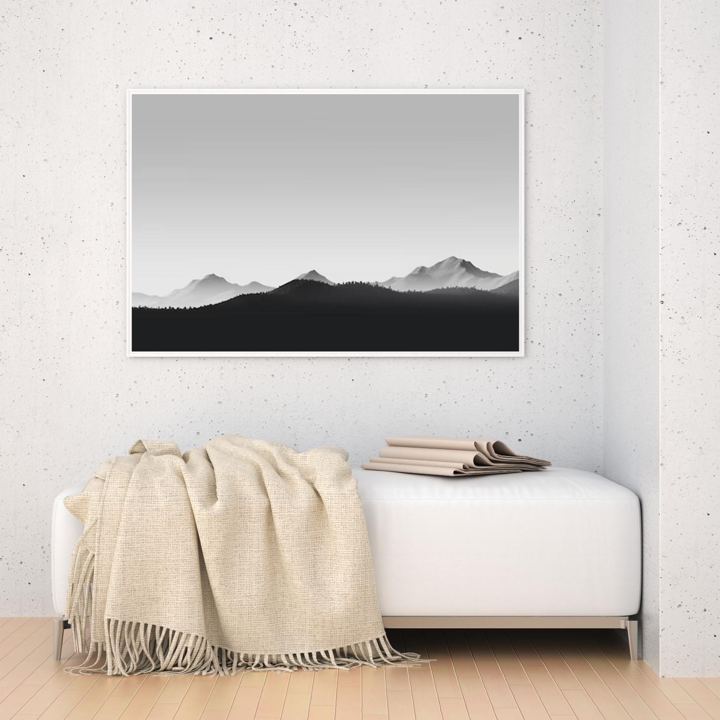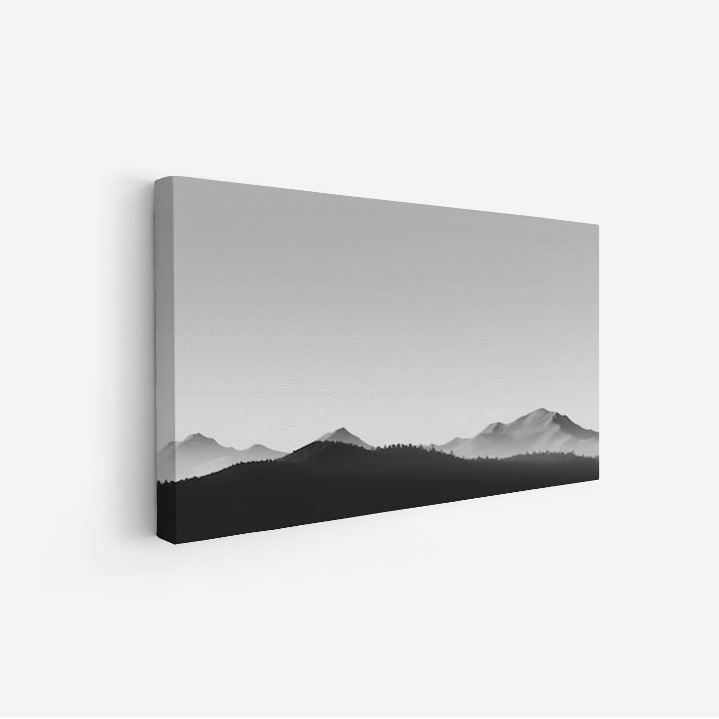 لوحة جبال – مشهد جبلي – تدرجات رمادية – هادئ – لوحات طبيعة – لوحات كانفاس