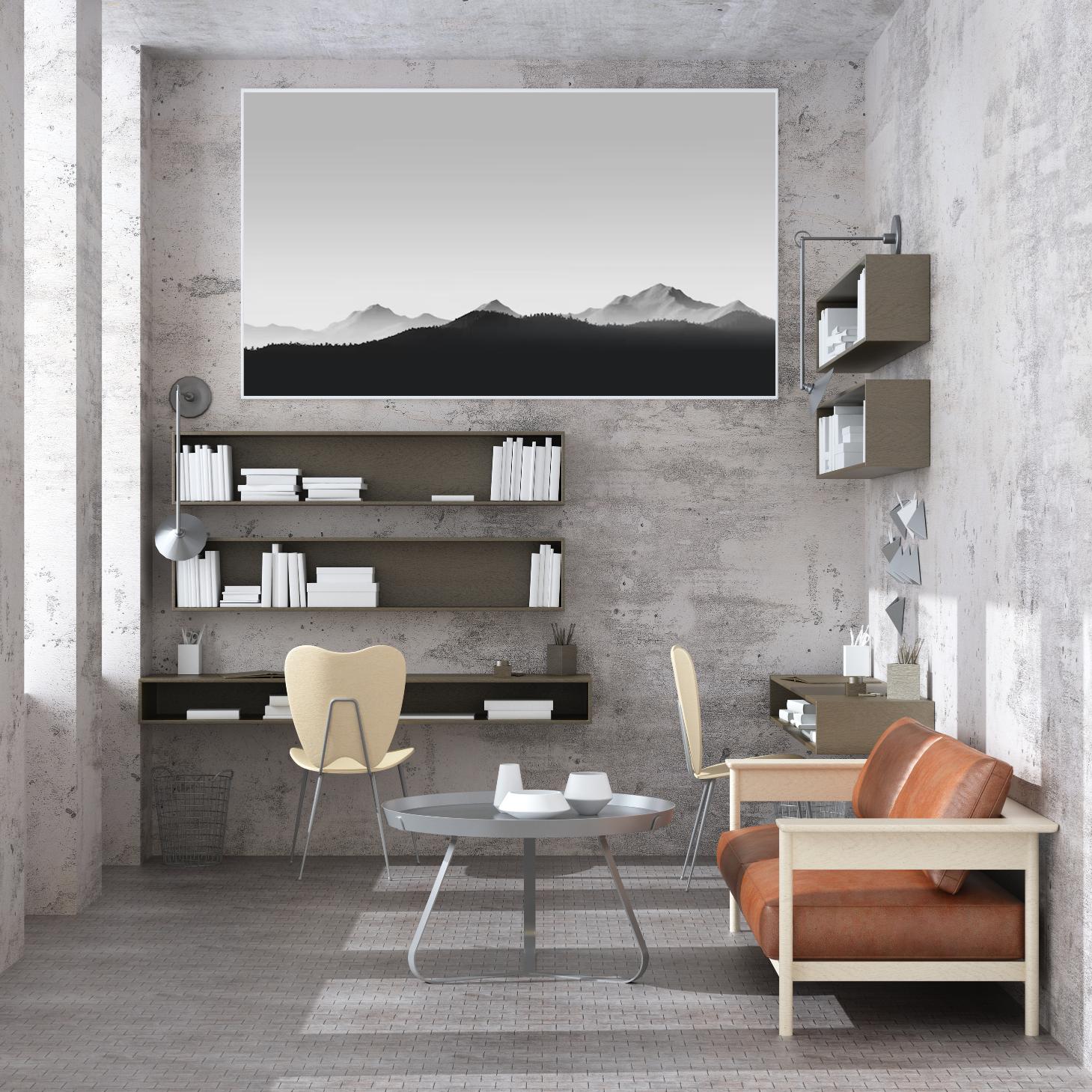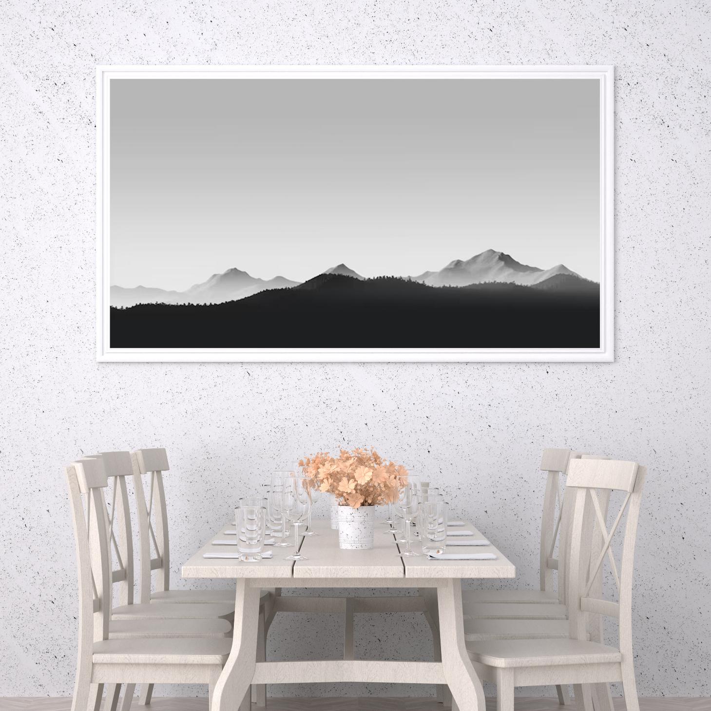 لوحة جبال – مشهد جبلي – تدرجات رمادية – هادئ – لوحات طبيعة – لوحات كانفاس