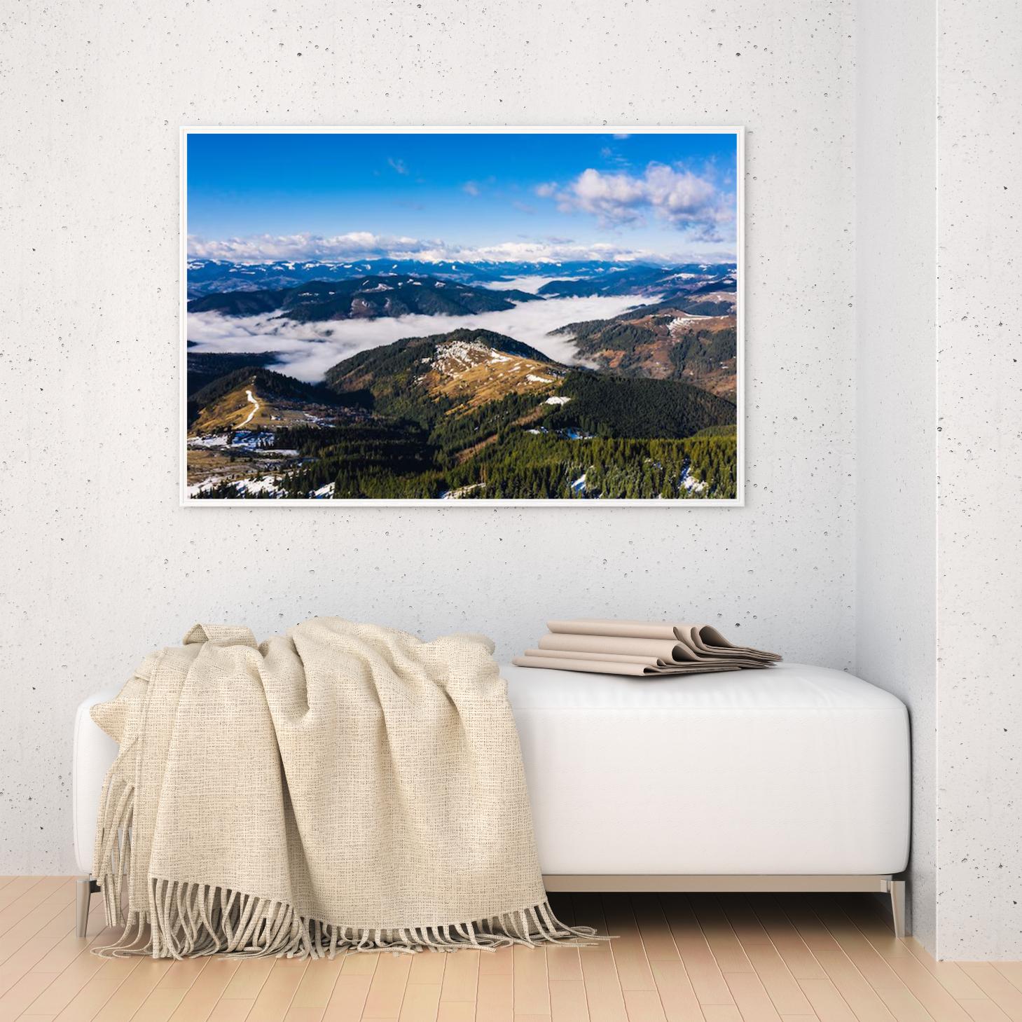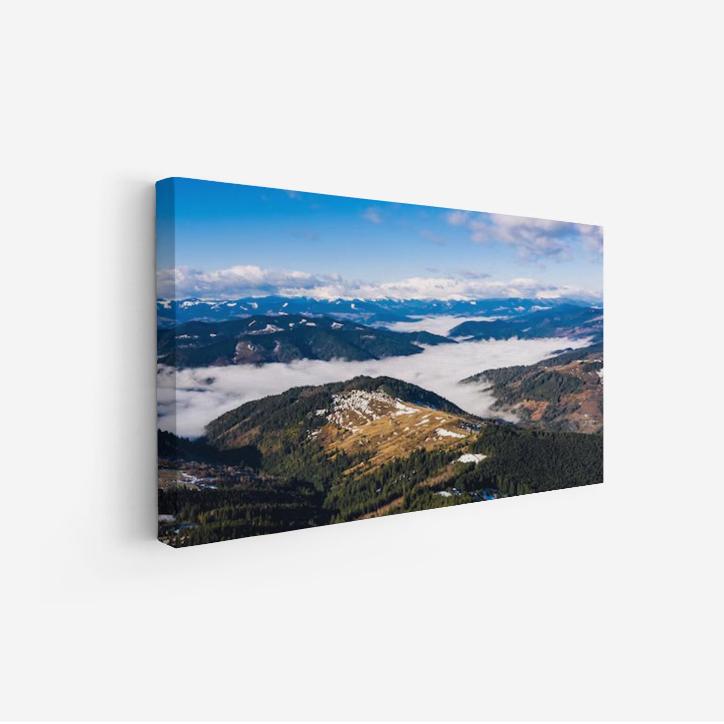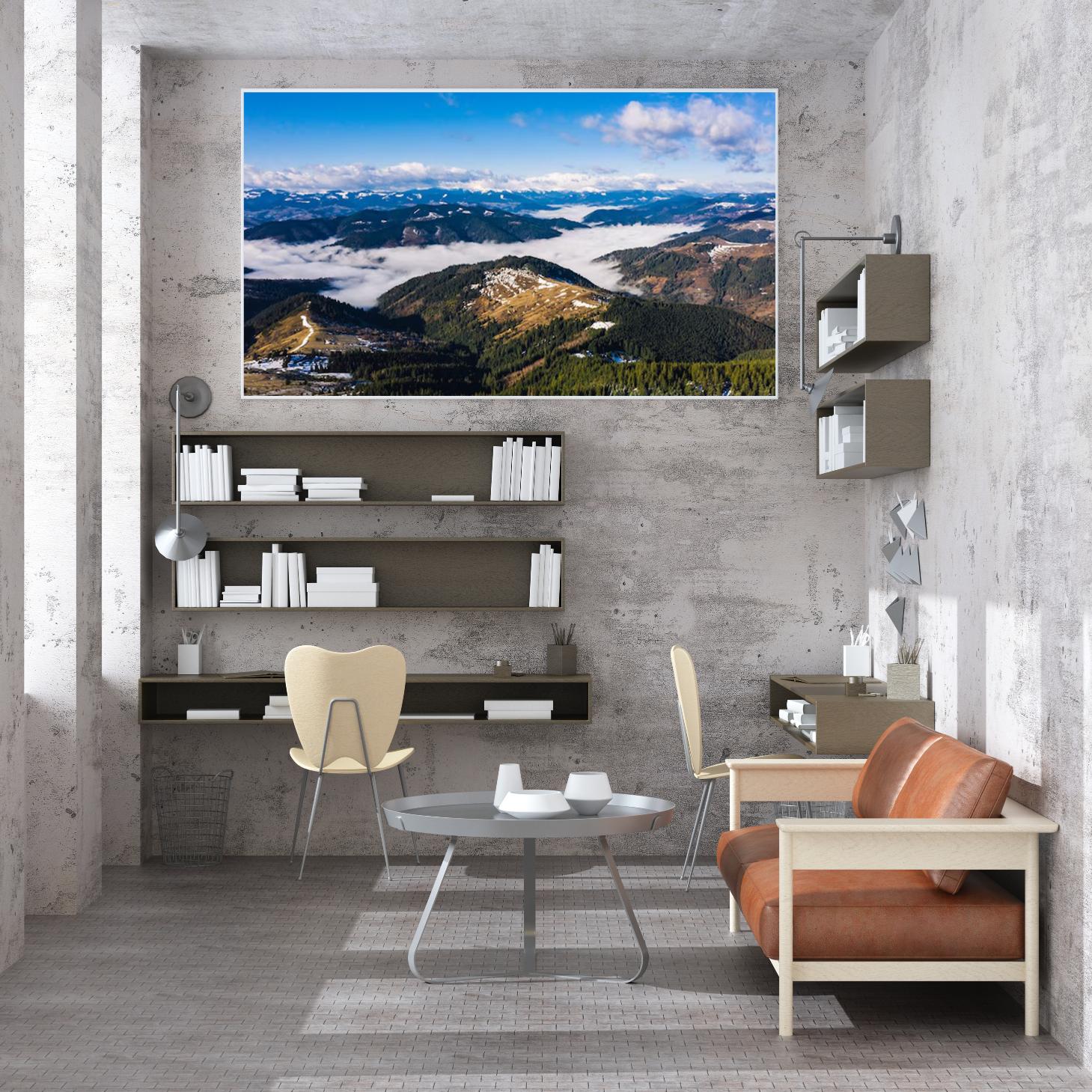 استمتع بجمال الطبيعة الخلابة مع هذه اللوحة الرائعة التي تلتقط مشهدًا ساحرًا للجبال المغطاة بالغيوم، حيث تتناغم الألوان الزرقاء والبيضاء لتخلق إحساسًا بالهدوء والسكينة. تتوفر اللوحة بمقاسات متعددة وإطارات أنيقة، مما يجعلها خيارًا مثاليًا للتزيين أو كهدية تعبّر عن الذوق الرفيع في المناسبات الخاصة. اجعل من كل زاوية في منزلك لوحة فنية تعكس جمال الطبيعة وتضفي لمسة من الفخامة.