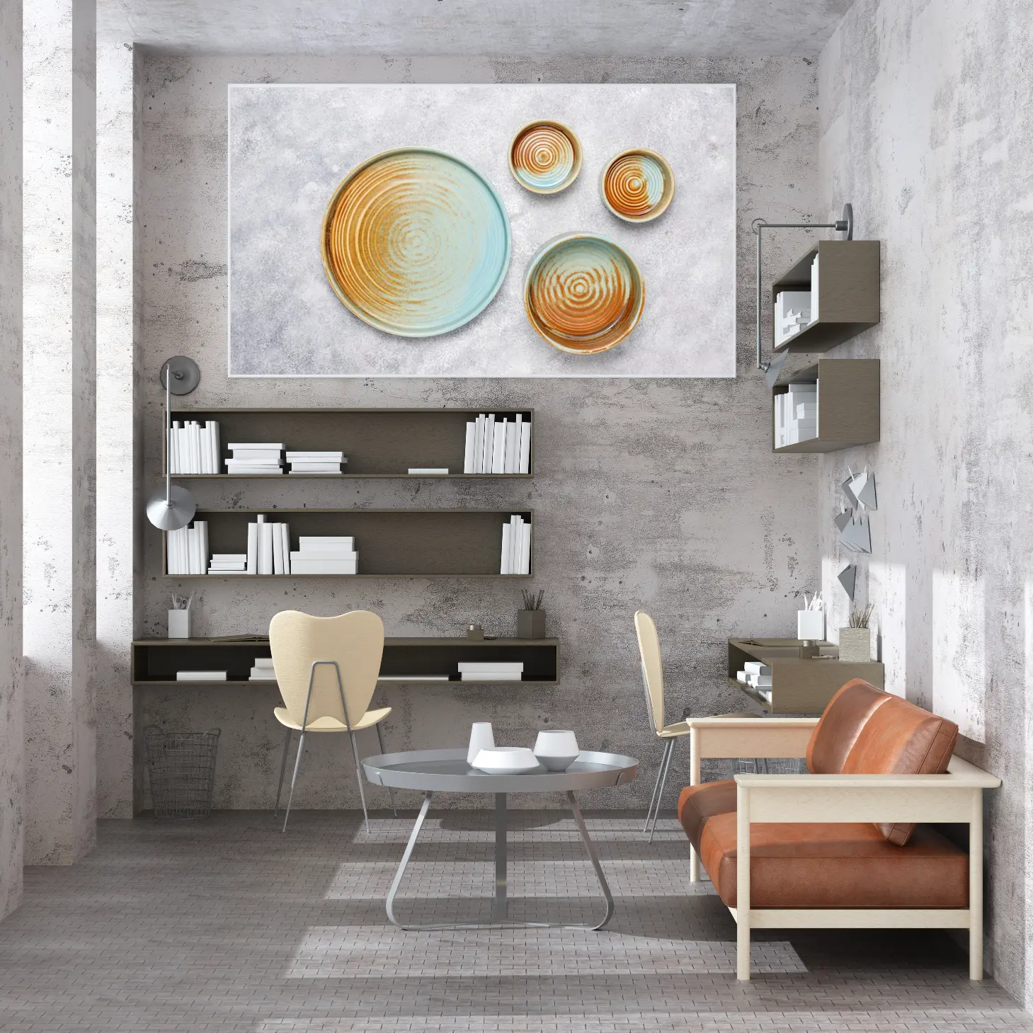 لوحة جدارية – أطباق ملونة – خلفية رمادية – عصرية – لوحات فن عصري – لوحات كانفاس