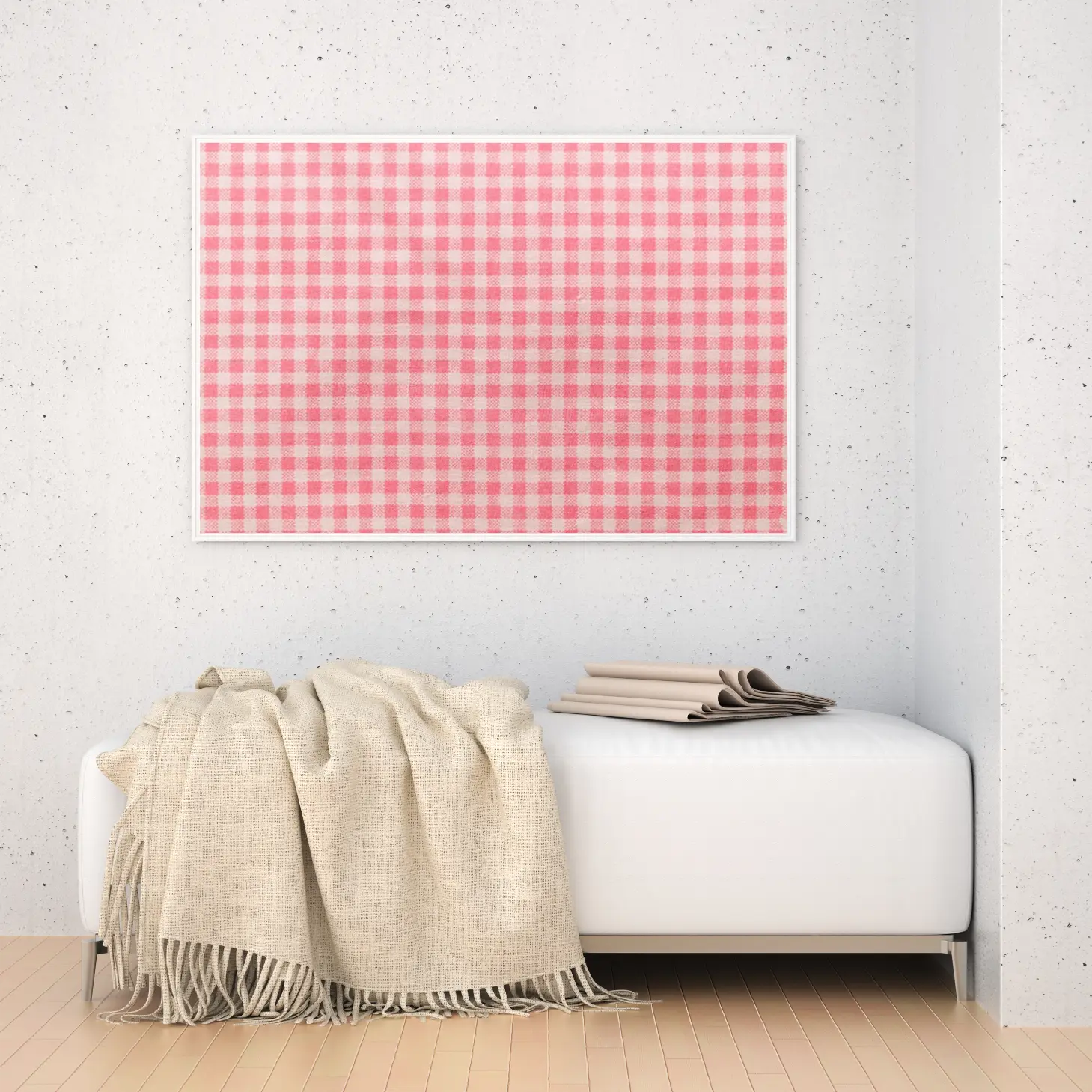 تضفي هذه اللوحة ذات النقوش المربعة الوردية لمسة من الأناقة والدفء على أي مساحة، مما يجعلها خيارًا مثاليًا لإضفاء جو من الحيوية والراحة. الألوان الوردية المتناغمة تخلق إحساسًا بالسكينة، مما يجعلها مناسبة لمختلف الأجواء، سواء كانت في غرفة المعيشة أو المكتب أو حتى في غرفة النوم. إن هذه القطعة الفنية تعكس نمط حياة عصري، حيث تلتقي الجماليات مع الوظائف العملية.