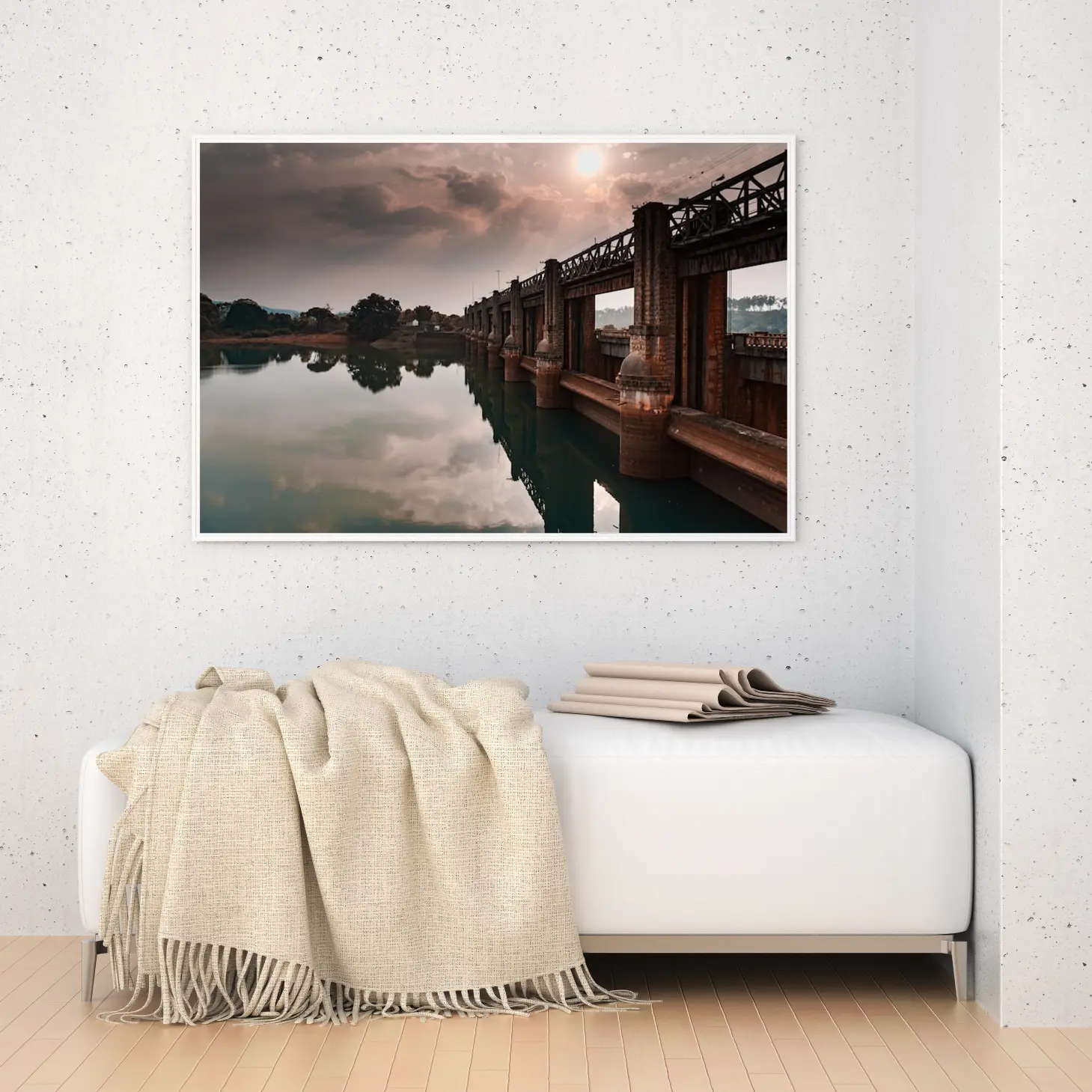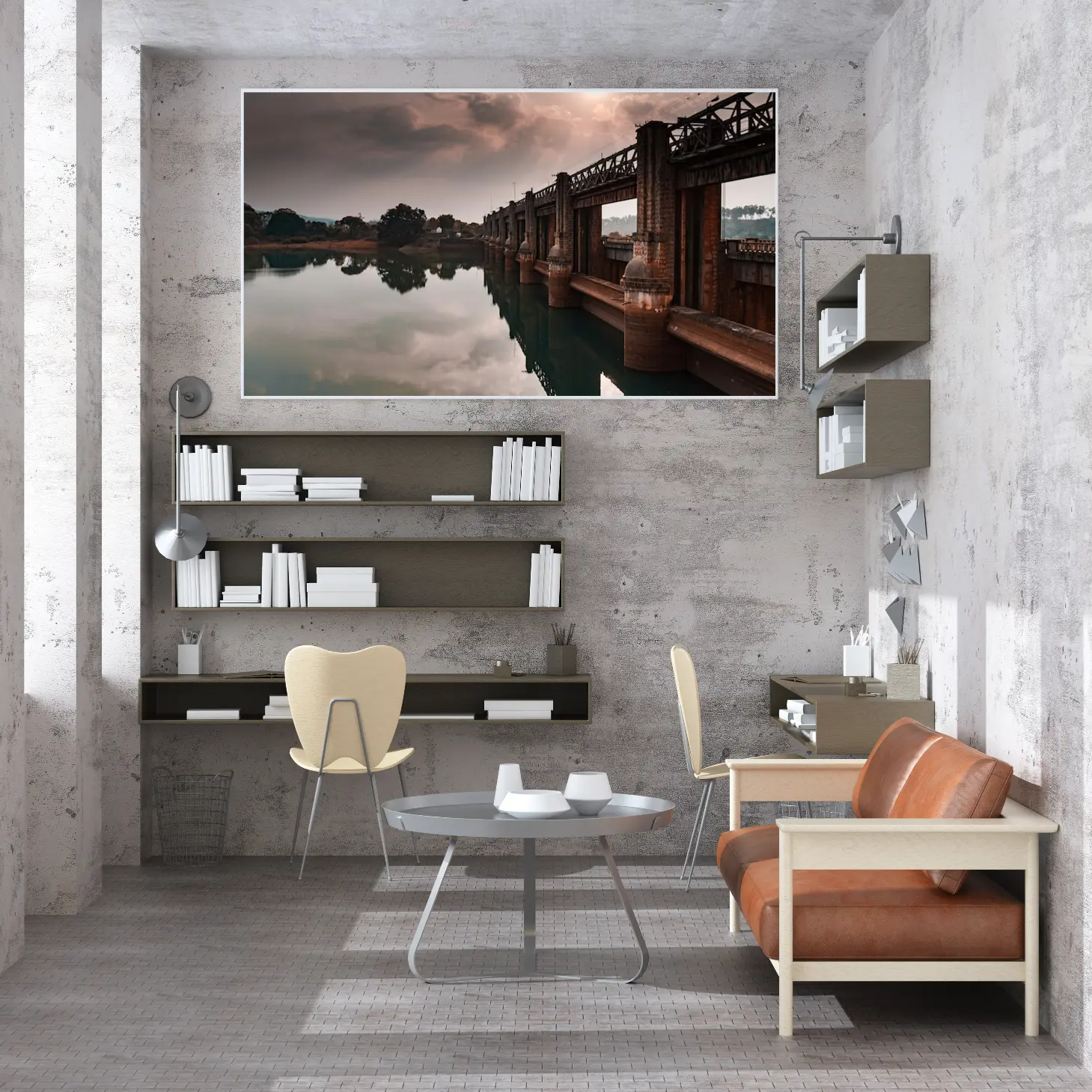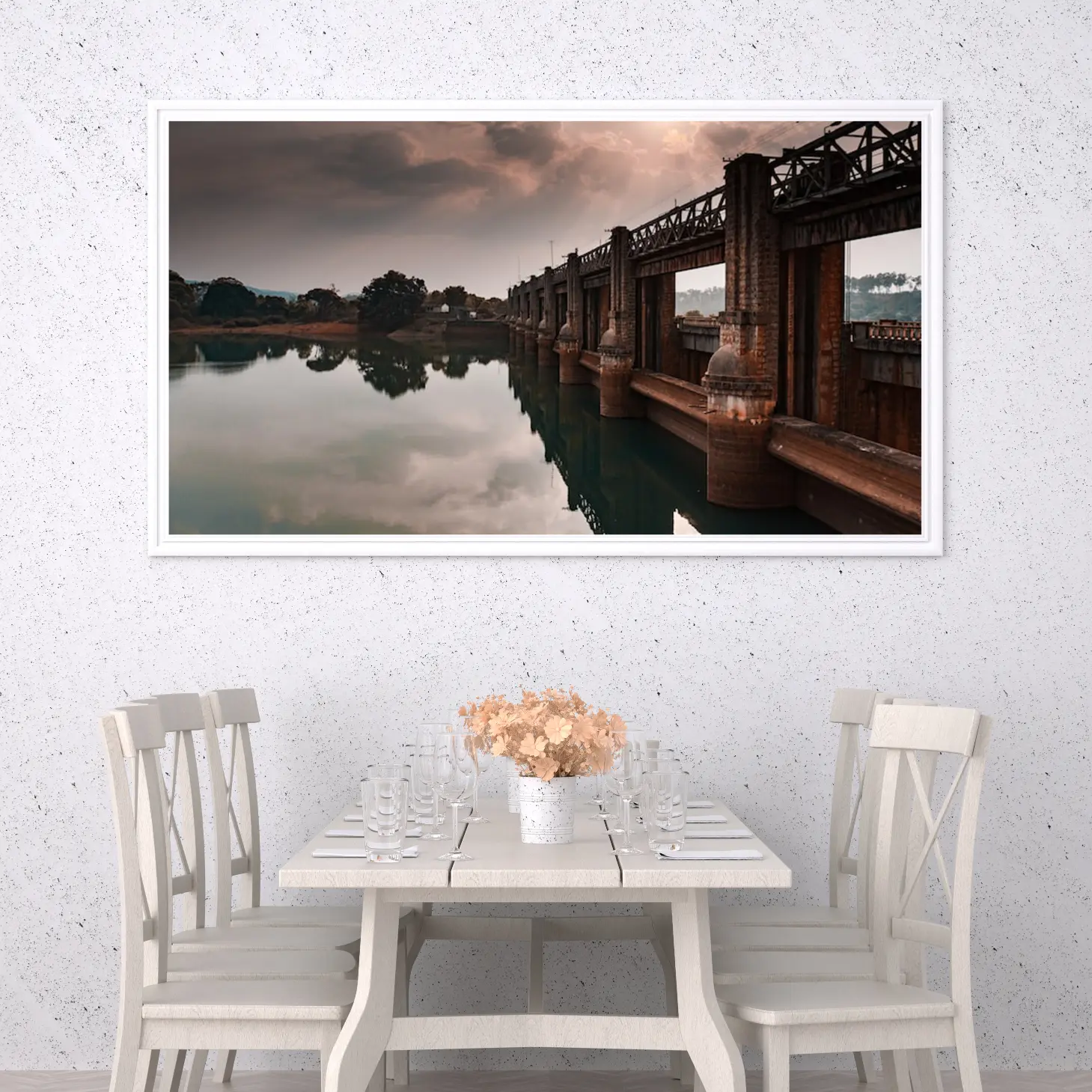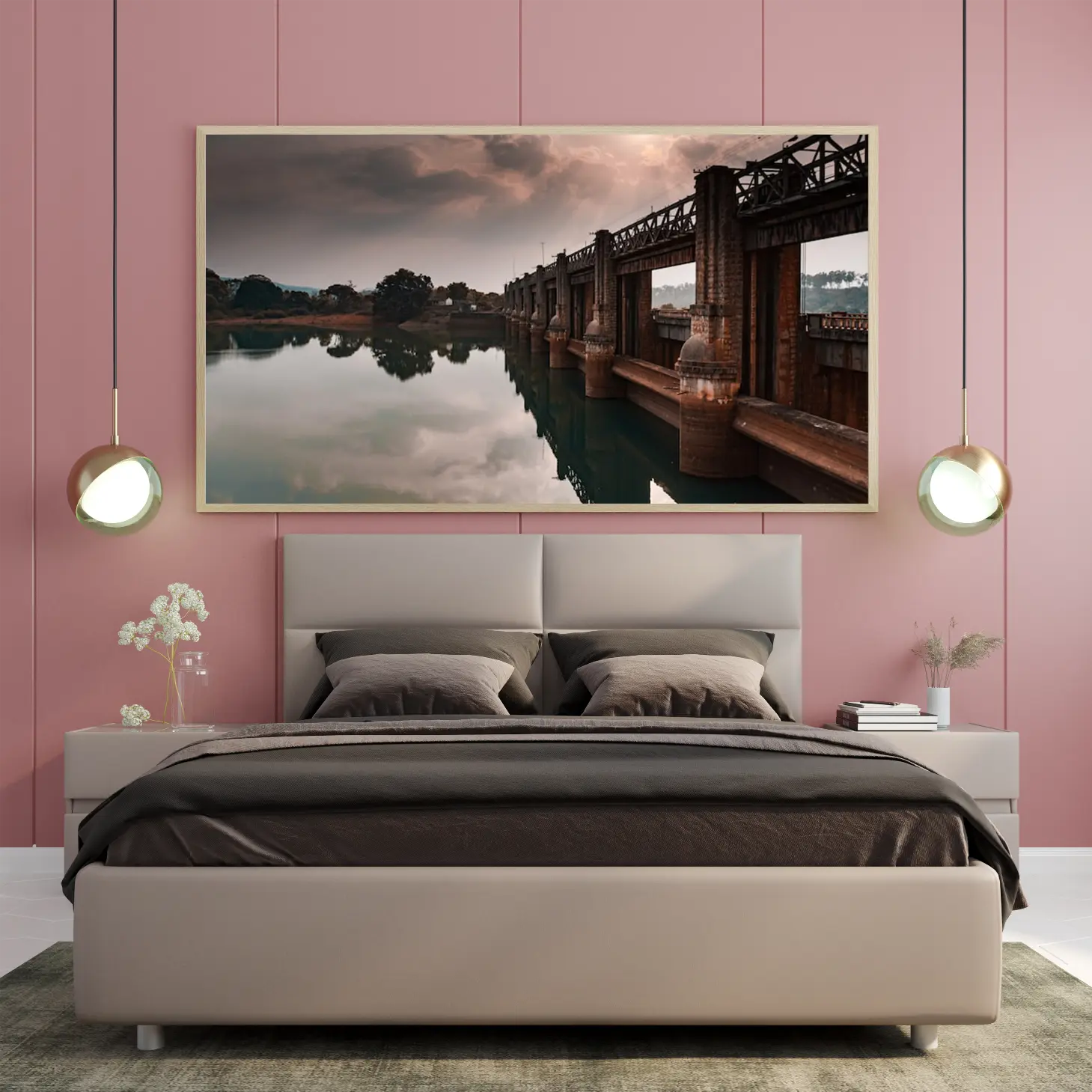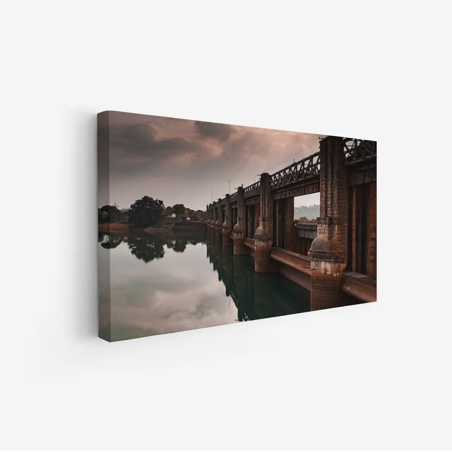 لوحة جسر – مشهد مائي – ألوان داكنة – هادئ – لوحات طبيعة – لوحات كانفاس