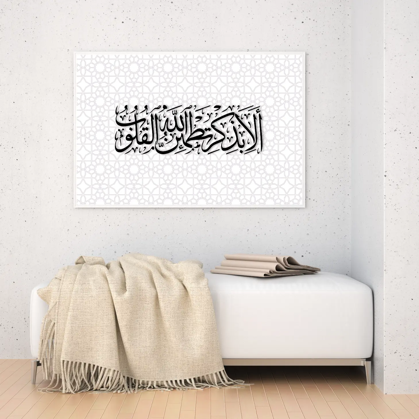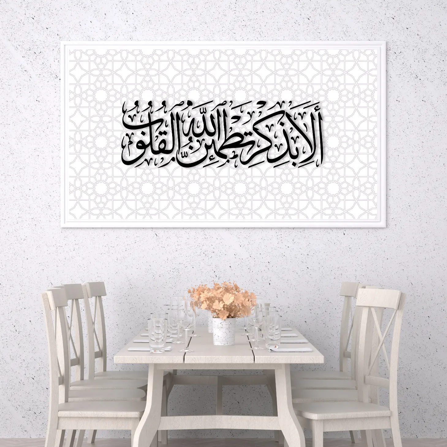 لوحة خط عربي – عبارة دينية – خلفية بيضاء – هادئ – لوحات فنية مودرن – لوحات كانفاس