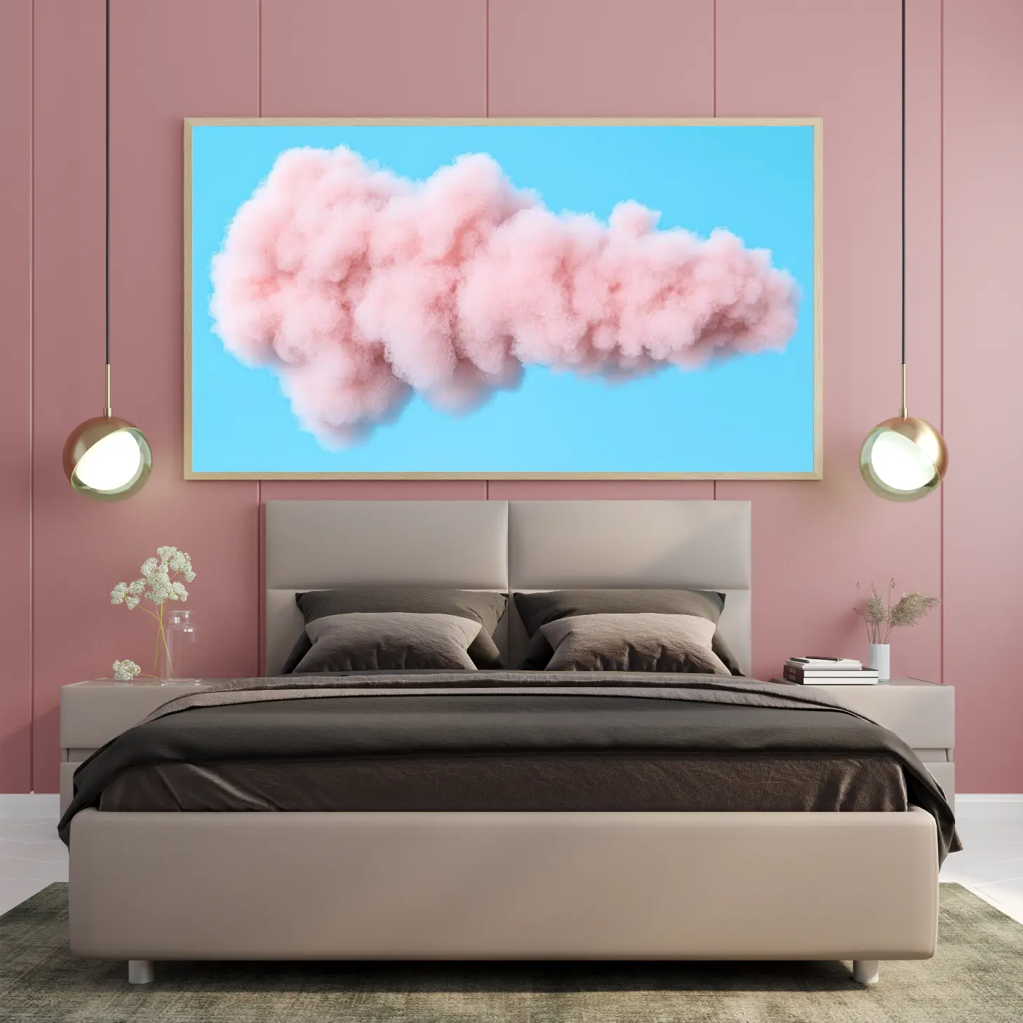 لوحة سحاب وردي يتداخل مع سماء زرقاء صافية، تعكس أجواء من السعادة والهدوء، لوحات فن عصري، لوحات كانفاس.