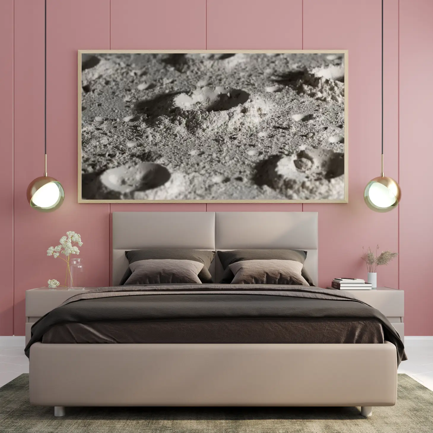 استمتع بجمال التفاصيل الدقيقة في هذه اللوحة الفنية التي تعكس سطح القمر، حيث تتناغم الألوان الرمادية مع الفضاء الواسع. إنها قطعة فنية مثالية تضفي لمسة من الغموض والعمق على أي جدار، مما يجعلها خيارًا رائعًا لعشاق الفضاء والفن.