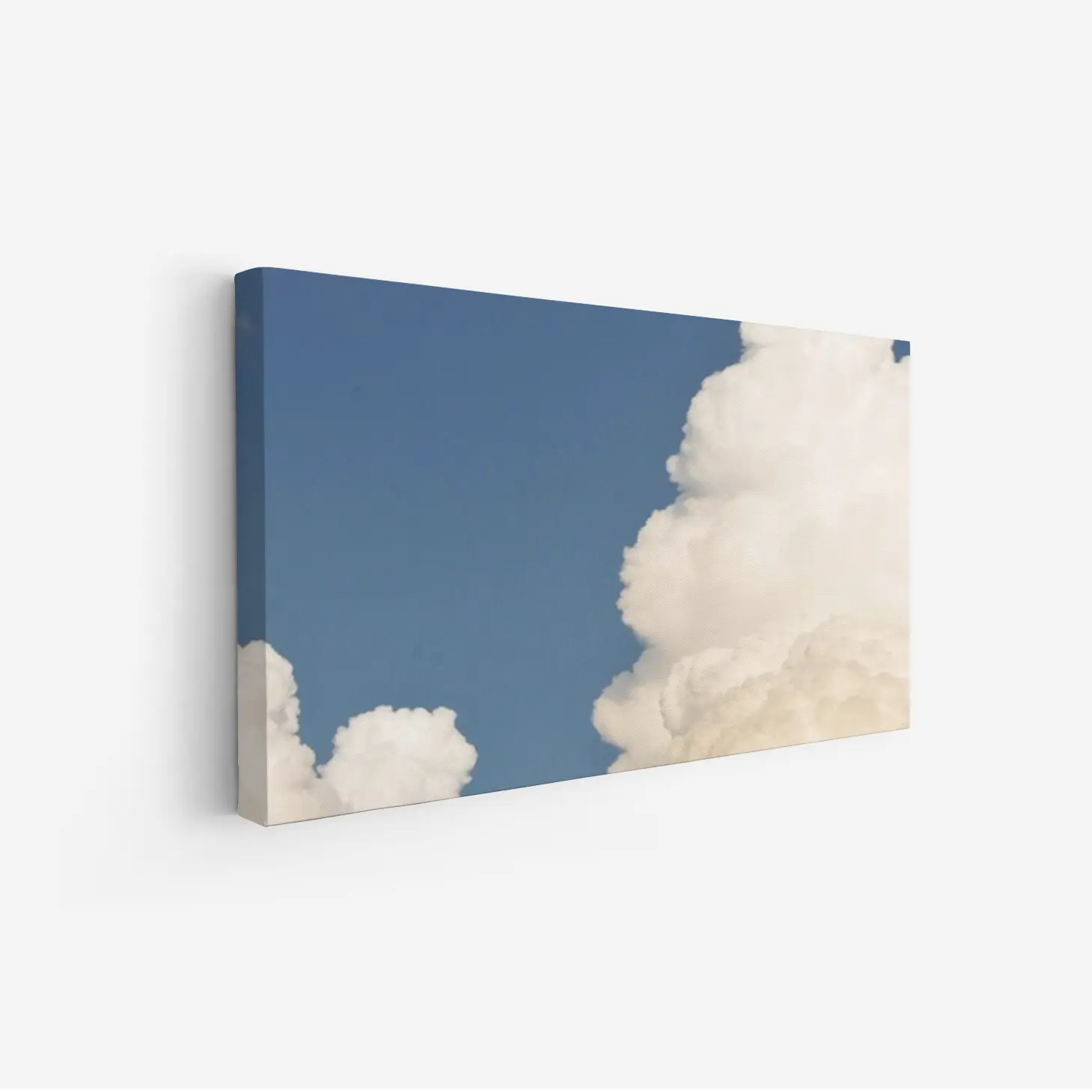 لوحة سماء زرقاء مع سحب بيضاء كثيفة تعكس شعور الهدوء والسكينة، لوحات طبيعة، لوحات كانفاس أنيقة