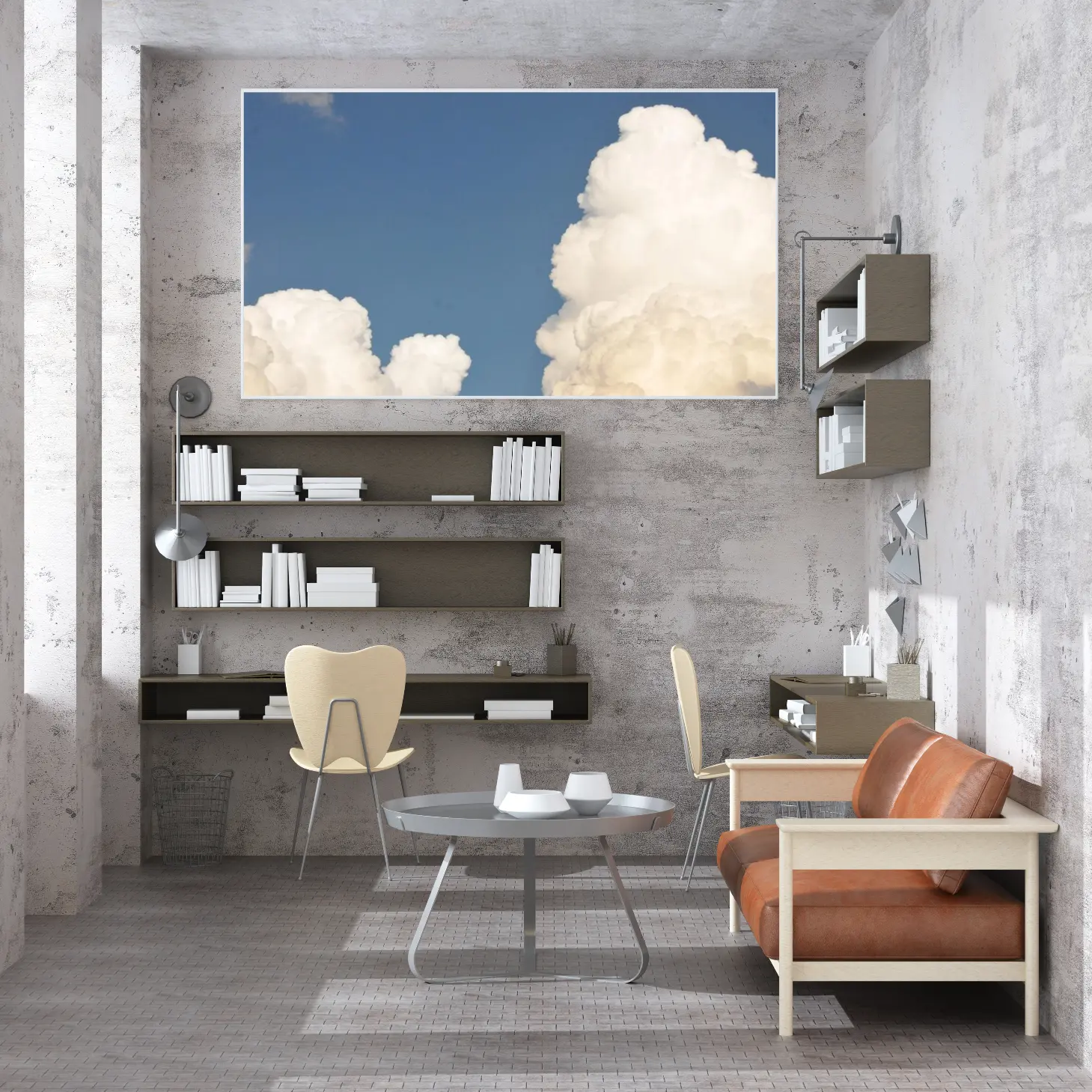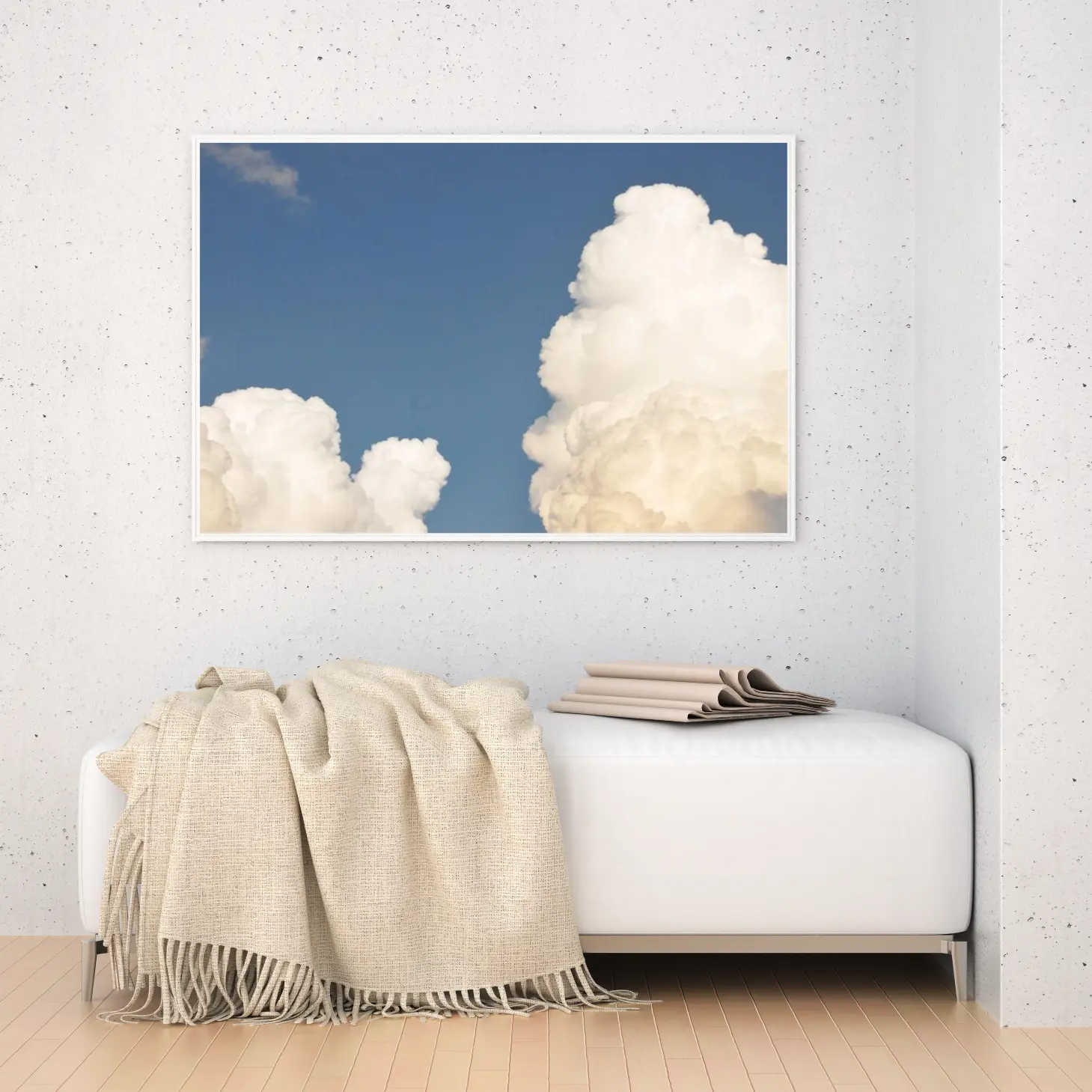 تجسد هذه اللوحة جمال السماء الصافية، حيث تتناغم السحب البيضاء مع خلفية زرقاء عميقة، مما يخلق إحساسًا بالهدوء والسكينة. تعكس الألوان المتناغمة شعورًا بالانتعاش، مما يجعلها خيارًا مثاليًا لإضفاء لمسة من الأناقة على أي مساحة. يمكن أن تصبح هذه القطعة الفنية محور اهتمام في الغرفة، حيث تضفي أجواءً من الصفاء والراحة، مما يعزز نمط الحياة العصري.