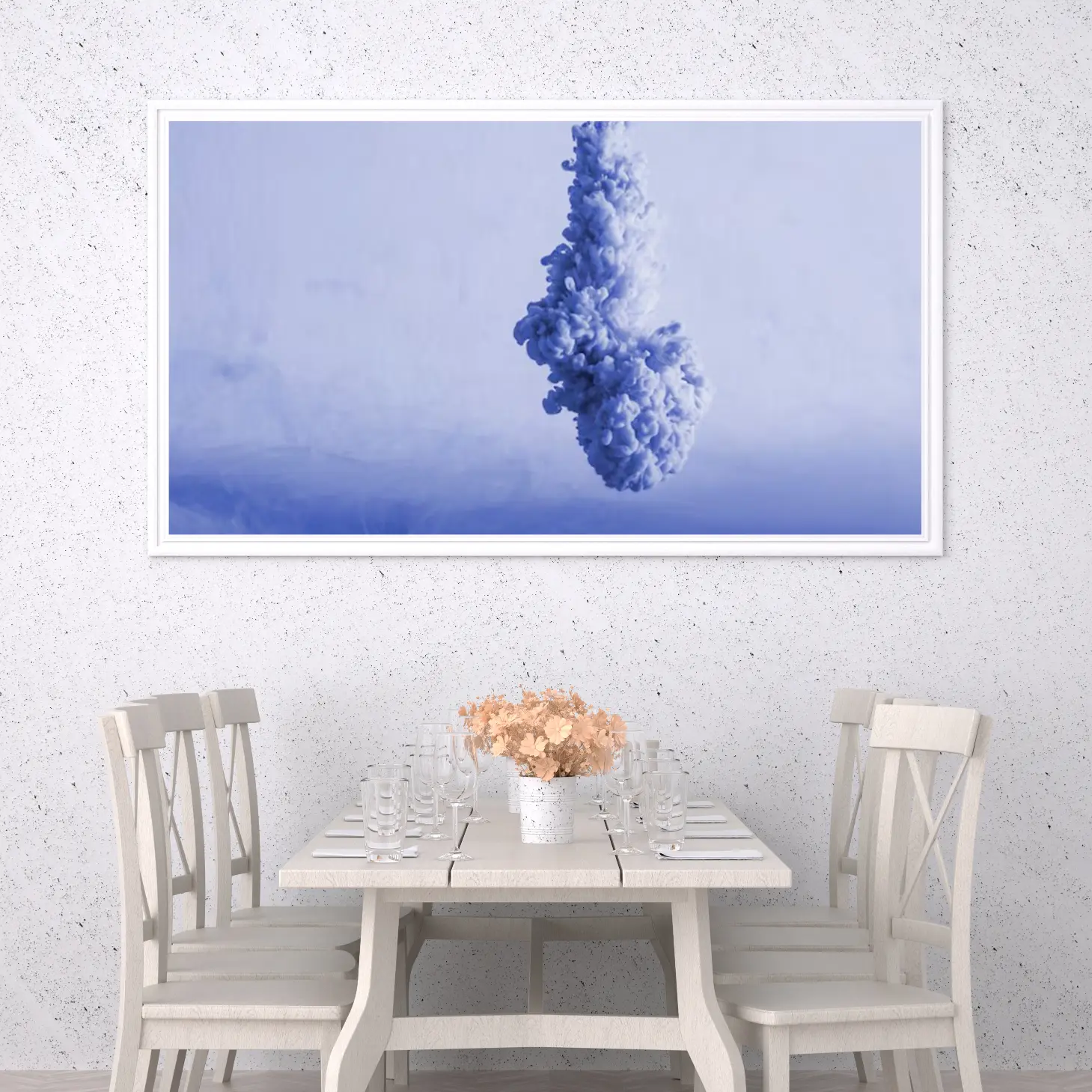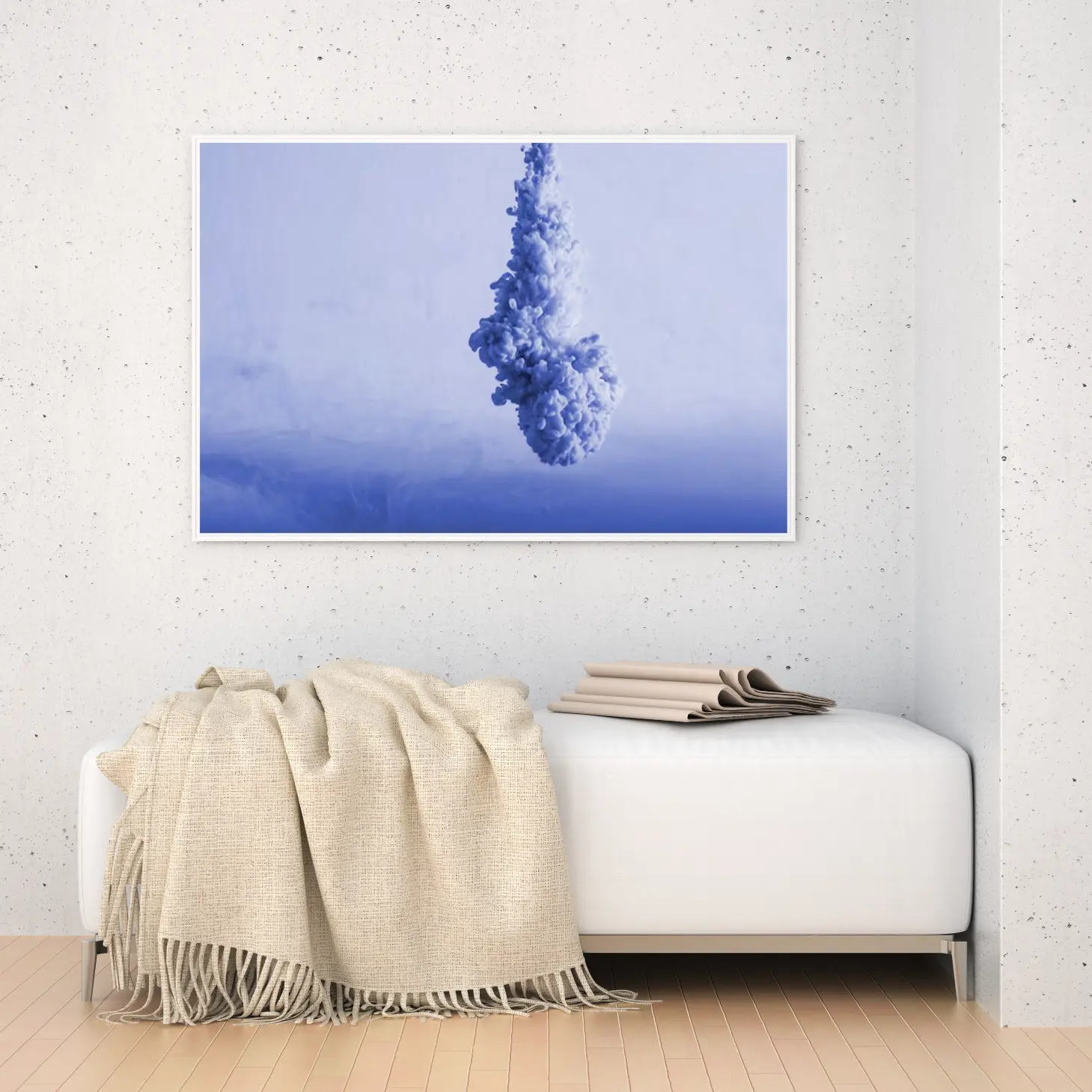 لوحة سماء وغيوم بتدرجات زرقاء وبيضاء، تعكس إحساسًا بالهدوء والغموض، لوحات فن عصري، لوحات كانفاس.