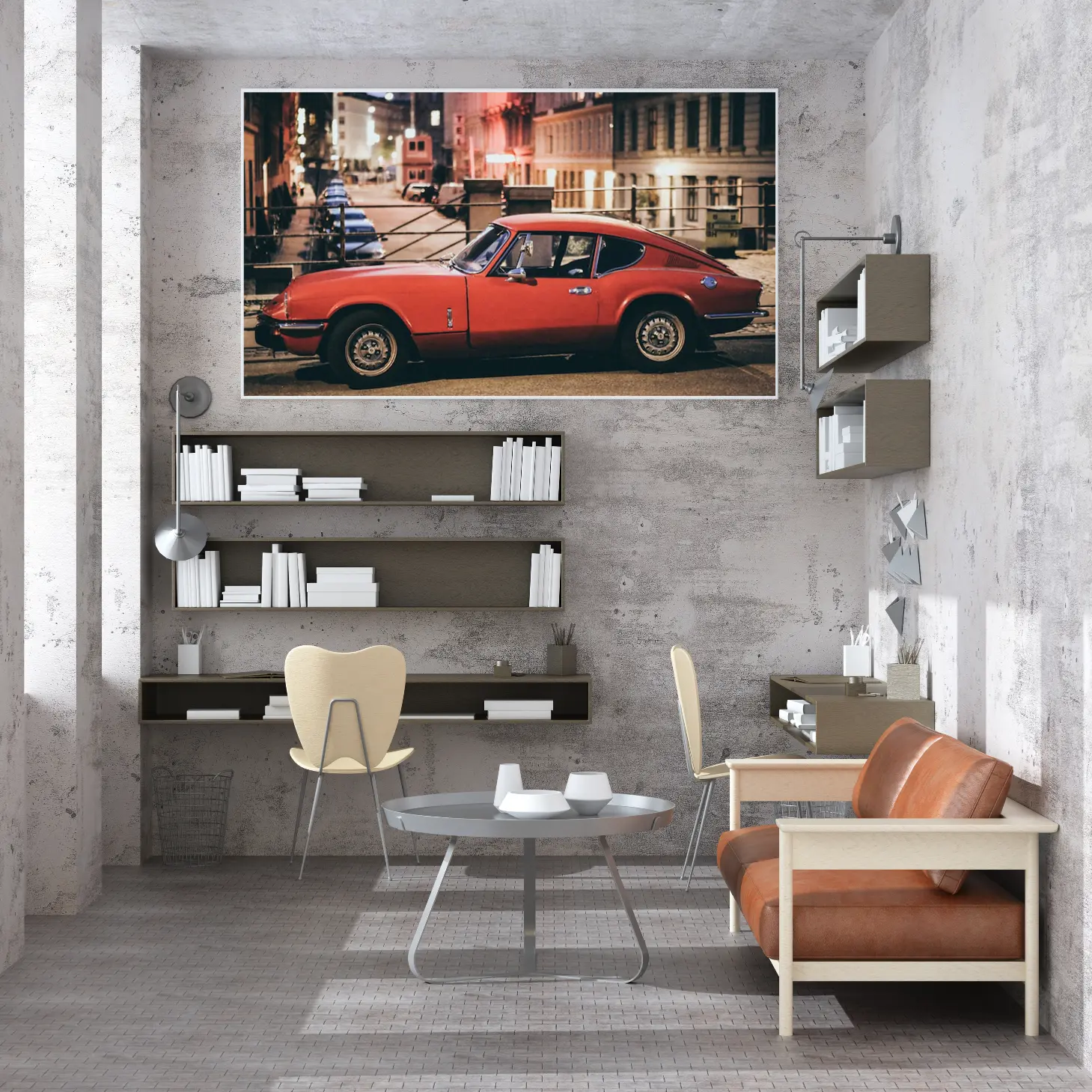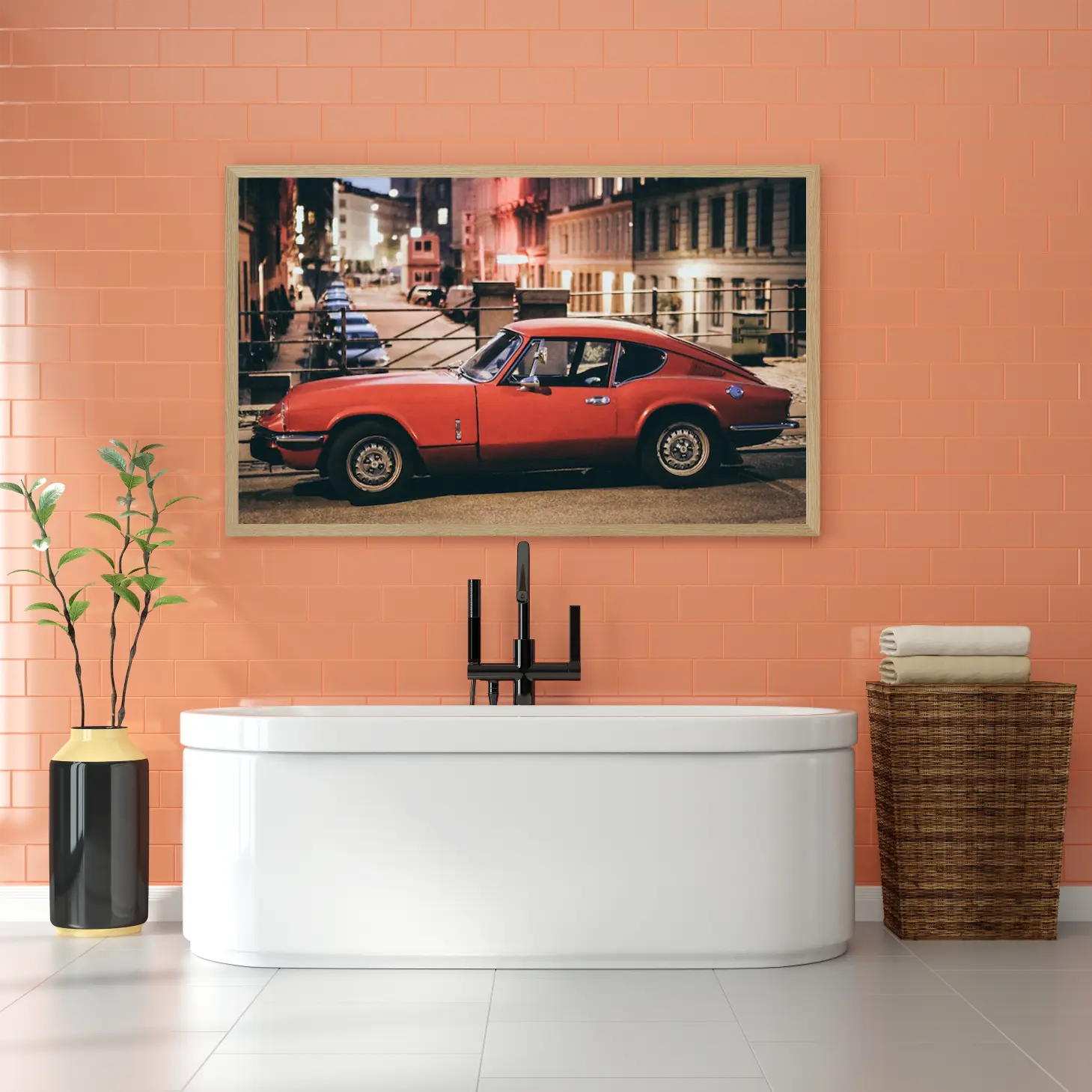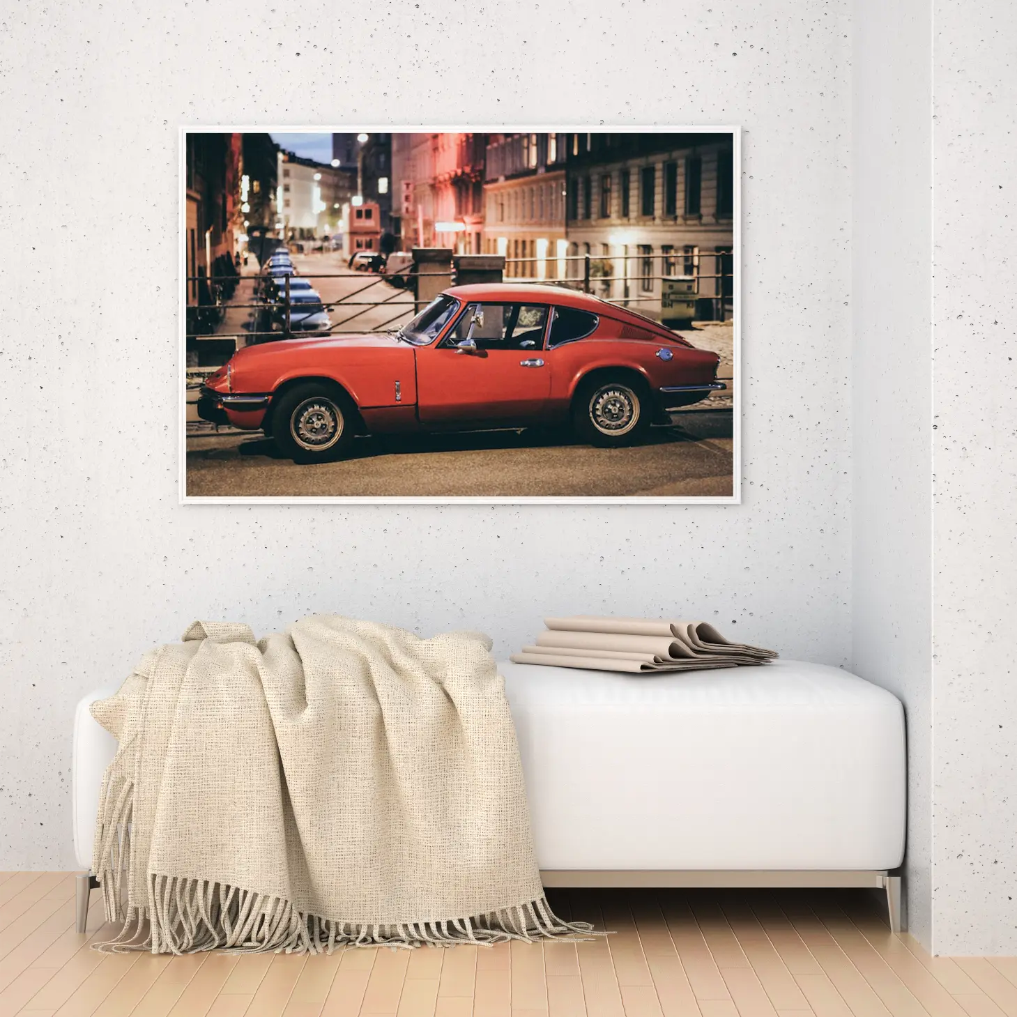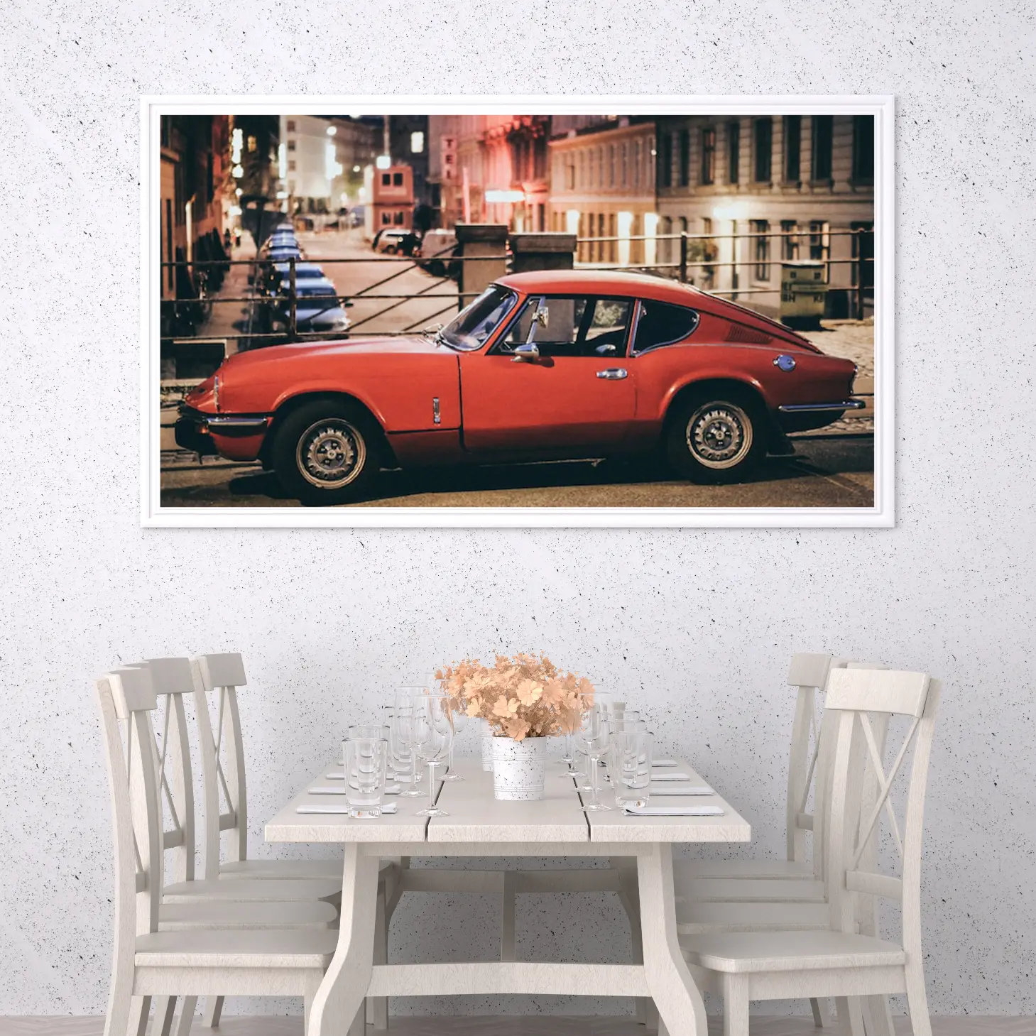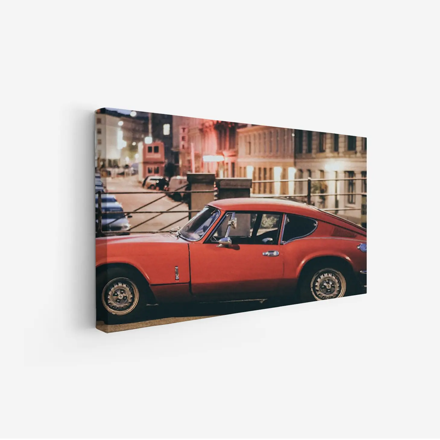 استمتع بجماليات هذه اللوحة الفاخرة التي تلتقط لحظة ساحرة لسيارة حمراء في أجواء حضرية مفعمة بالحياة. تتوفر بأحجام متعددة وإطارات أنيقة، مما يجعلها خيارًا مثاليًا لتزيين منزلك أو مكتبك، أو كهدية تعبّر عن الذوق الرفيع في المناسبات الخاصة. اجعل كل زاوية تنبض بالأناقة والجاذبية مع هذه التحفة الفنية.