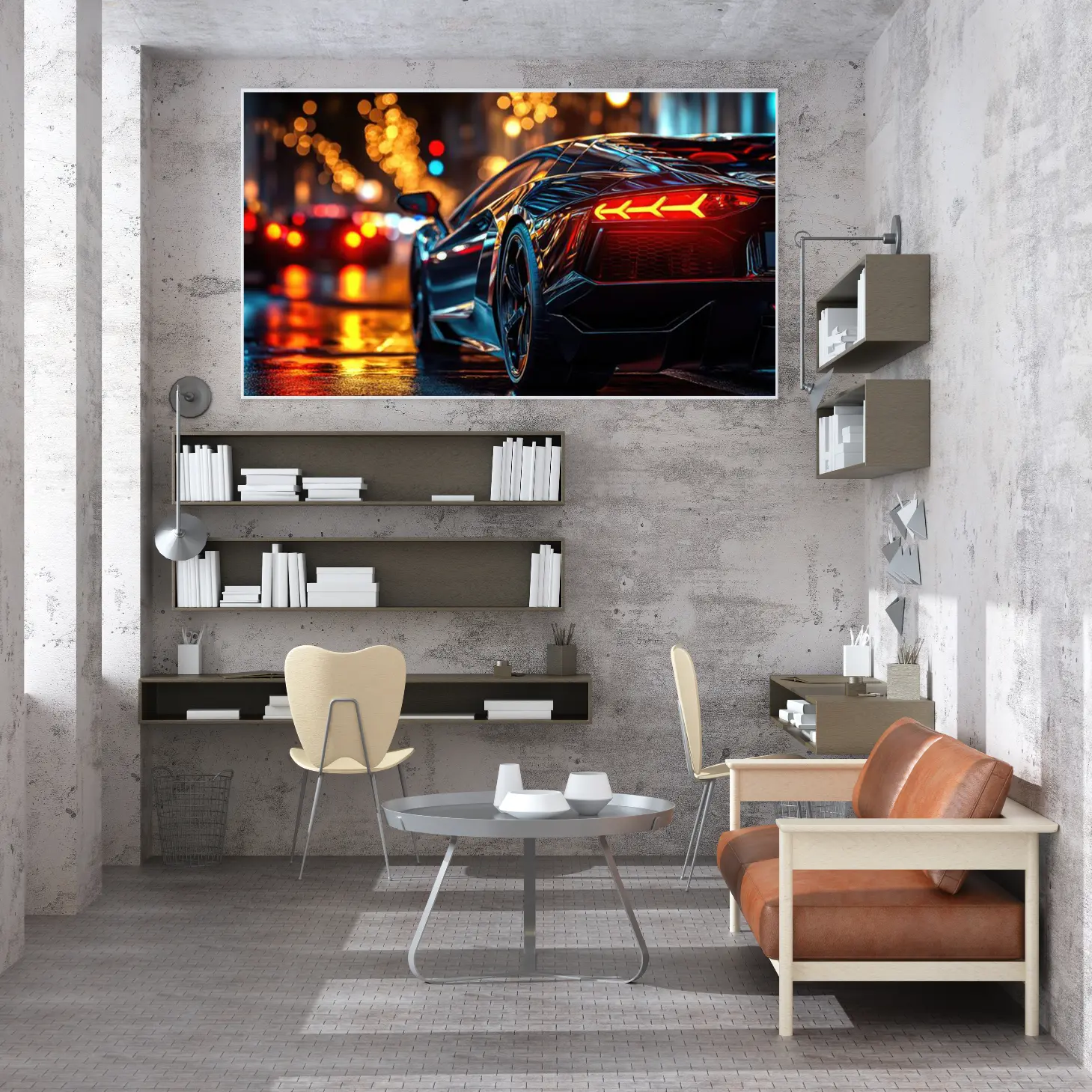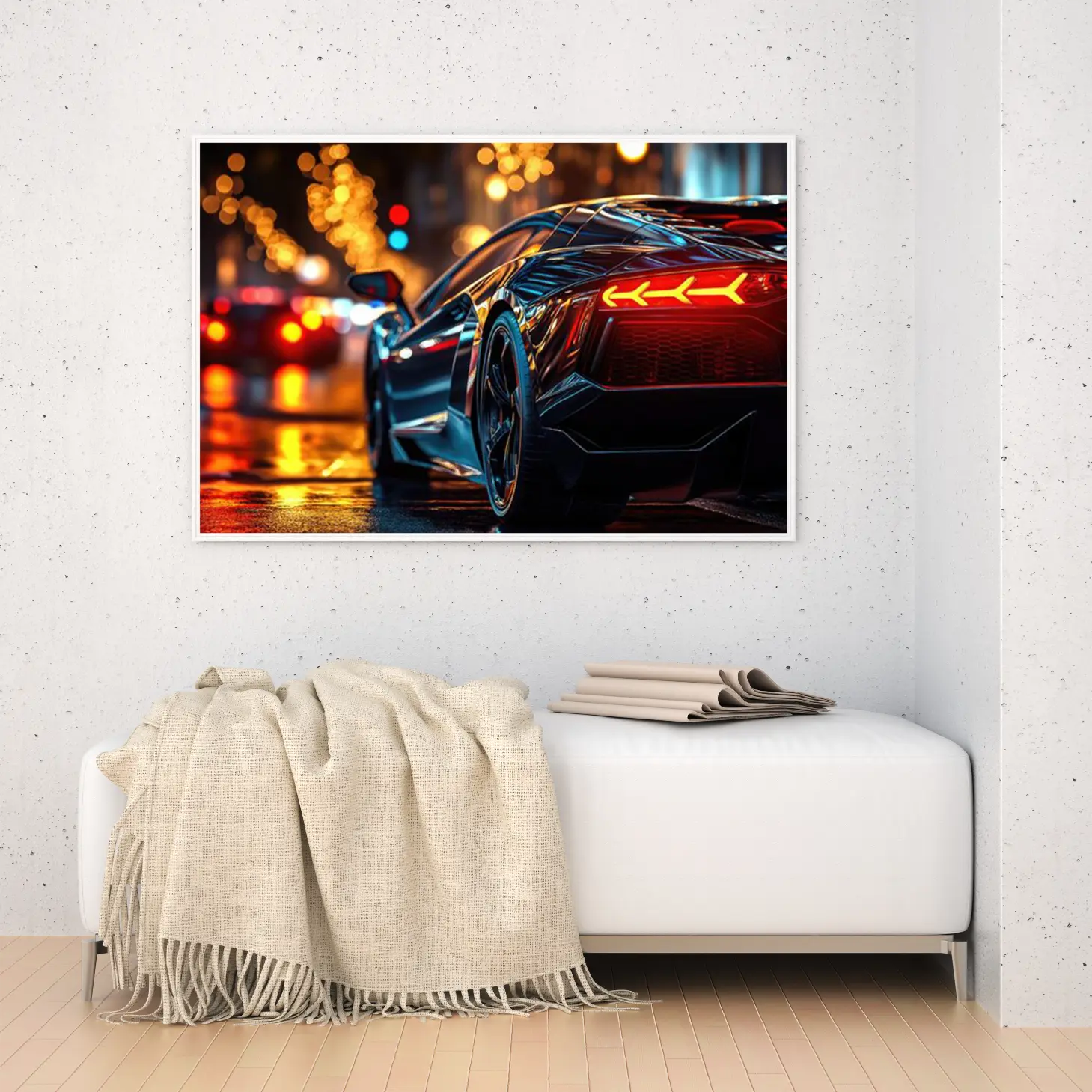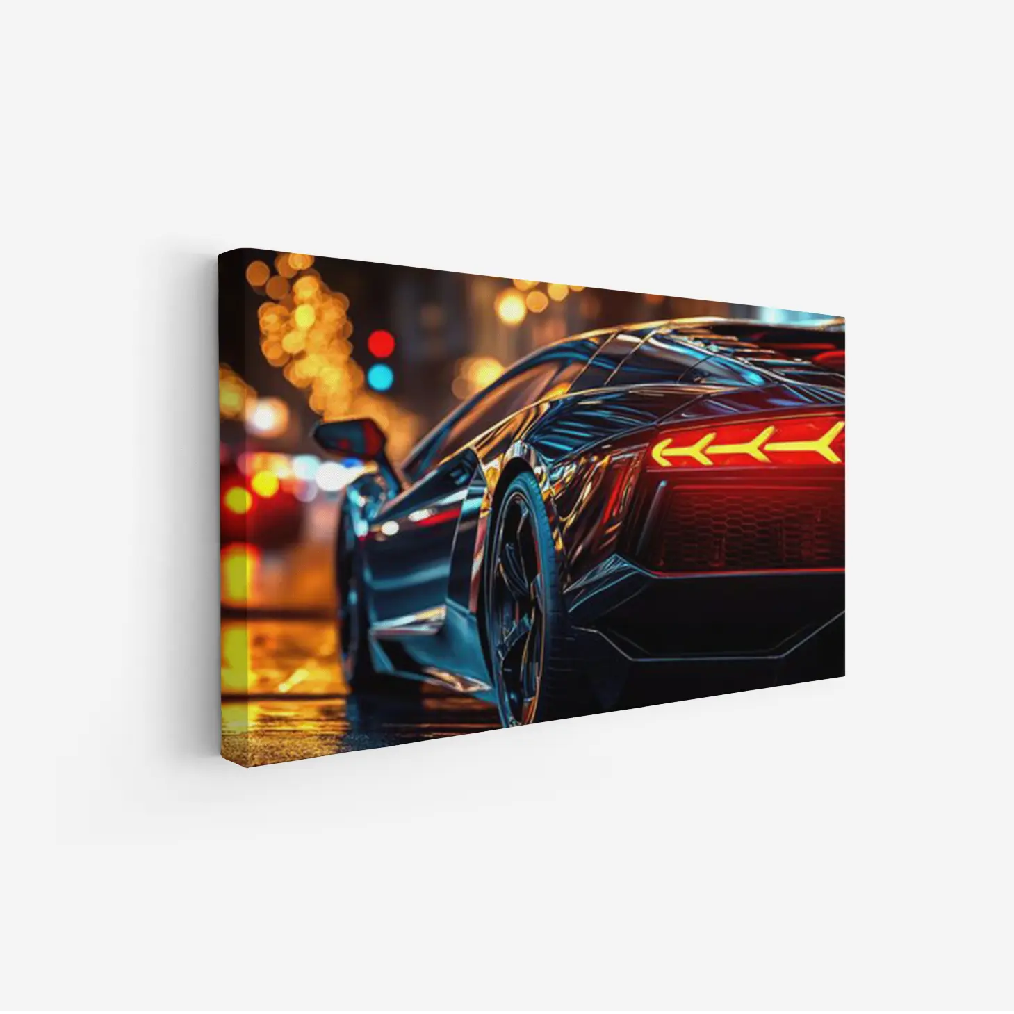 لوحة سيارات – سيارة رياضية – أضواء المدينة – ديناميكي – لوحات فن عصري – لوحات كانفاس