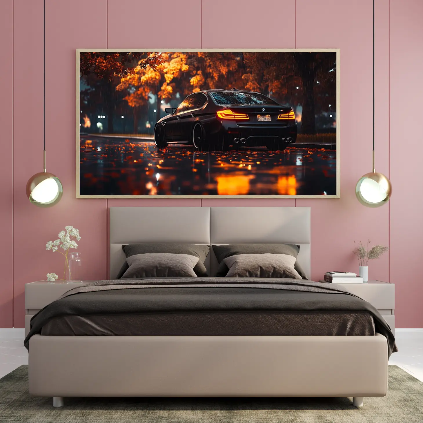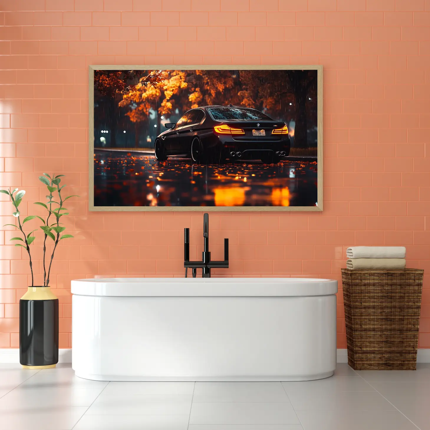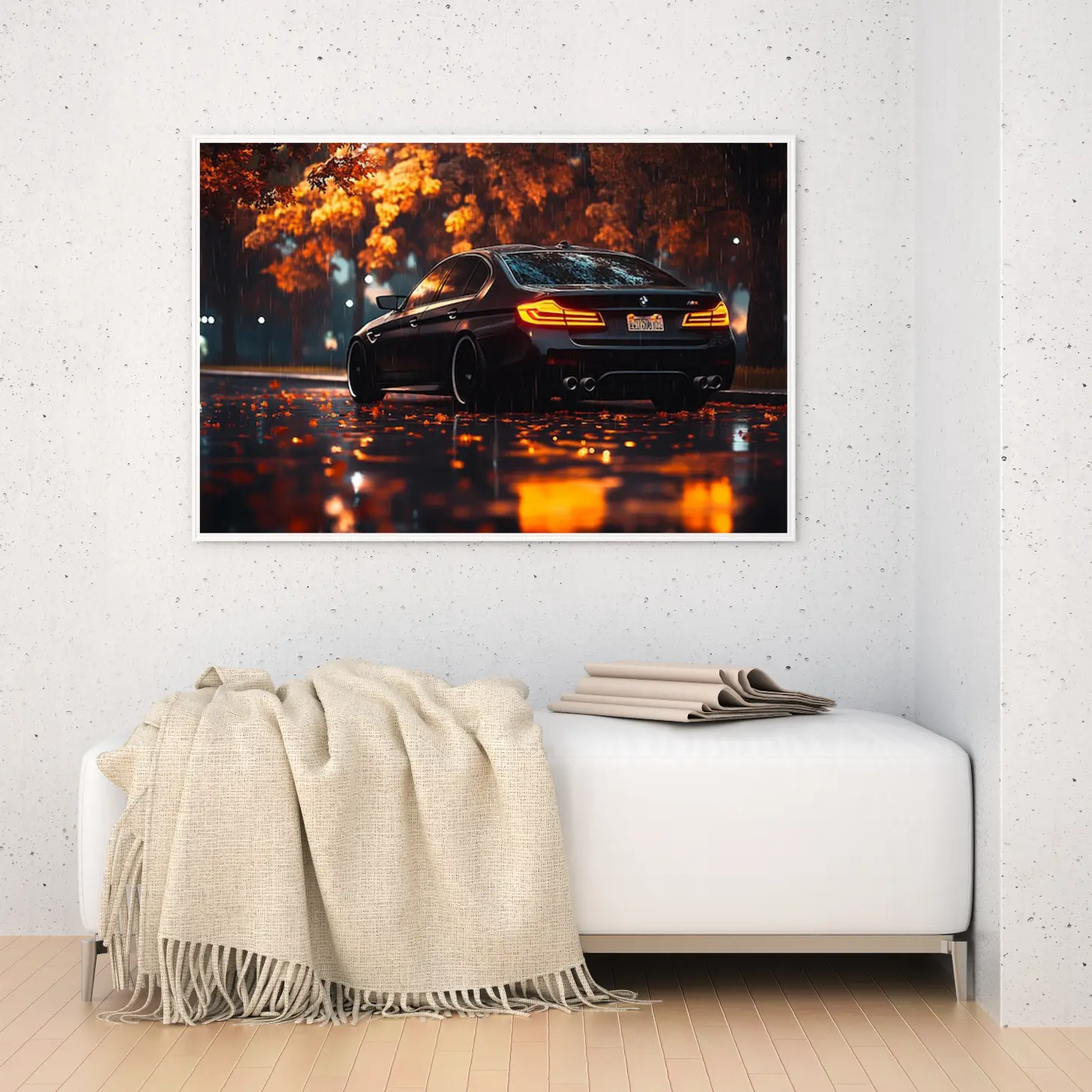 استمتع بجمال لوحة فنية تأسر الأنظار، حيث تتجلى فيها روعة سيارة فاخرة تتلألأ تحت زخات المطر، محاطة بألوان الخريف الدافئة. تتوفر هذه التحفة الفنية بمقاسات متعددة وإطارات أنيقة، مما يجعلها خيارًا مثاليًا لتزيين أي مساحة أو كهدية تعبّر عن الذوق الرفيع في المناسبات الخاصة. اجعل من كل لحظة ذكرى لا تُنسى مع هذه اللوحة التي تجمع بين الأناقة والتميز.