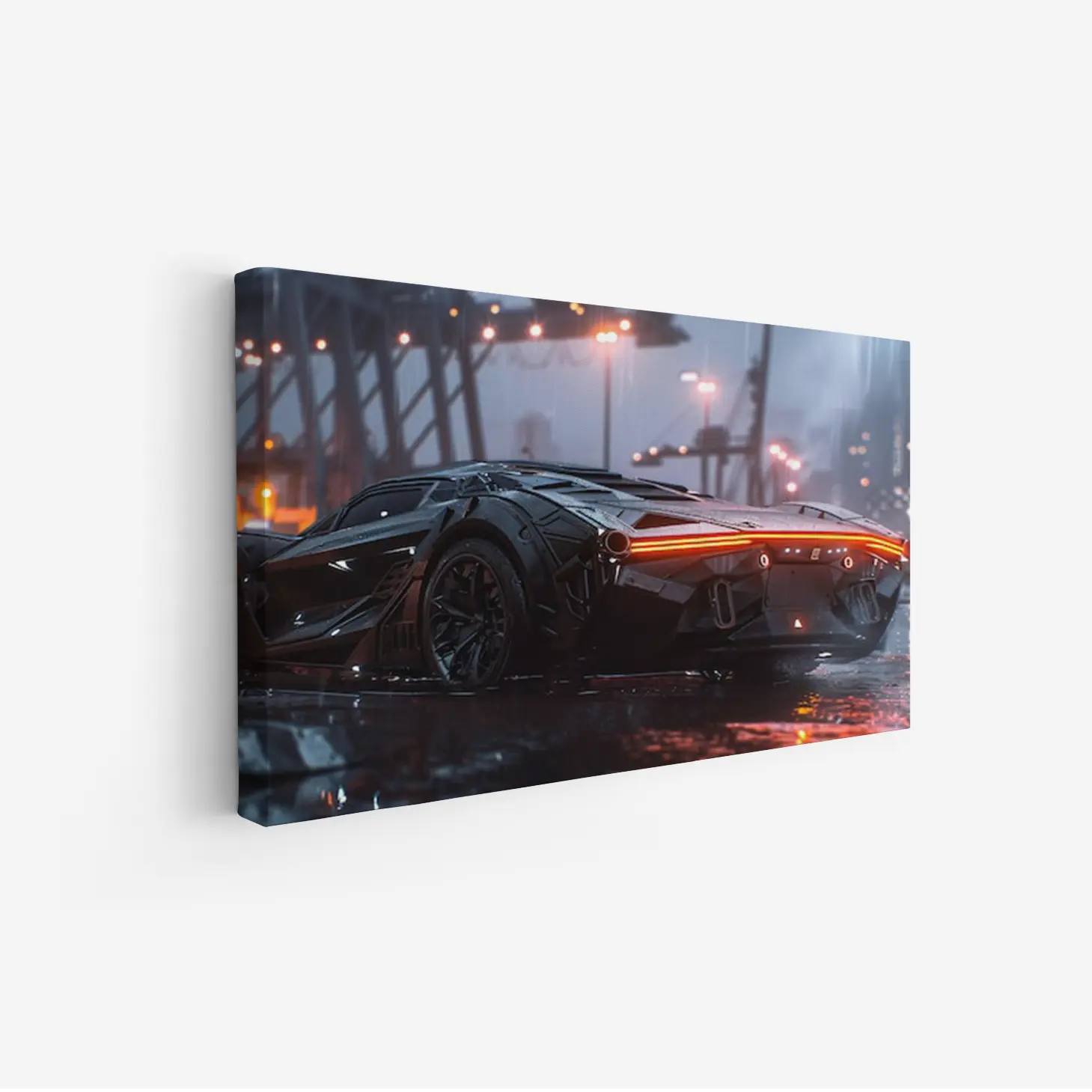 لوحة سيارات – سيارة رياضية حديثة – أضواء المدينة – درامي – لوحات فن عصري – لوحات كانفاس