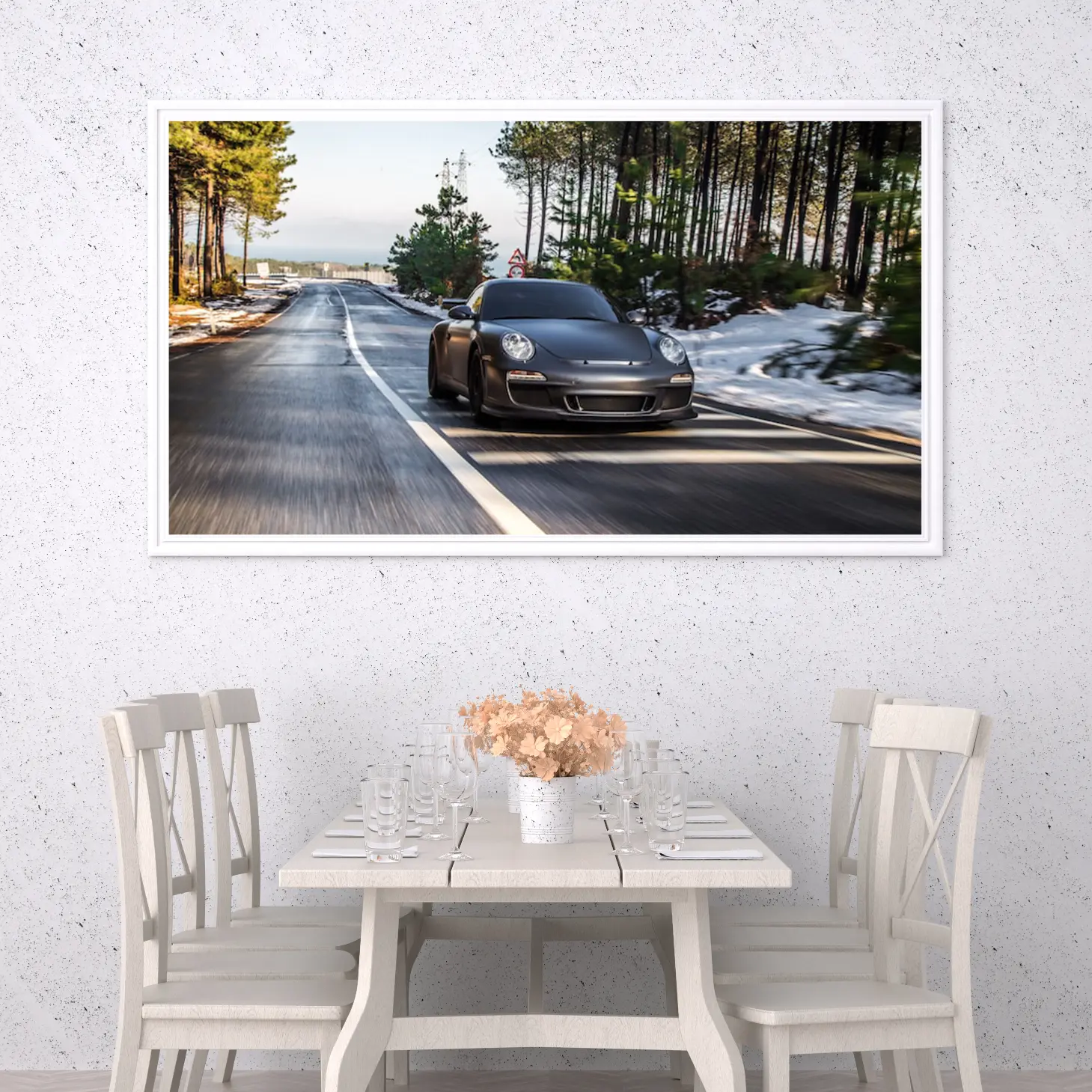 استمتع بجمال الحركة والسرعة مع هذه اللوحة الفنية الرائعة التي تجسد سيارة فاخرة تنطلق على طريق محاط بالطبيعة الخلابة. تتوفر بأحجام وإطارات متنوعة، مما يجعلها خيارًا أنيقًا للهدايا التي تعبر عن الذوق الرفيع، مثالية للمناسبات الخاصة. أضف لمسة من الفخامة إلى أي مساحة، واجعل كل نظرة تعكس شغفك بالجمال والتميز.