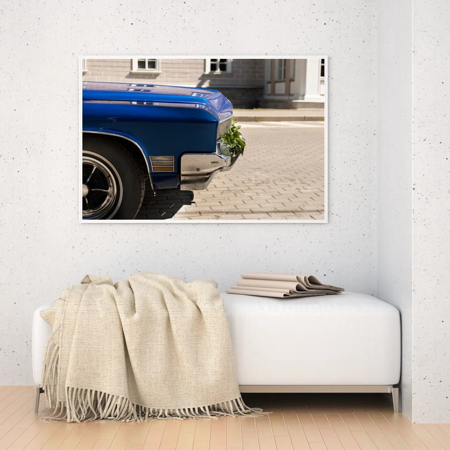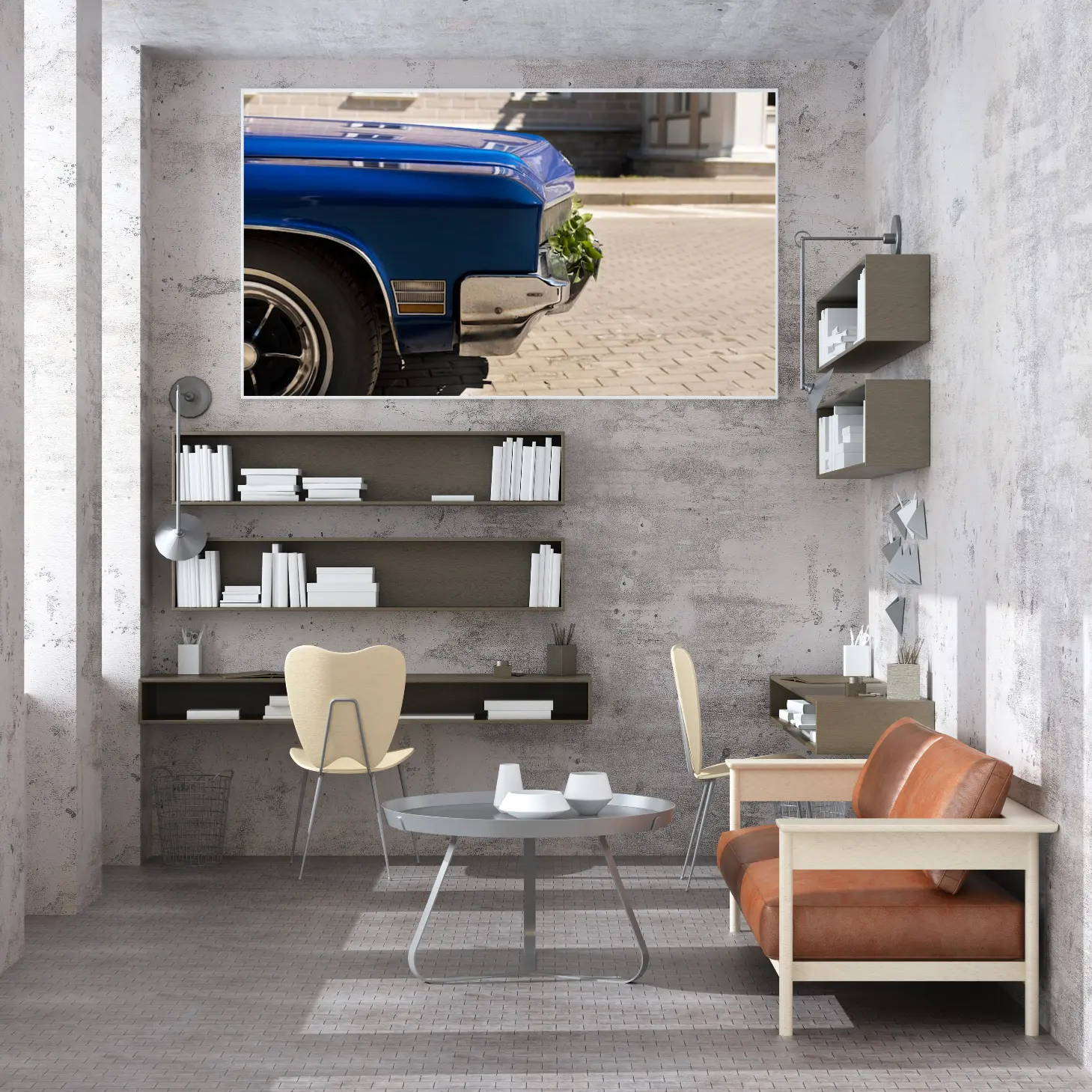 لوحة سيارات – سيارة زرقاء – خلفية حضرية – حيوية – لوحات فنية مودرن – لوحات كانفاس