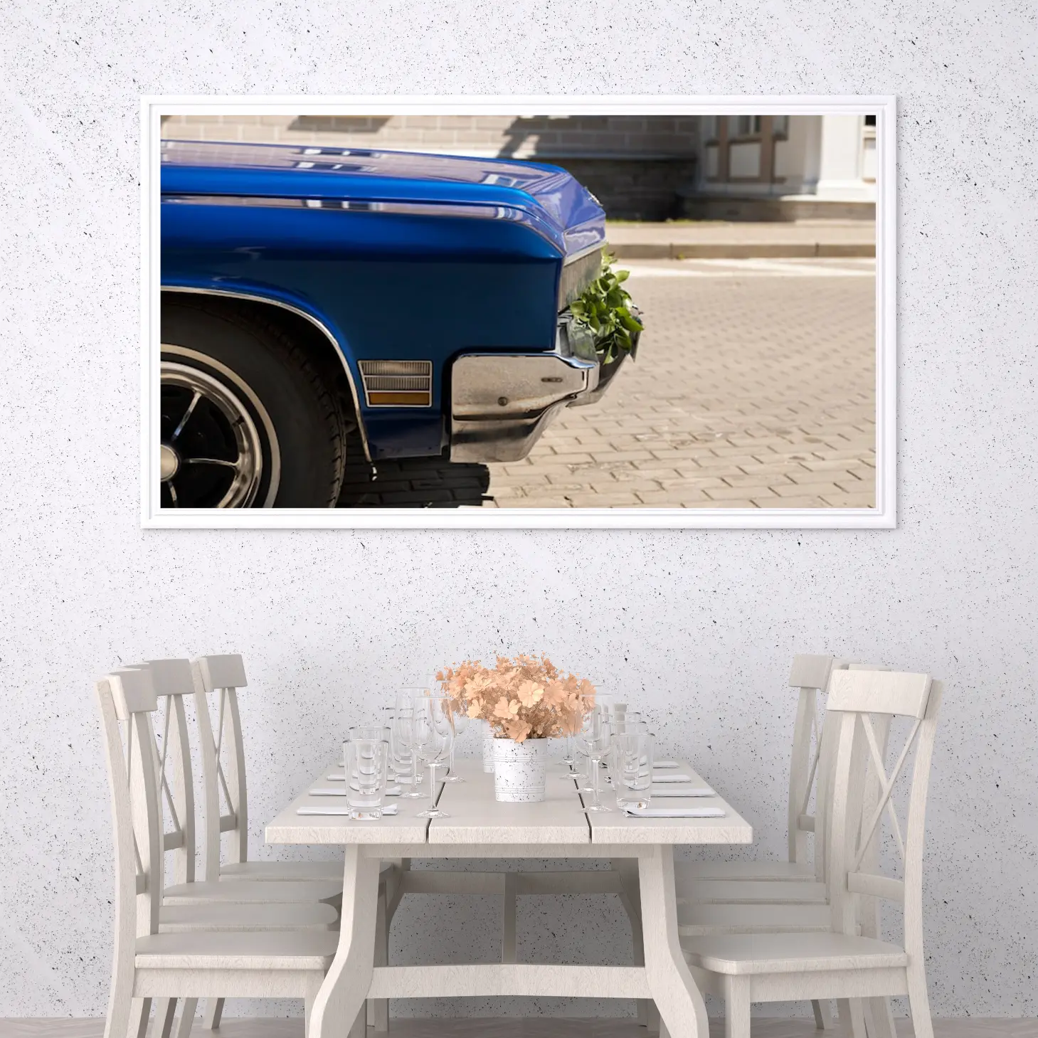 تتجلى في هذه اللوحة جماليات فنية تأسر الأنظار، حيث يظهر مشهد سيارة زرقاء أنيقة تتزين بأوراق خضراء، مما يضفي إحساسًا بالاحتفال والبهجة. تعكس الألوان الزاهية والحيوية روح الحياة العصرية، مما يجعلها خيارًا مثاليًا لإضفاء لمسة من الأناقة على أي مساحة. إن هذا العمل الفني لا يقتصر فقط على كونه قطعة ديكور، بل هو تعبير عن أسلوب حياة متجدد ومليء بالذكريات الجميلة.