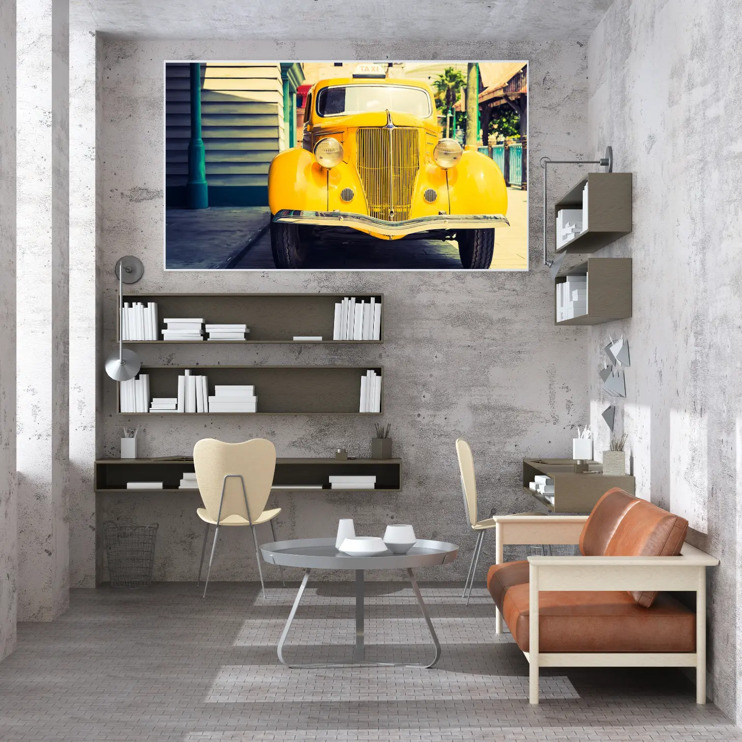 تجسد هذه اللوحة الفنية لحظة ساحرة من الزمن، حيث تتألق سيارة صفراء قديمة في مشهد يبعث على الحنين. تعكس الألوان الزاهية والحيوية روح الحياة العصرية، مما يجعلها إضافة مثالية لأي مساحة. تخلق هذه القطعة الفنية أجواءً دافئة ومليئة بالحيوية، مما يعزز من نمط الحياة العصري ويضفي لمسة من الأناقة على الديكور المنزلي.
