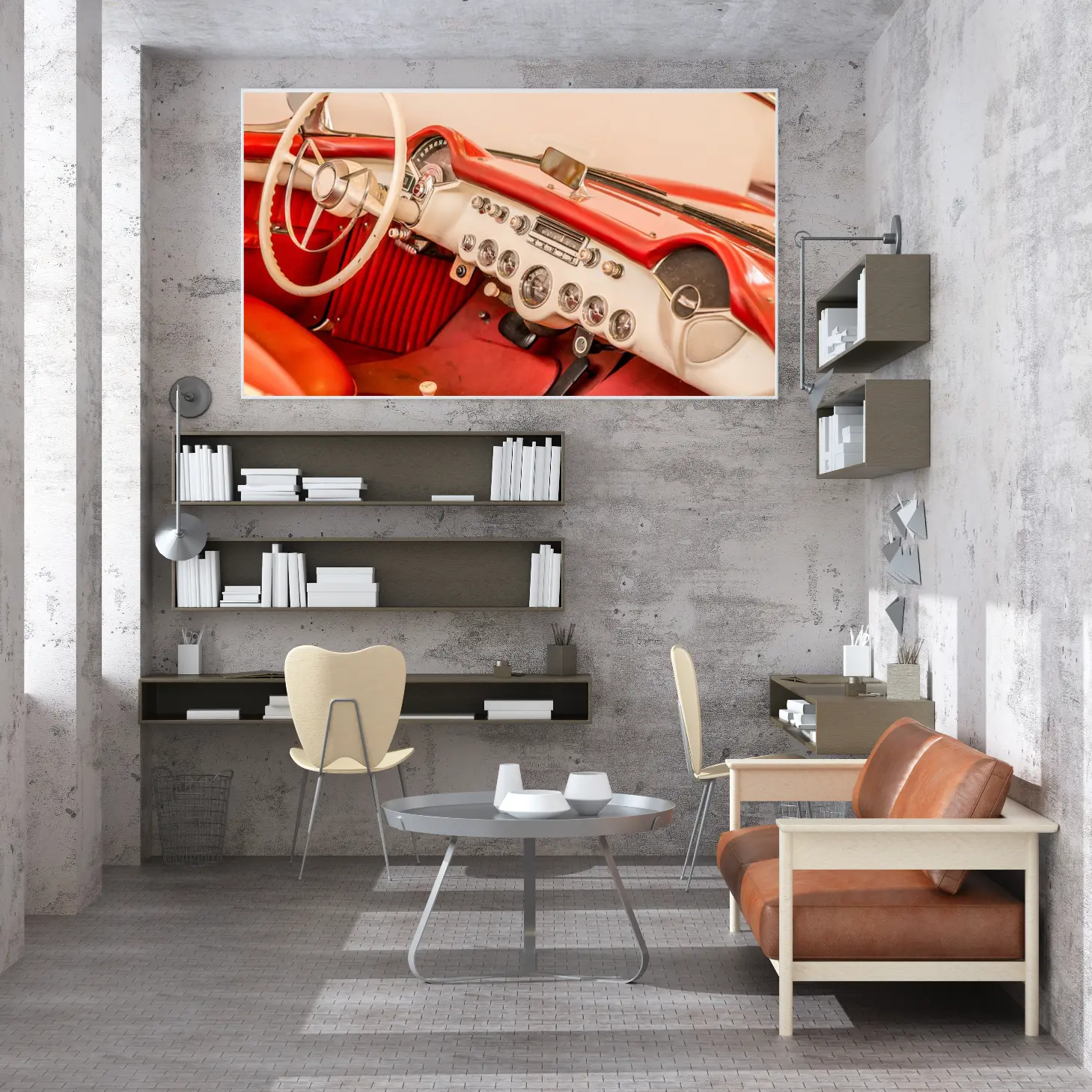 لوحة سيارات – لوحة داخلية حمراء – إضاءة دافئة – كلاسيكي – لوحات فنية مودرن – لوحات كانفاس