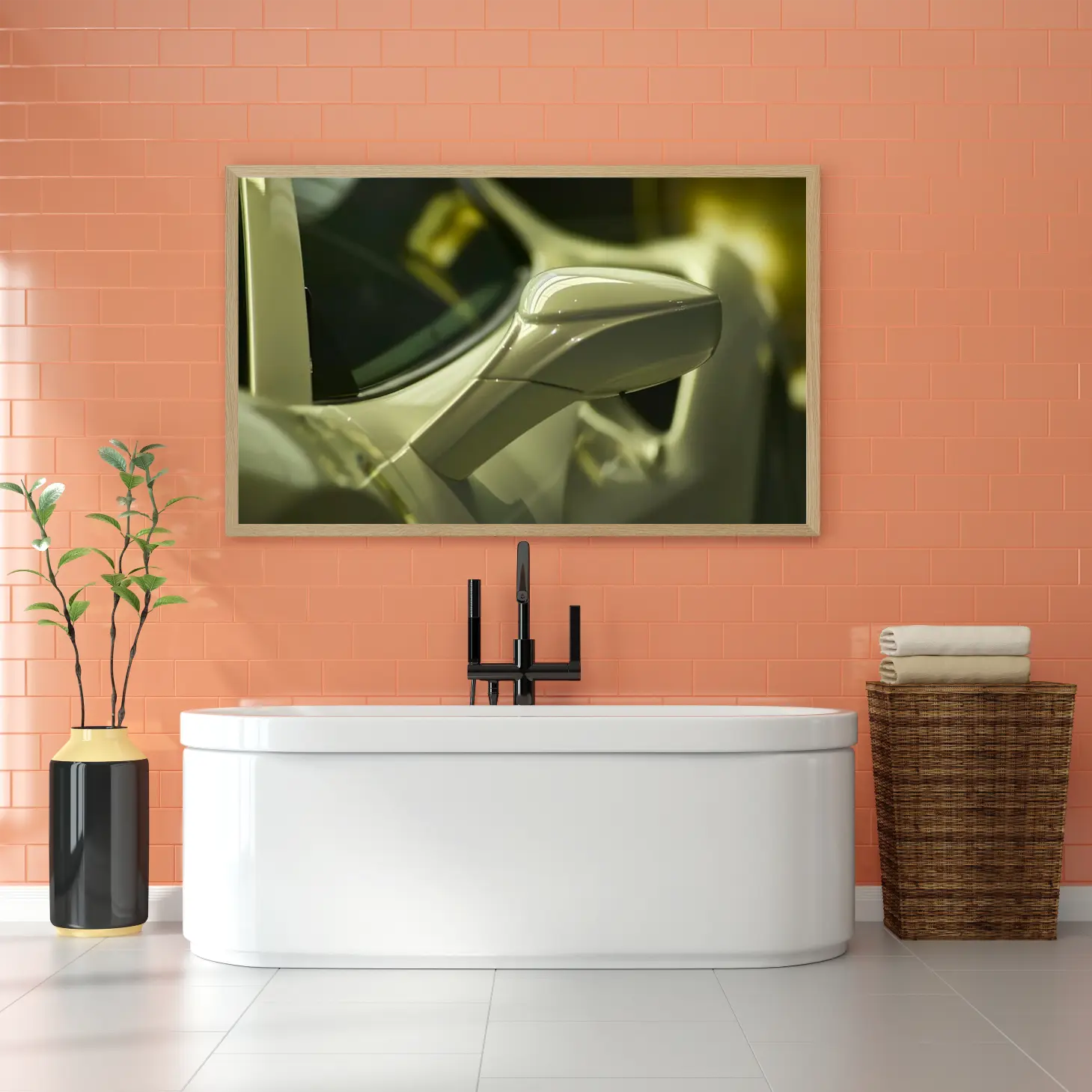 لوحة سيارات – مرآة سيارة – ألوان دافئة – عصري – لوحات فنية مودرن – لوحات كانفاس
