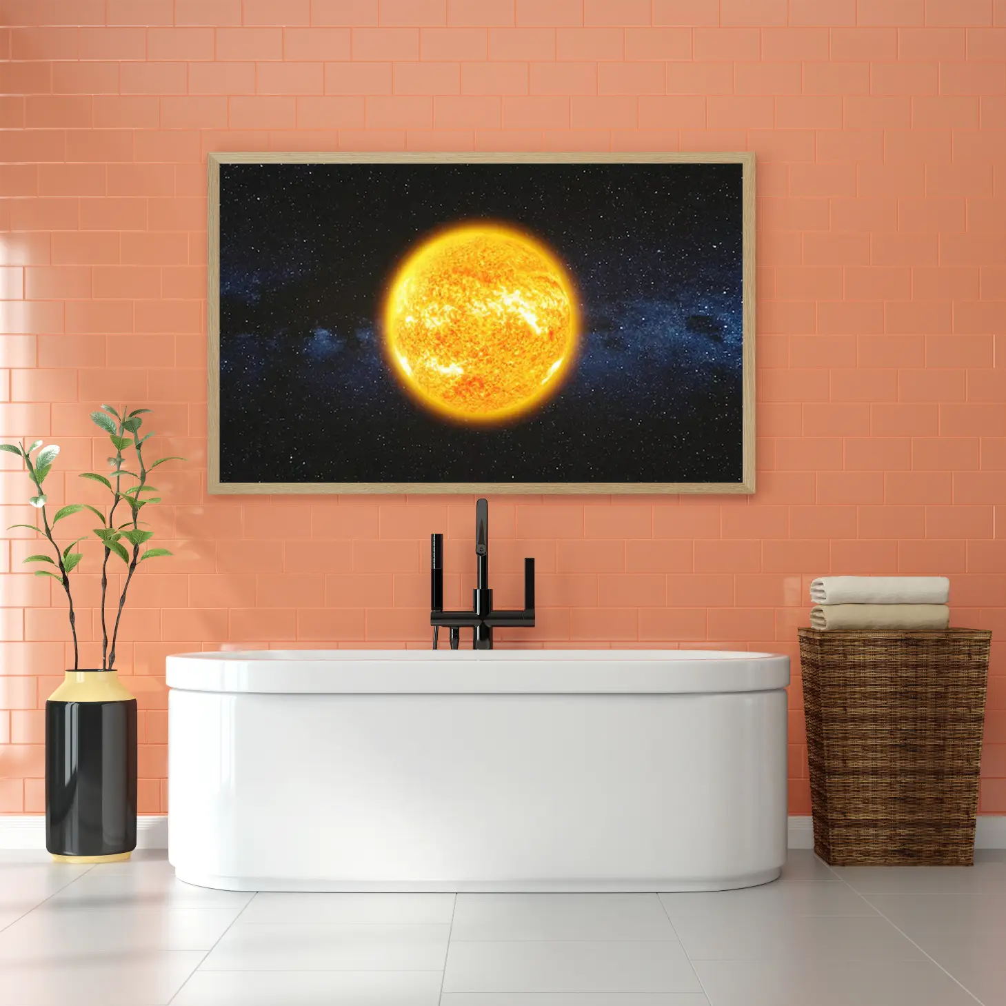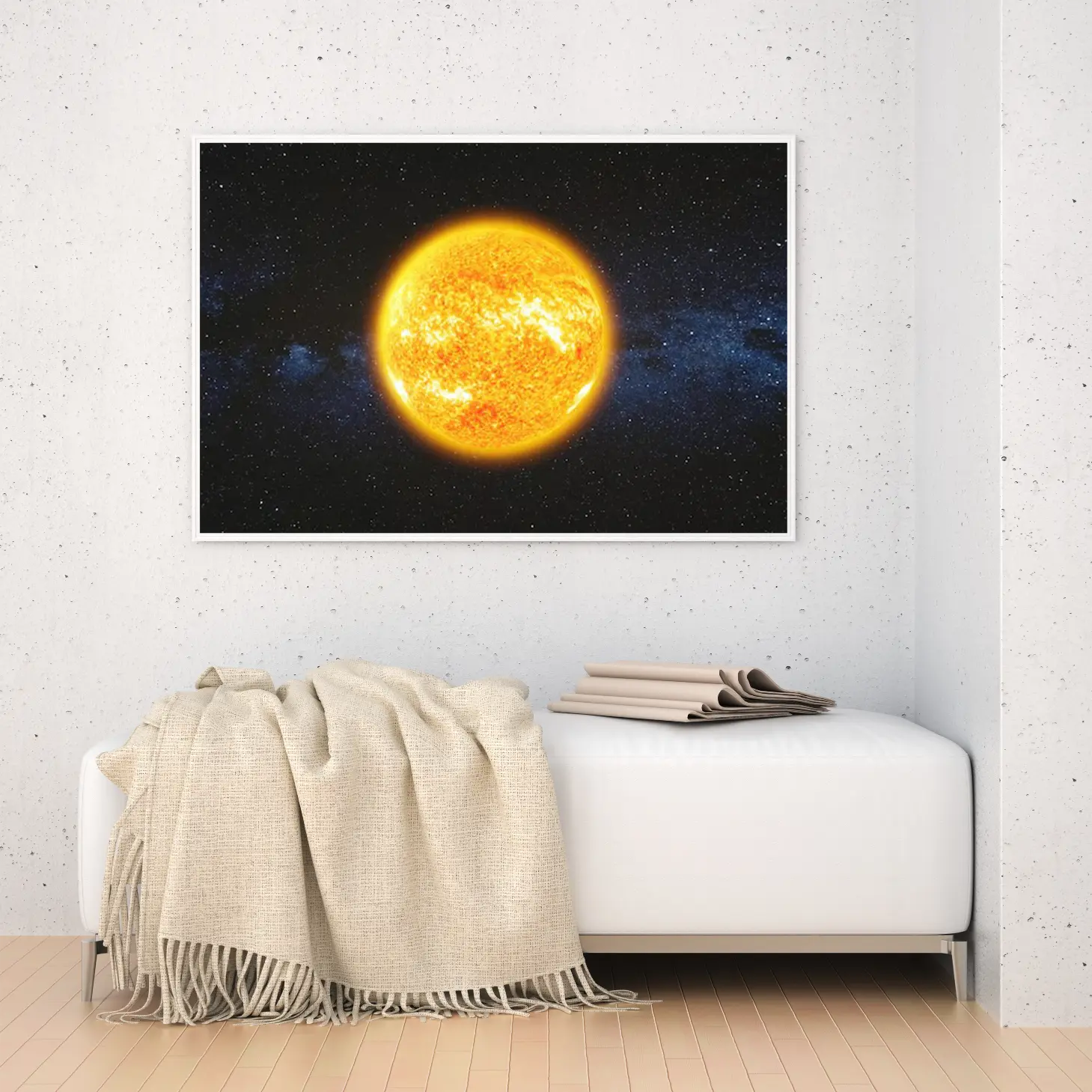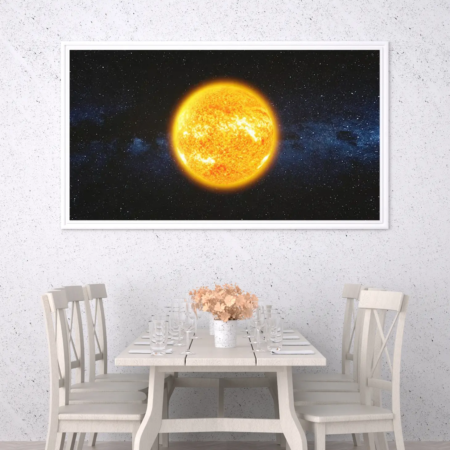 استمتع بجمال الكون مع هذه اللوحة الفنية المبهرة التي تجسد شمسنا المتألقة في فضاءٍ ساحر. تضفي الألوان الزاهية والتفاصيل الدقيقة لمسة من الإشراق على أي مساحة، مما يجعلها خيارًا مثاليًا لعشاق الفن والطبيعة. اجعل من منزلك ملاذًا يعكس روعة الكون وجماله.