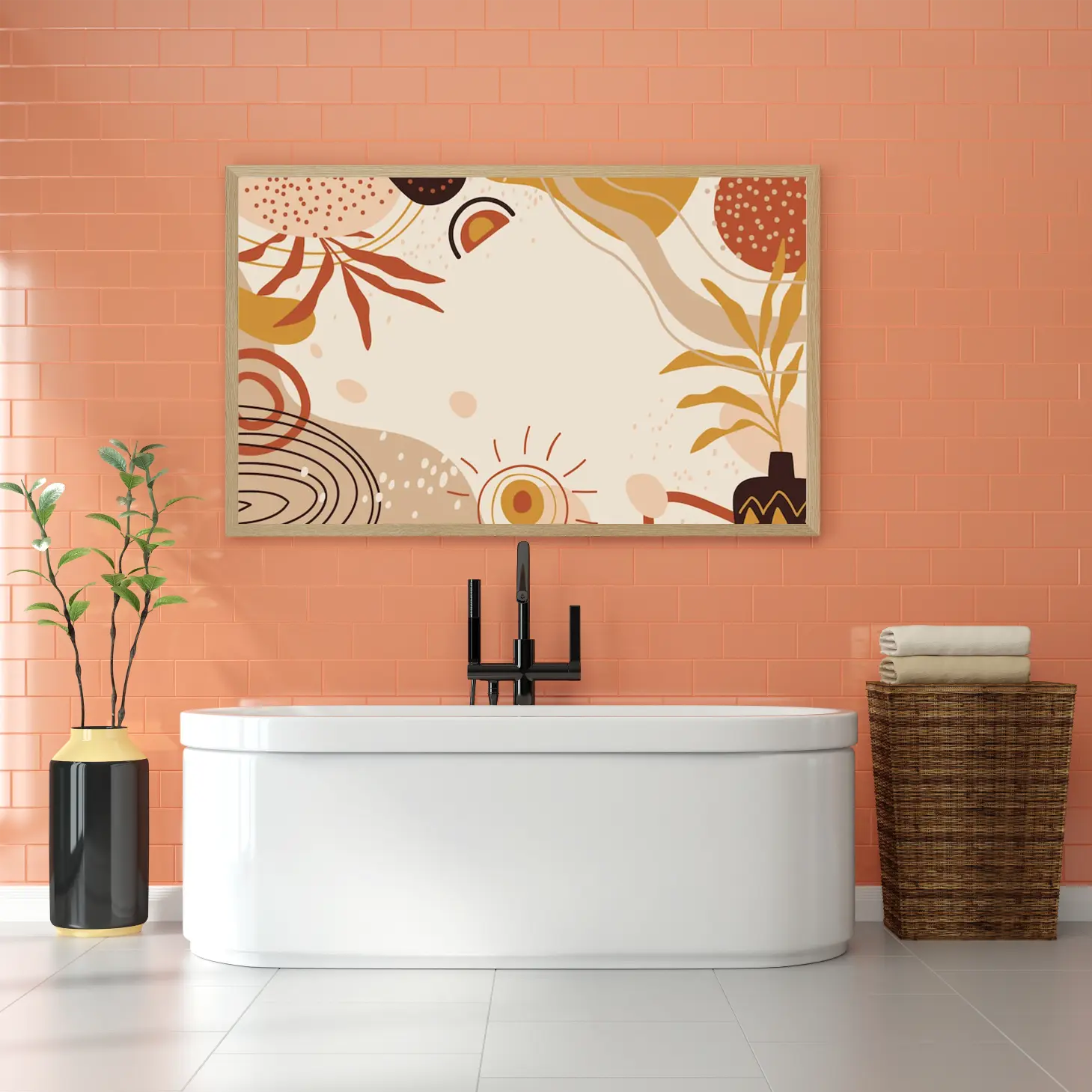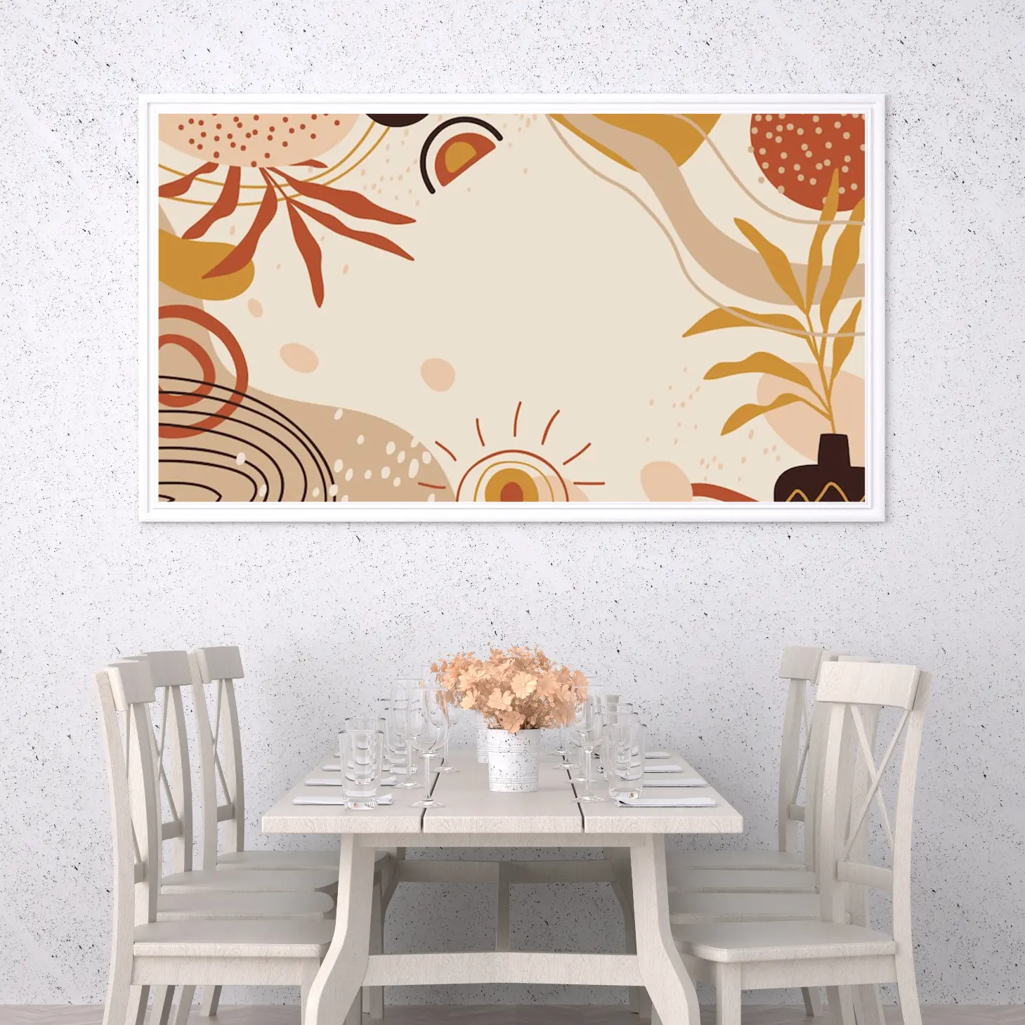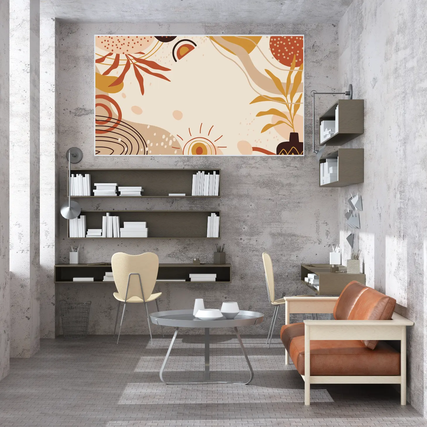 تضفي هذه اللوحة لمسة من الأناقة العصرية على أي مساحة، حيث تتناغم الألوان الدافئة مع الأشكال العضوية لتخلق أجواءً مريحة ومليئة بالحيوية. تعكس التصميمات المبتكرة روح الطبيعة، مما يجعلها خيارًا مثاليًا لمن يسعى إلى إضافة لمسة فنية تعزز من نمط الحياة العصري. إن تأثيرها البصري يساهم في خلق بيئة مريحة ومليئة بالإلهام، مما يجعلها نقطة محورية في أي ديكور منزلي.