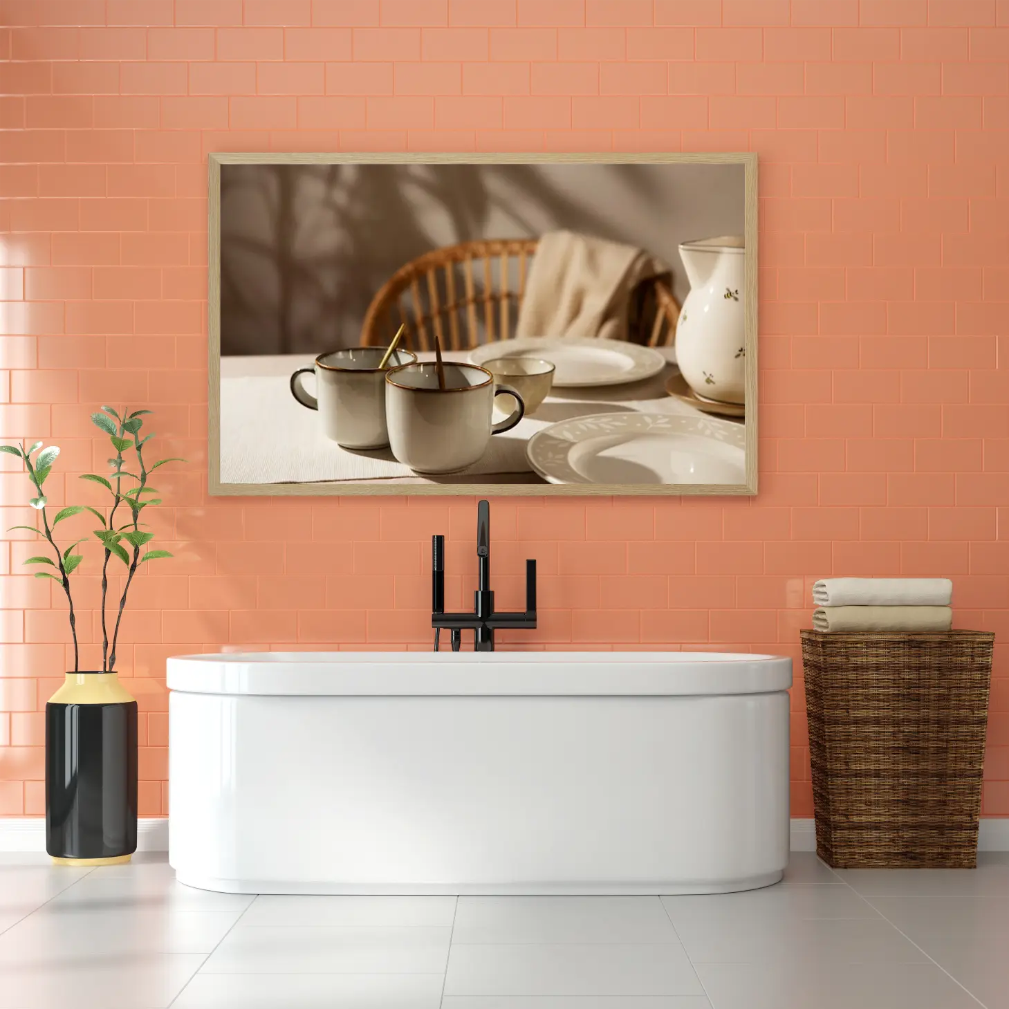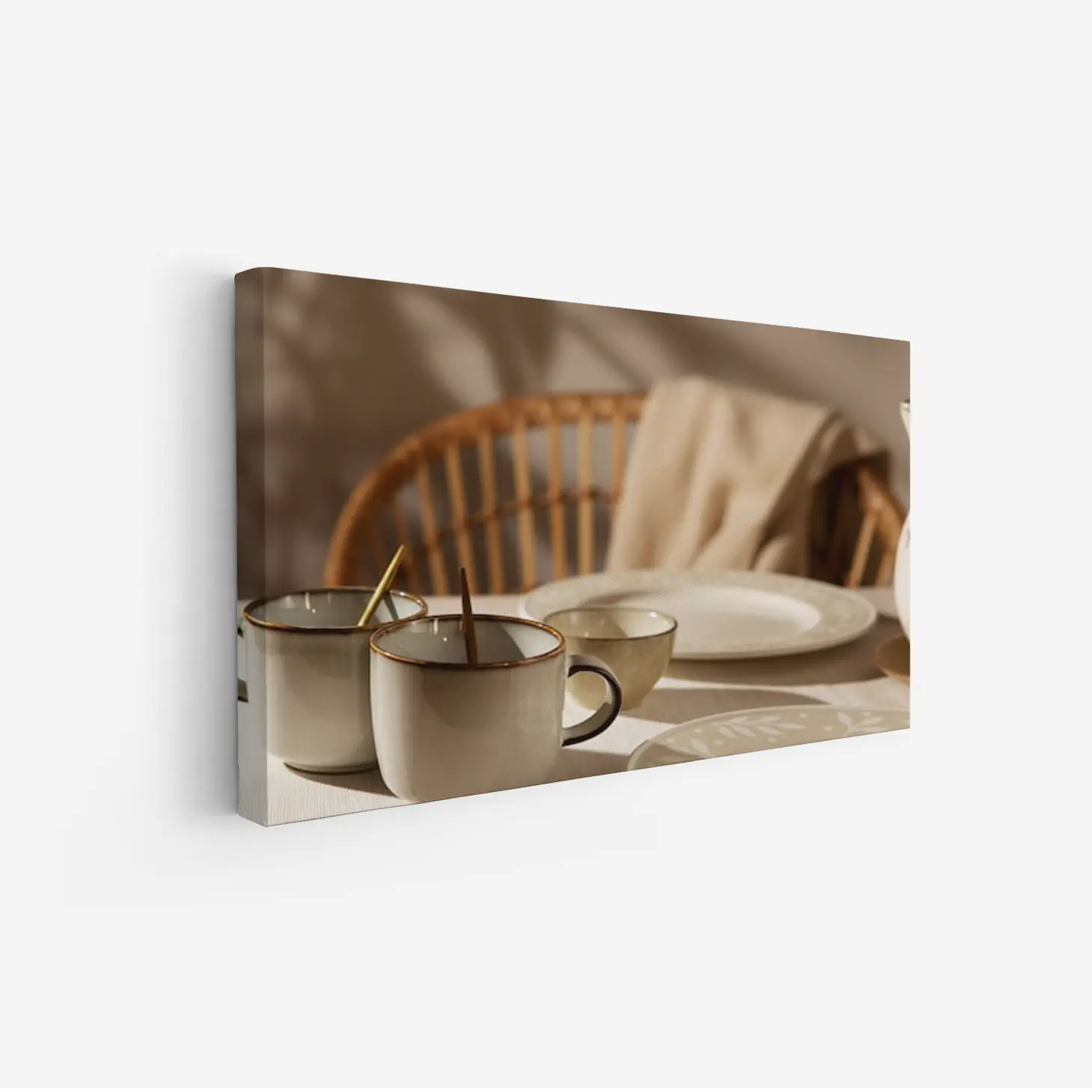 لوحة طبيعة هادئة – أكواب وشاي – ألوان دافئة – هادئ – لوحات فن عصري – لوحات كانفاس