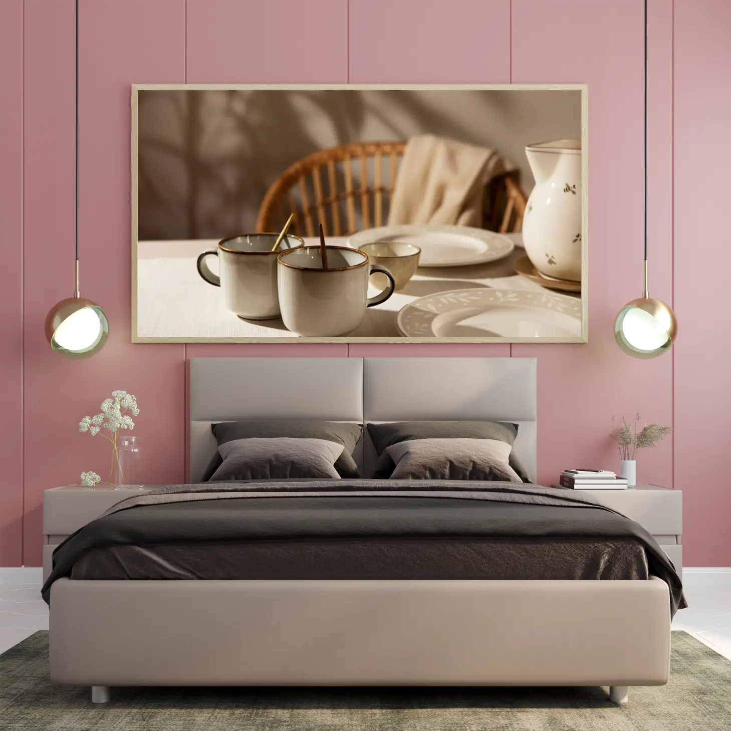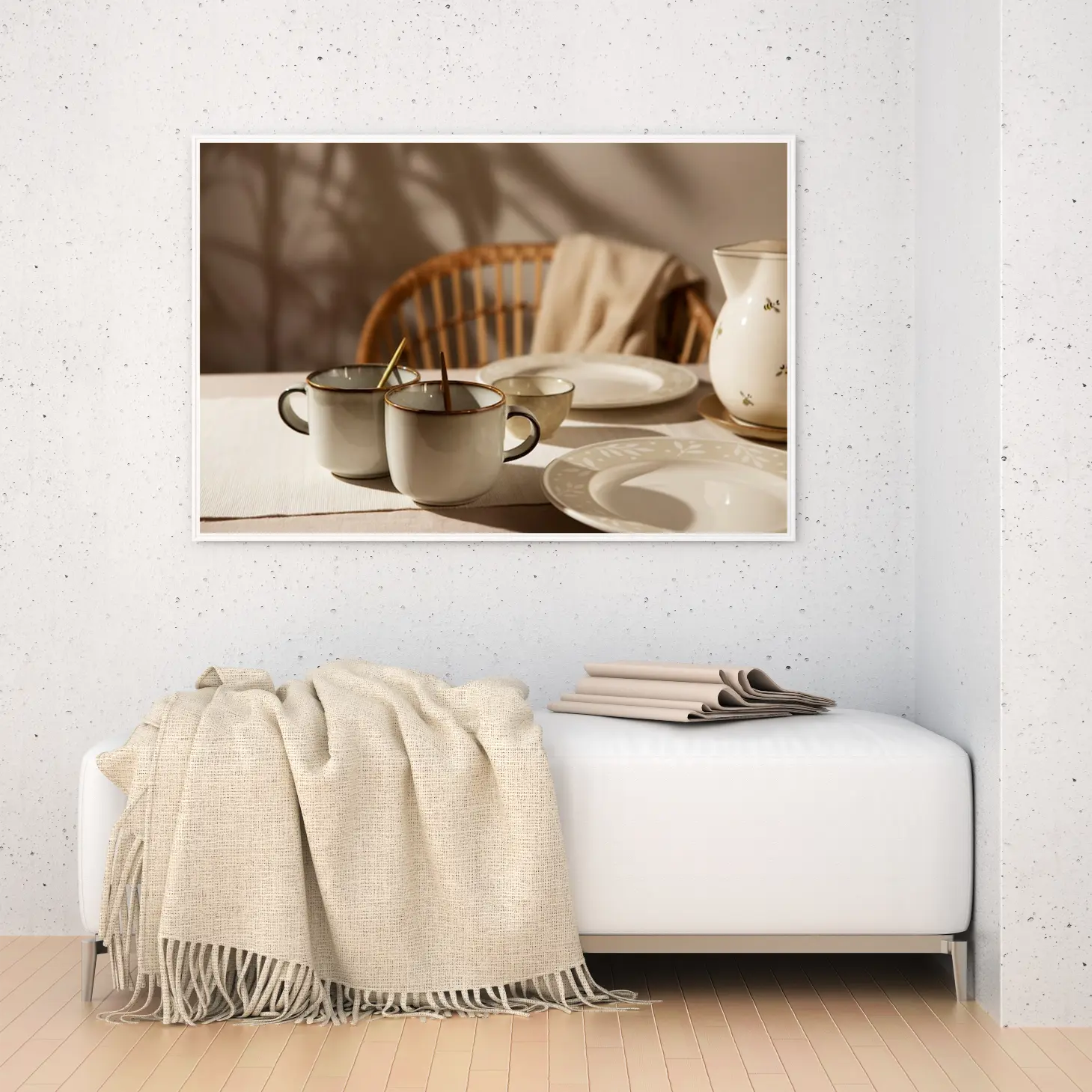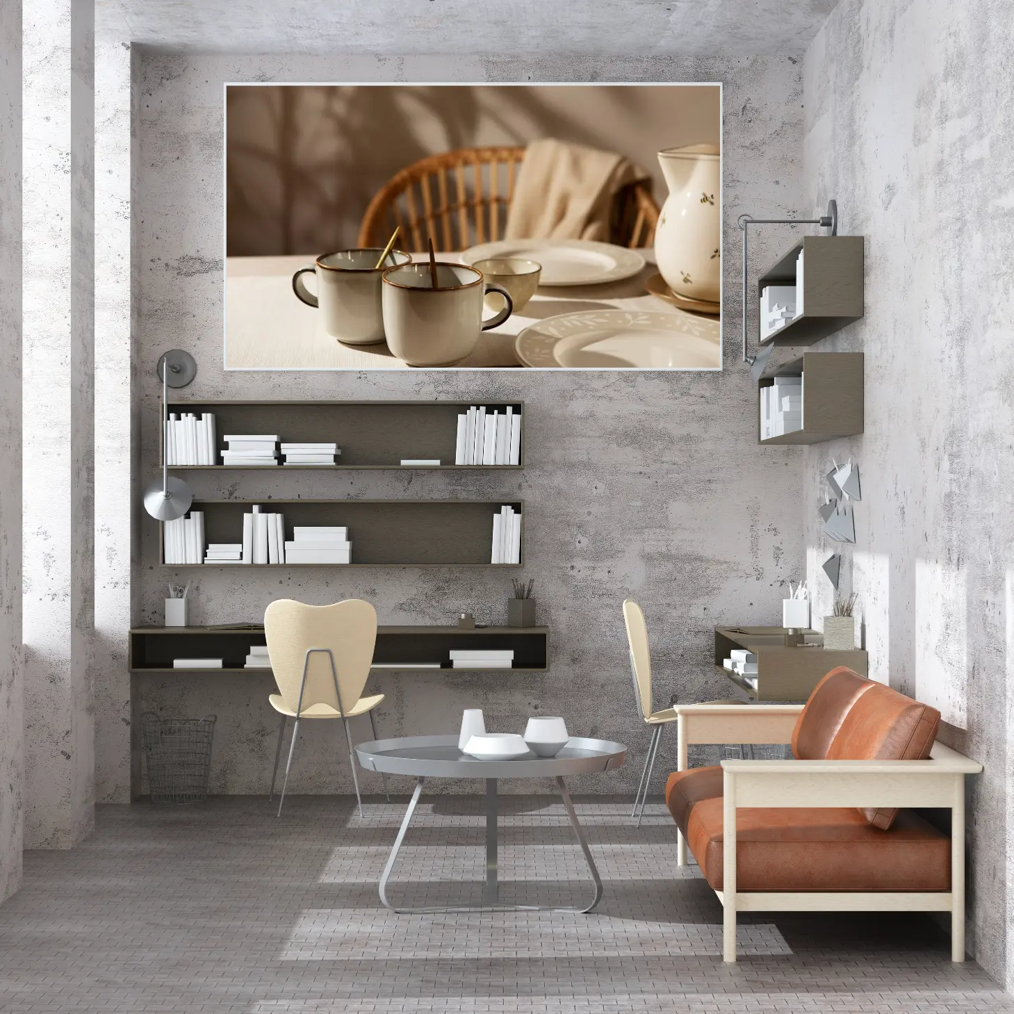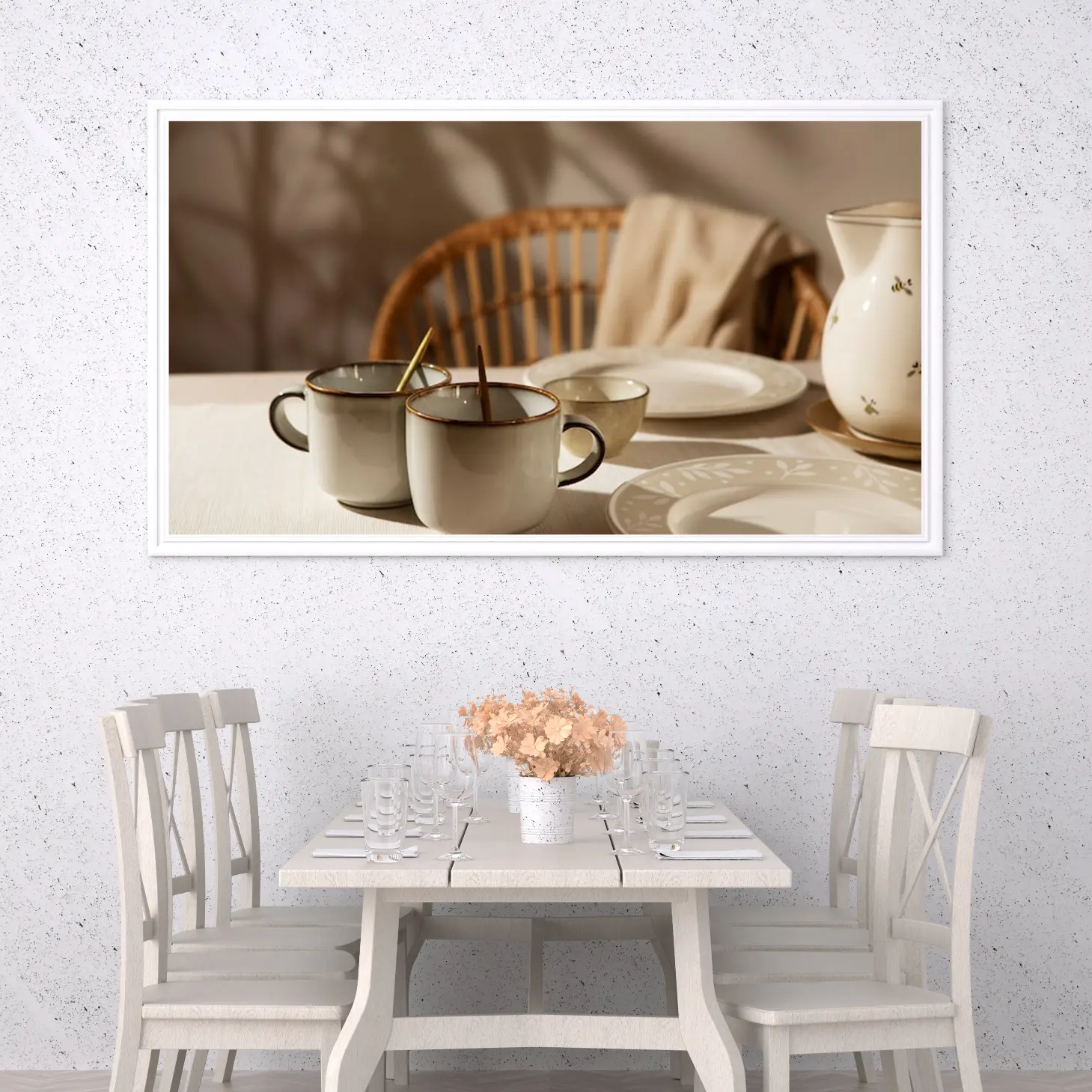 استمتع بجمال اللحظات اليومية مع هذه اللوحة الرائعة التي تجسد تناغم الألوان والأشكال في مشهد مريح. تعكس الأكواب الأنيقة والأطباق الفاخرة إحساسًا بالهدوء والراحة، مما يجعلها خيارًا مثاليًا لتزيين أي مساحة. تتوفر بأحجام متعددة وإطارات متنوعة، مما يتيح لك اختيار ما يناسب ذوقك، لتكون هدية تعبر عن الذوق الرفيع في المناسبات الخاصة.