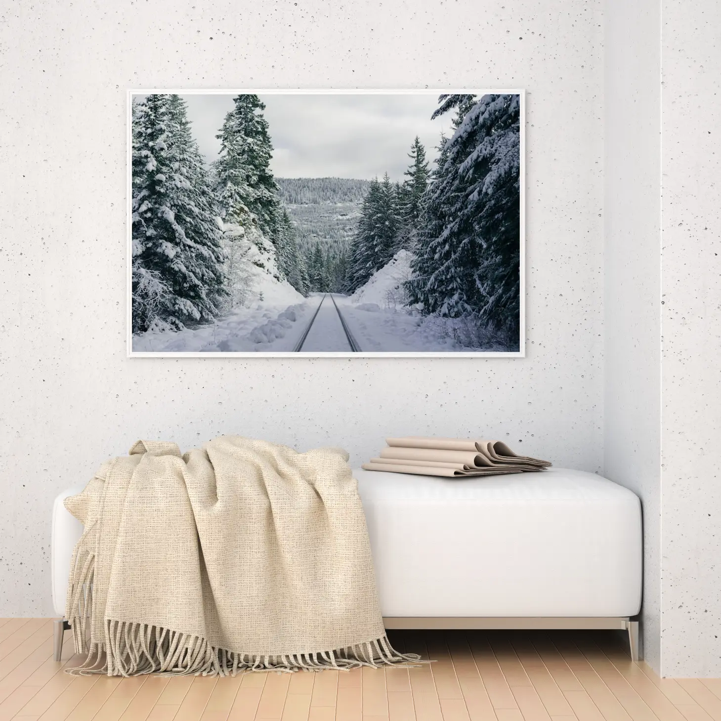 تجسد هذه اللوحة جمال الطبيعة في أبهى صوره، حيث تتناغم الألوان الباردة مع مشهد ثلجي ساحر. تبرز الأشجار الكثيفة المغطاة بالثلوج، مما يخلق إحساسًا بالهدوء والسكينة. تعكس الأجواء العامة للوحة شعورًا بالراحة والانسجام، مما يجعلها خيارًا مثاليًا لإضفاء لمسة من السحر على أي مساحة. إن وجود هذه القطعة الفنية في منزلك سيضفي طابعًا عصريًا وأنيقًا، ويعزز من نمط الحياة الهادئ الذي تسعى إليه.