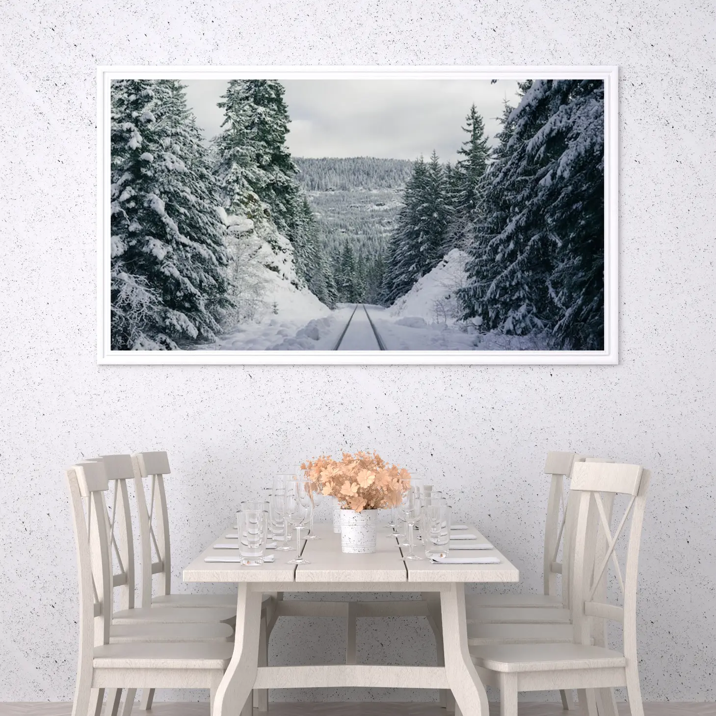 استمتع بجمال الطبيعة الخلابة مع هذه اللوحة الفاخرة التي تأخذك في رحلة عبر غابات الثلج الساحرة. بتفاصيل دقيقة وألوان هادئة، تضفي هذه التحفة الفنية لمسة من الأناقة على أي مساحة، مما يجعلها خيارًا أنيقًا للهدايا في المناسبات الخاصة. تتوفر بأحجام متعددة وإطارات متنوعة، لتناسب ذوقك وتضفي لمسة فريدة على منزلك.