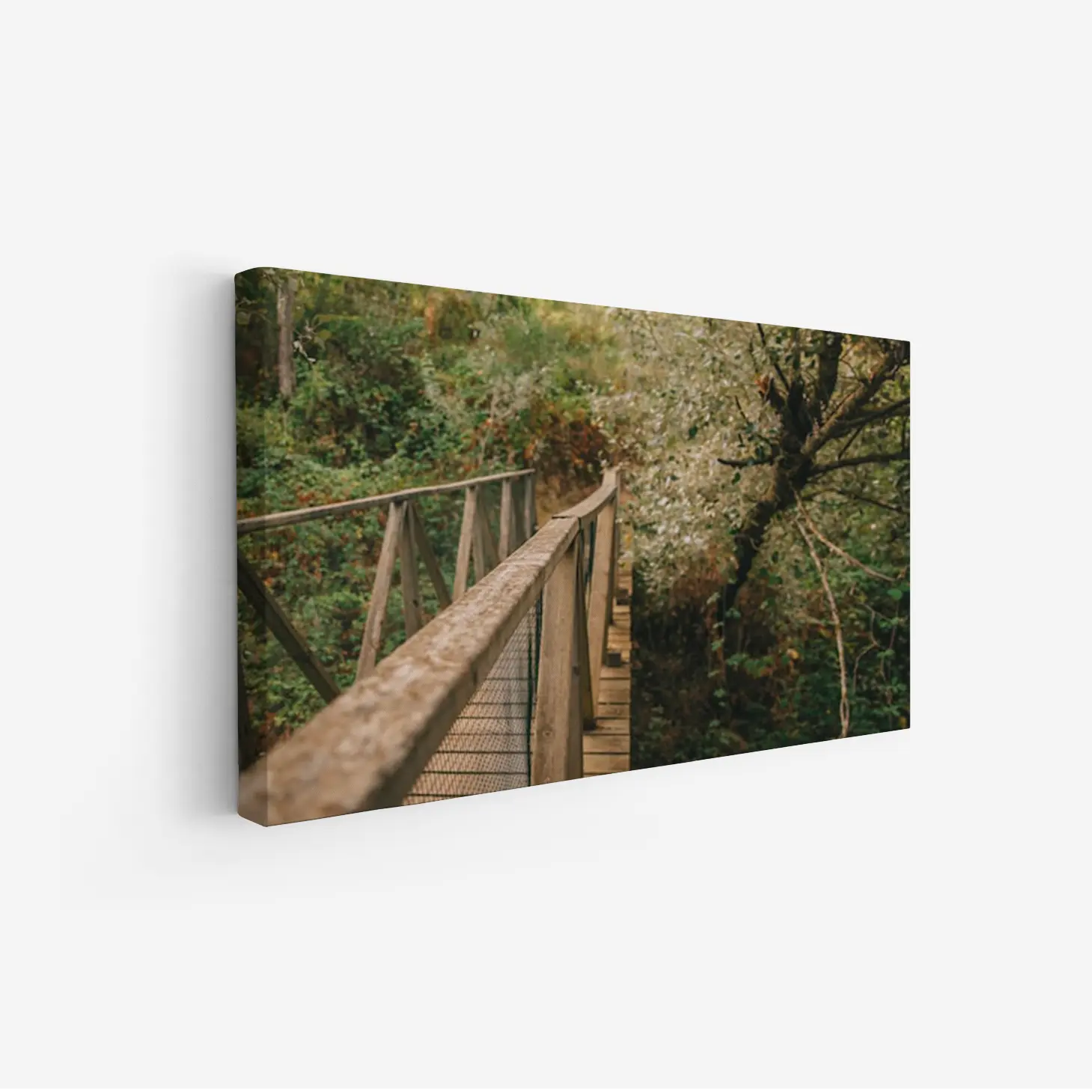 لوحة طبيعة هادئة – جسر خشبي – ألوان خضراء – هادئ – لوحات طبيعة – لوحات كانفاس