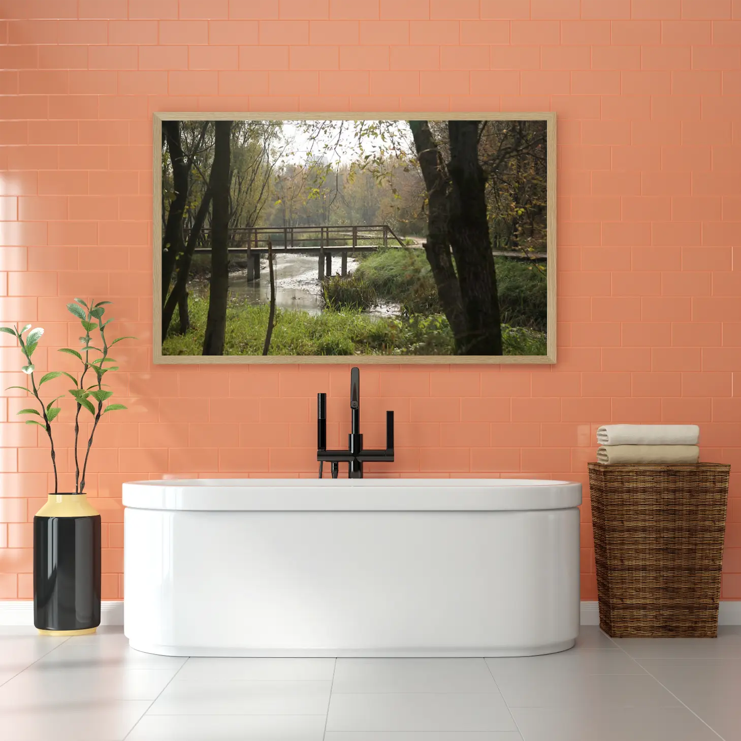 لوحة طبيعة هادئة – جسر خشبي – ألوان دافئة – هادئ – لوحات طبيعة – لوحات كانفاس