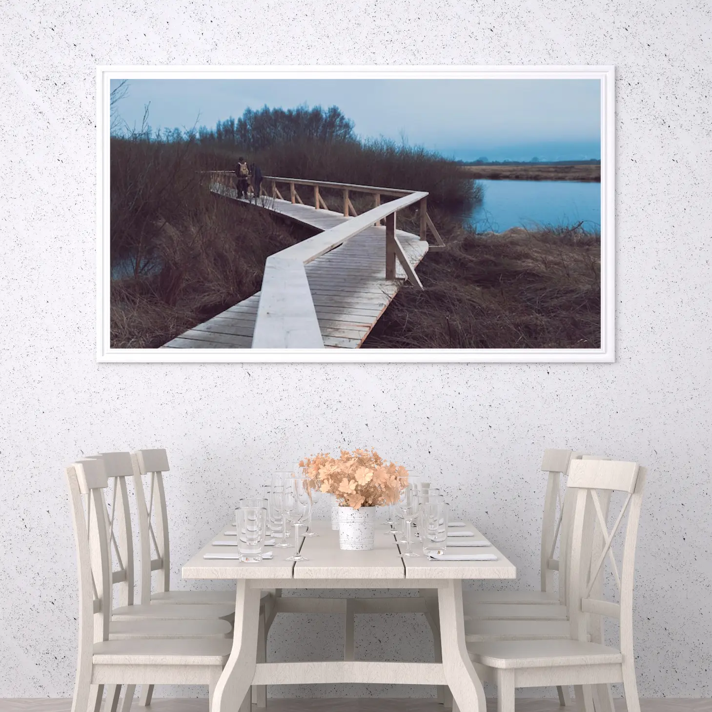 لوحة طبيعة هادئة – جسر خشبي – ألوان هادئة – ضبابي – لوحات طبيعة – لوحات كانفاس