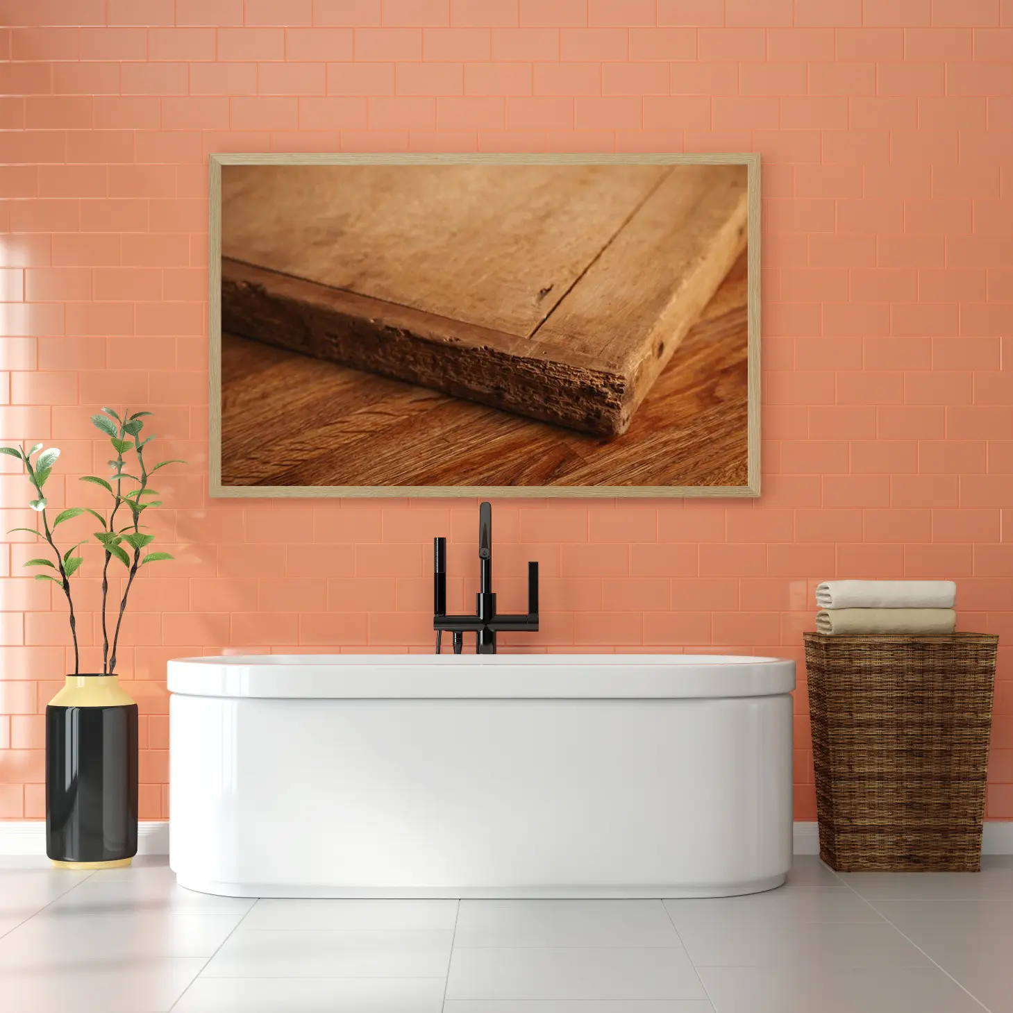 تتميز جودة الطباعة في هذه اللوحة بدقة عالية، حيث تبرز تفاصيل الخشب بشكل واضح، مما يعكس عمق الألوان وثراء الخامة. تم استخدام كانفاس عالي الجودة يضمن ثبات الألوان على مر الزمن، مما يجعل هذه القطعة استثمارًا جماليًا يدوم طويلاً. إن لمسة اللمعان الطبيعي تضيف بُعدًا إضافيًا، مما يجعل المشاهد يشعر وكأنه يتفاعل مع الخشب الحقيقي، وليس مجرد صورة.