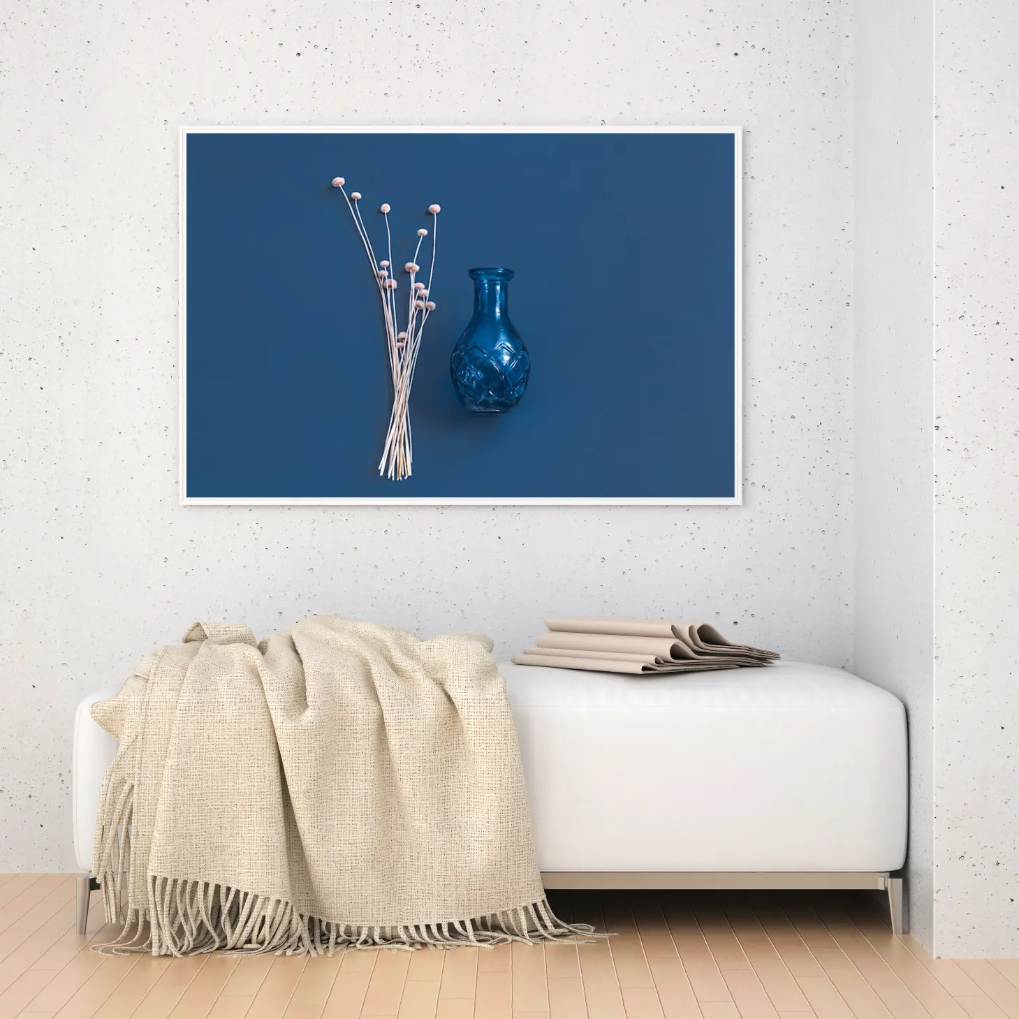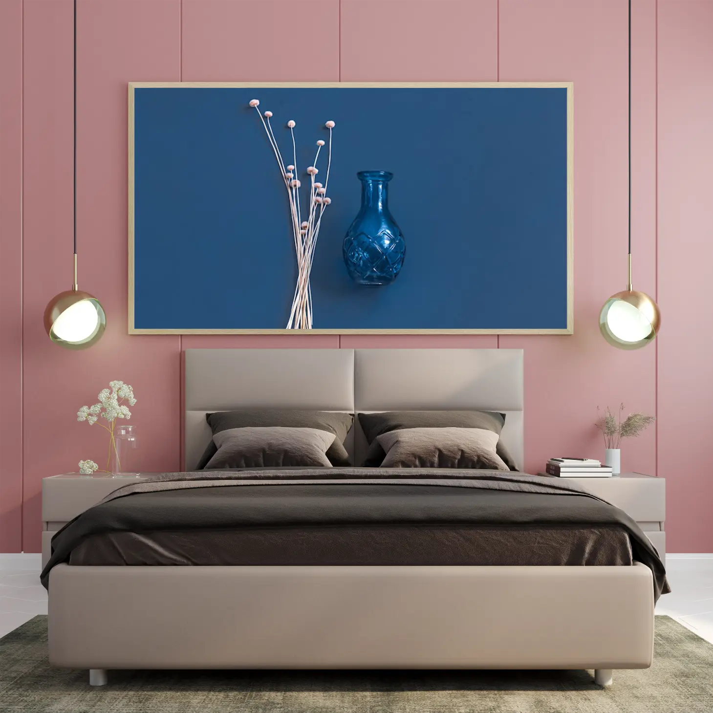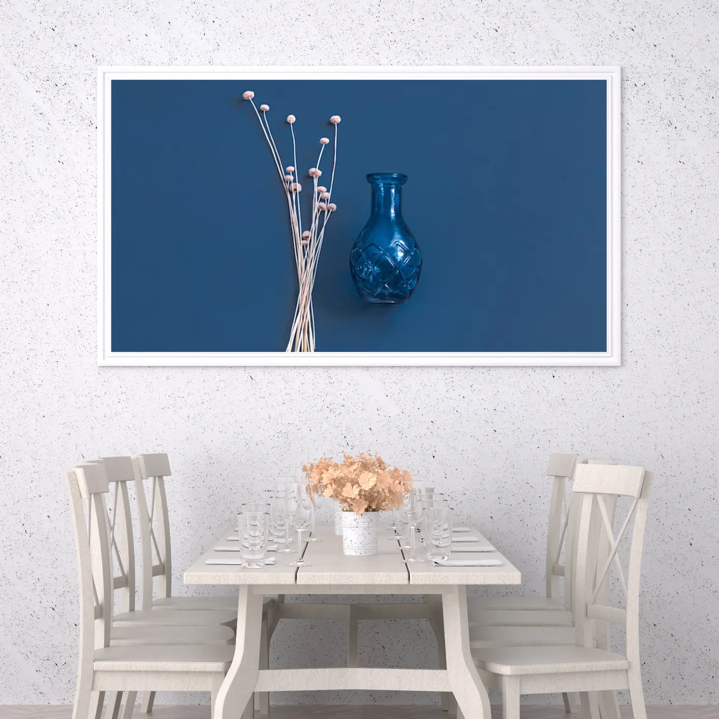 استمتع بجمال هذه اللوحة الفاخرة التي تجمع بين الألوان الهادئة والتفاصيل الدقيقة، حيث يبرز الزهر الجاف في تناغم رائع مع الزجاجة الزرقاء. تتوفر بأحجام متعددة وإطارات أنيقة، مما يجعلها خيارًا مثاليًا للتزيين أو كهدية تعبّر عن الذوق الرفيع في المناسبات الخاصة. اجعل من كل زاوية في منزلك لوحة فنية تنبض بالحياة.