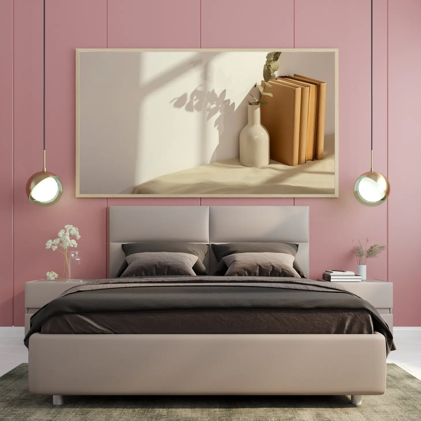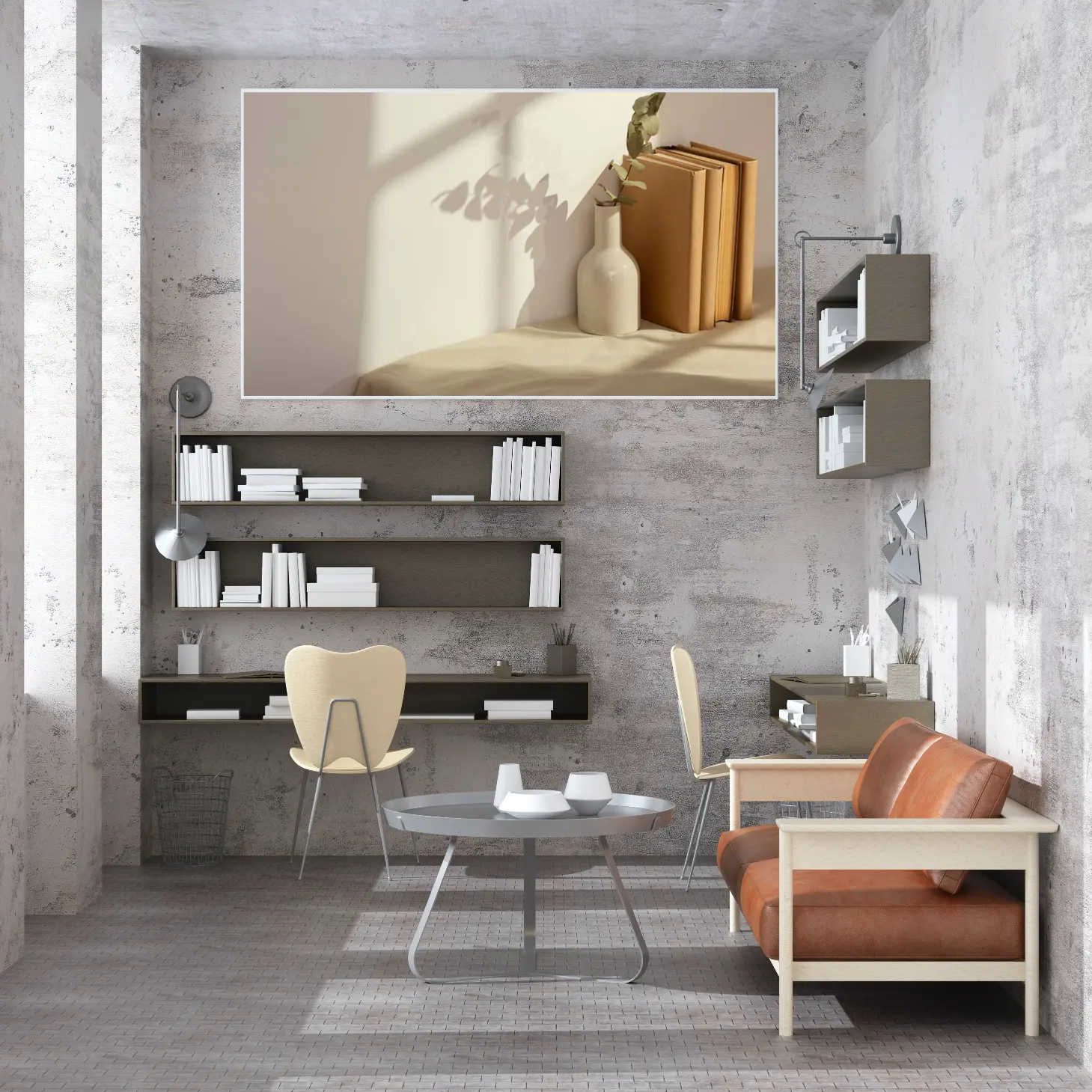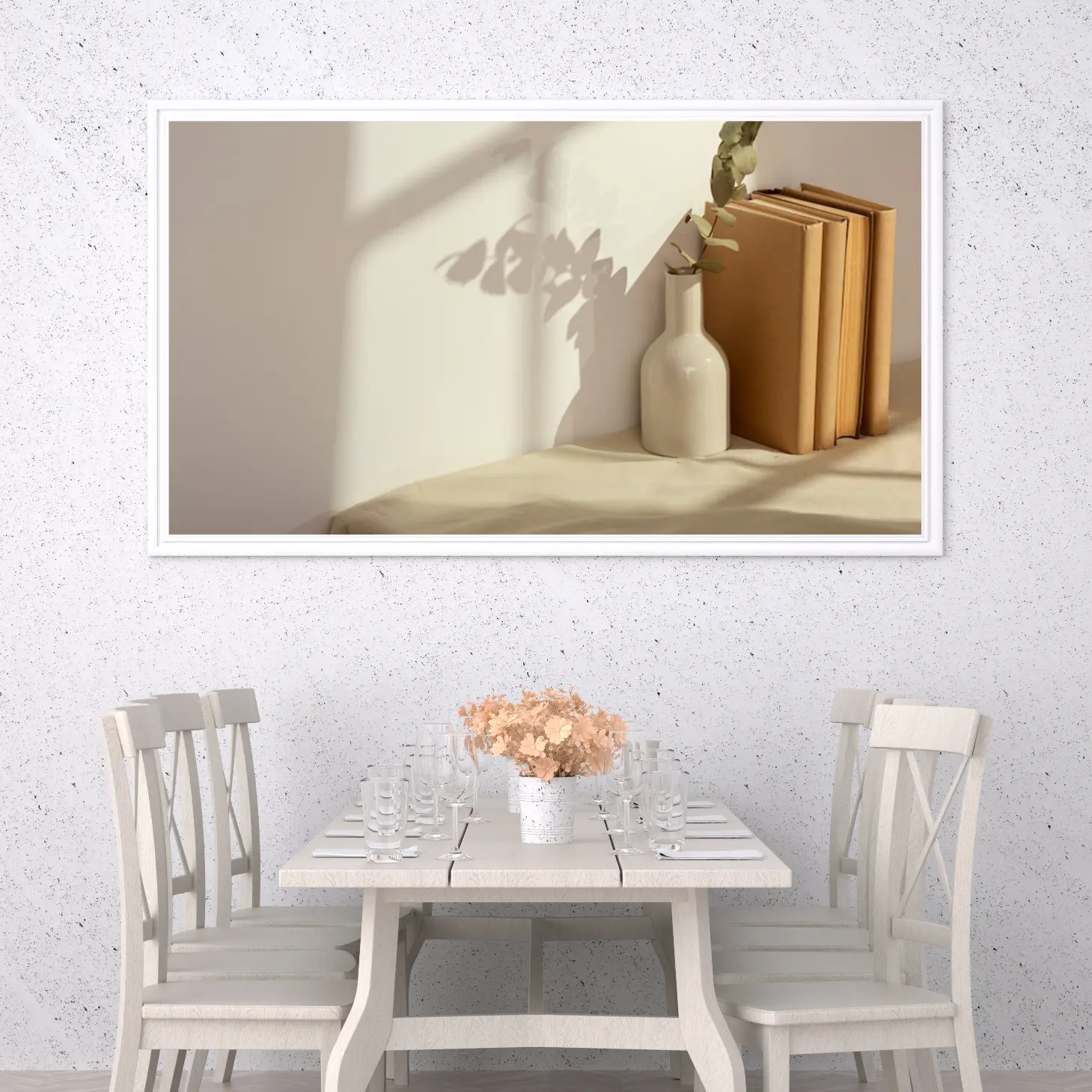 تتجلى في هذه اللوحة الفنية أجواء من السكينة والهدوء، حيث يلتقي الجمال الطبيعي مع البساطة العصرية. تتناغم الألوان الهادئة مع الضوء الطبيعي، مما يخلق تأثيرًا بصريًا مريحًا ينقل المشاهد إلى عالم من الصفاء. تعكس هذه القطعة الفنية نمط حياة متوازن، حيث تبرز تفاصيلها الدقيقة جماليات الحياة اليومية، مما يجعلها إضافة مثالية لأي مساحة.