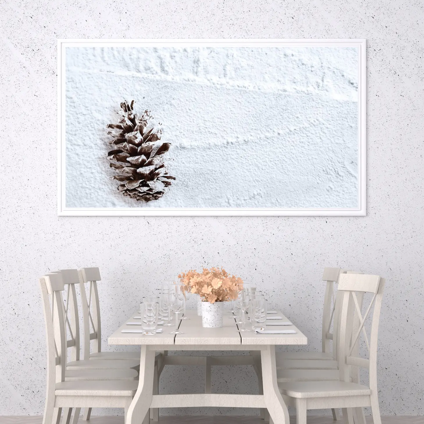 استمتع بجمال الطبيعة الخلابة مع هذه اللوحة الفاخرة التي تجمع بين بساطة اللون الأبيض ودفء تفاصيل الصنوبر. تتوفر بأحجام متعددة وإطارات أنيقة، مما يجعلها خيارًا مثاليًا لتزيين منزلك أو تقديمها كهدية تعبّر عن الذوق الرفيع في المناسبات الخاصة. اجعل من كل زاوية في منزلك لوحة فنية تعكس ذوقك الرفيع.