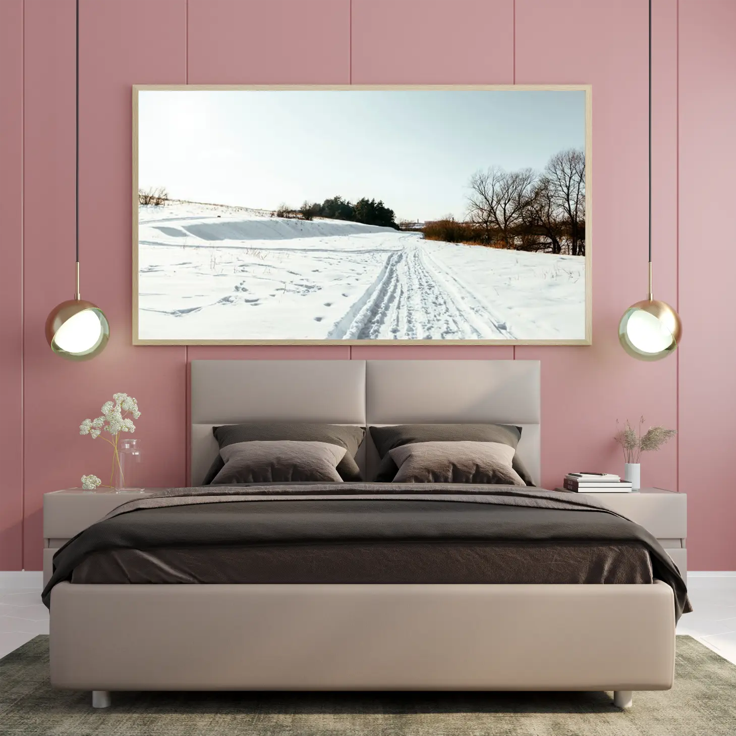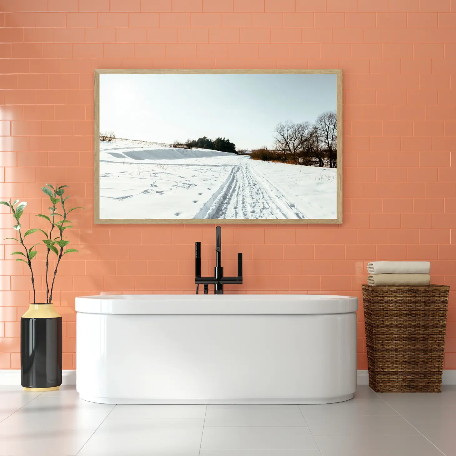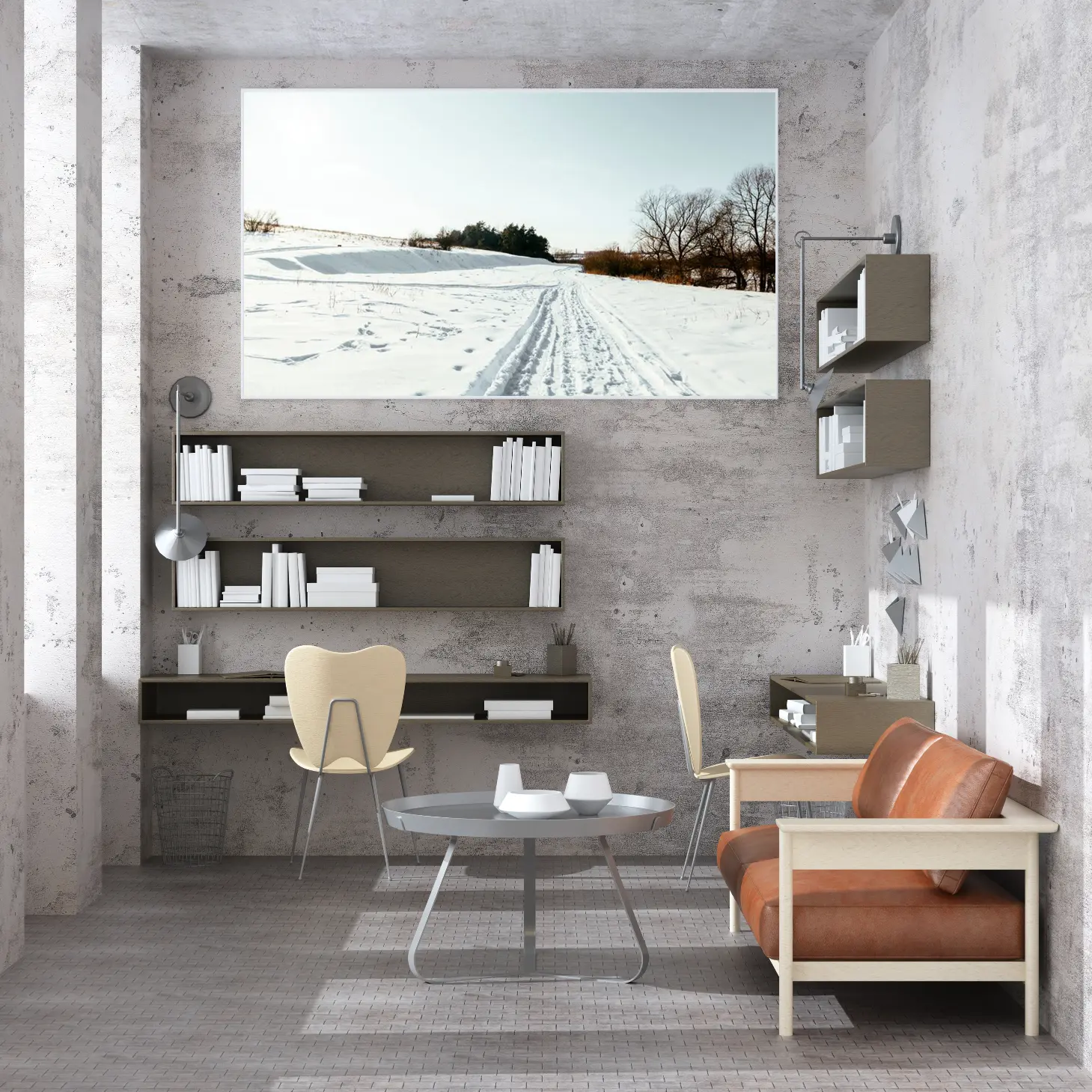 تتجلى في هذه اللوحة جماليات الطبيعة الخلابة، حيث يلتقي البياض الناصع للثلوج مع زرقة السماء الهادئة، مما يخلق إحساسًا بالسكينة والهدوء. تعكس المشاهد الطبيعية المرسومة هنا روح الشتاء، حيث تمتد المسارات المعبدة عبر الثلوج، مما يدعو الناظر إلى استكشاف ما وراء الأفق. إن هذه القطعة الفنية ليست مجرد ديكور جداري، بل هي نافذة إلى عالم من الصفاء والجمال، تضفي على المكان أجواءً من الراحة والسكينة، مما يجعلها خيارًا مثاليًا لمن يسعى لإضفاء لمسة من الأناقة على منزله.