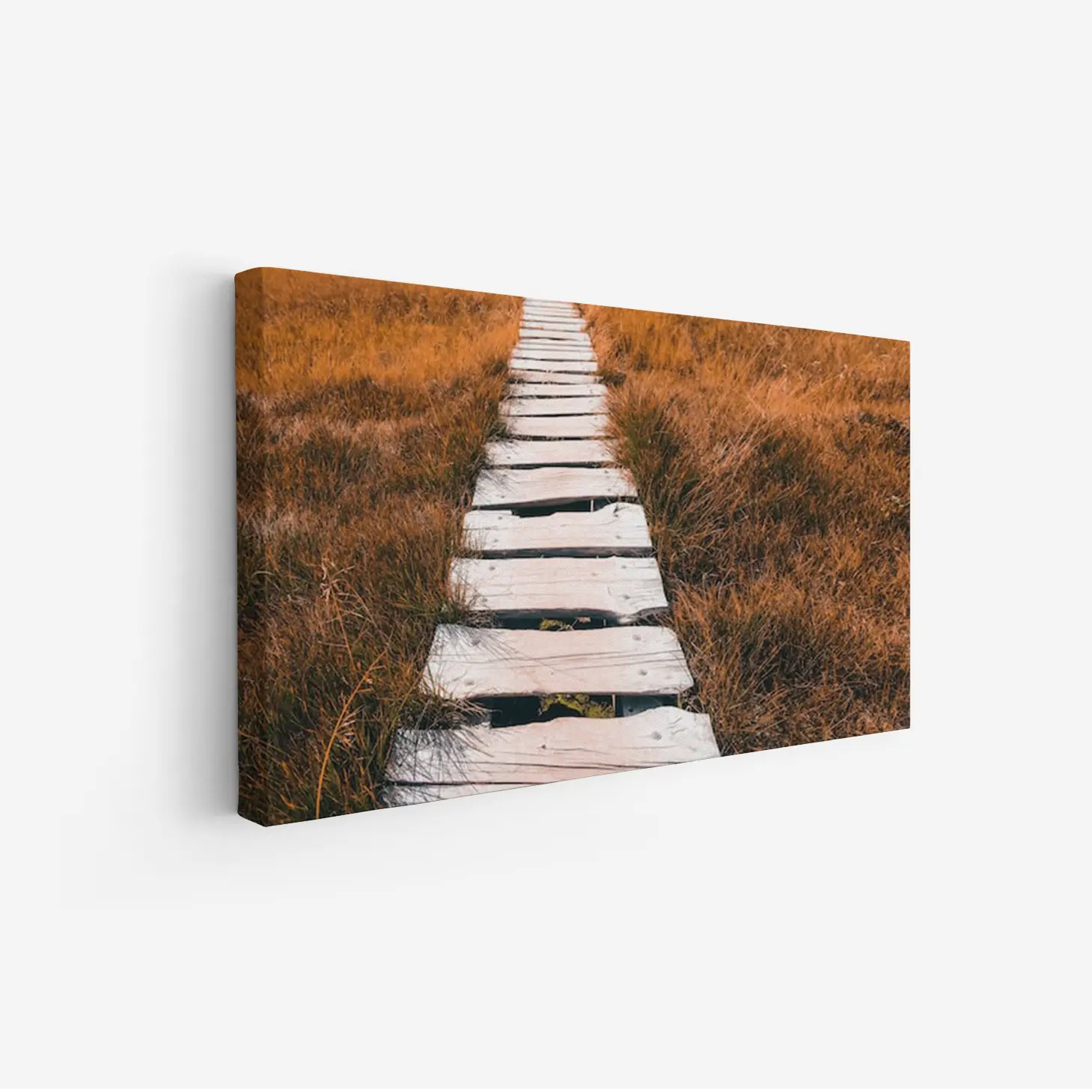 لوحة طبيعة هادئة – ممر خشبي – أعشاب صفراء – دافئ – لوحات طبيعة – لوحات كانفاس