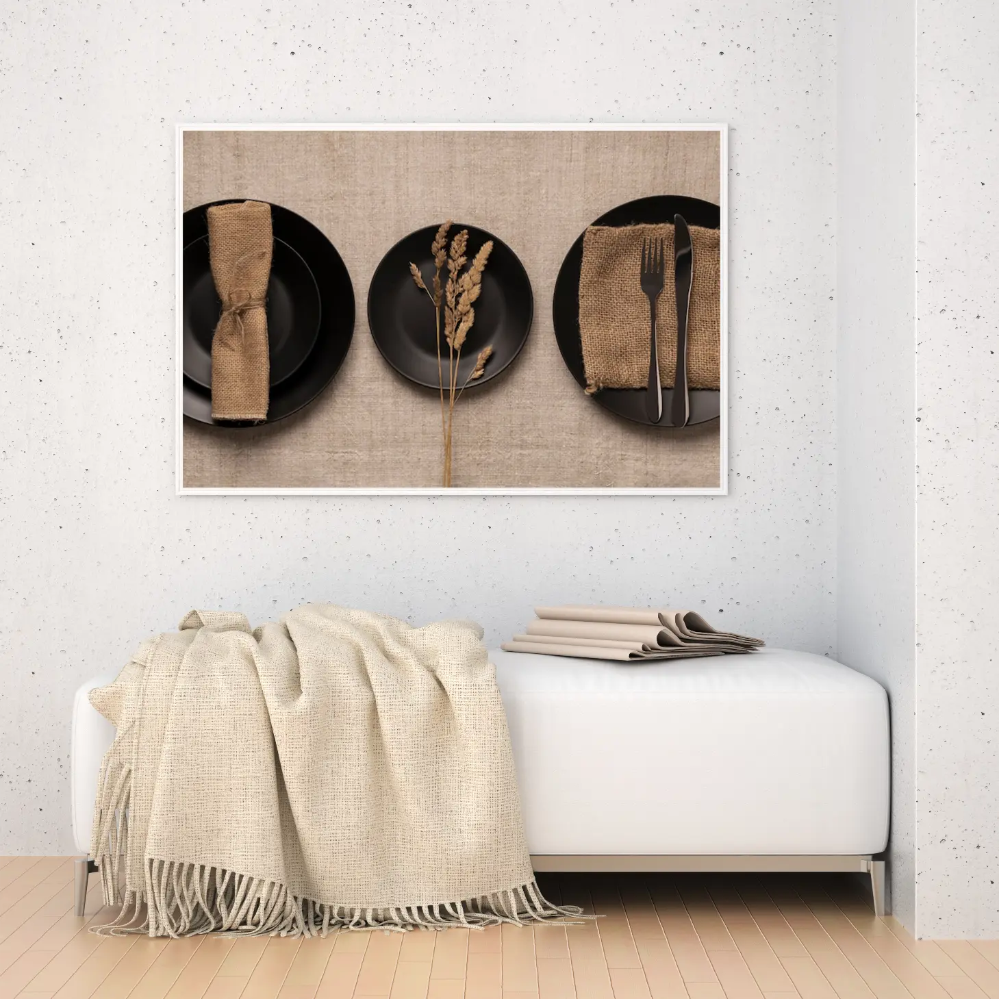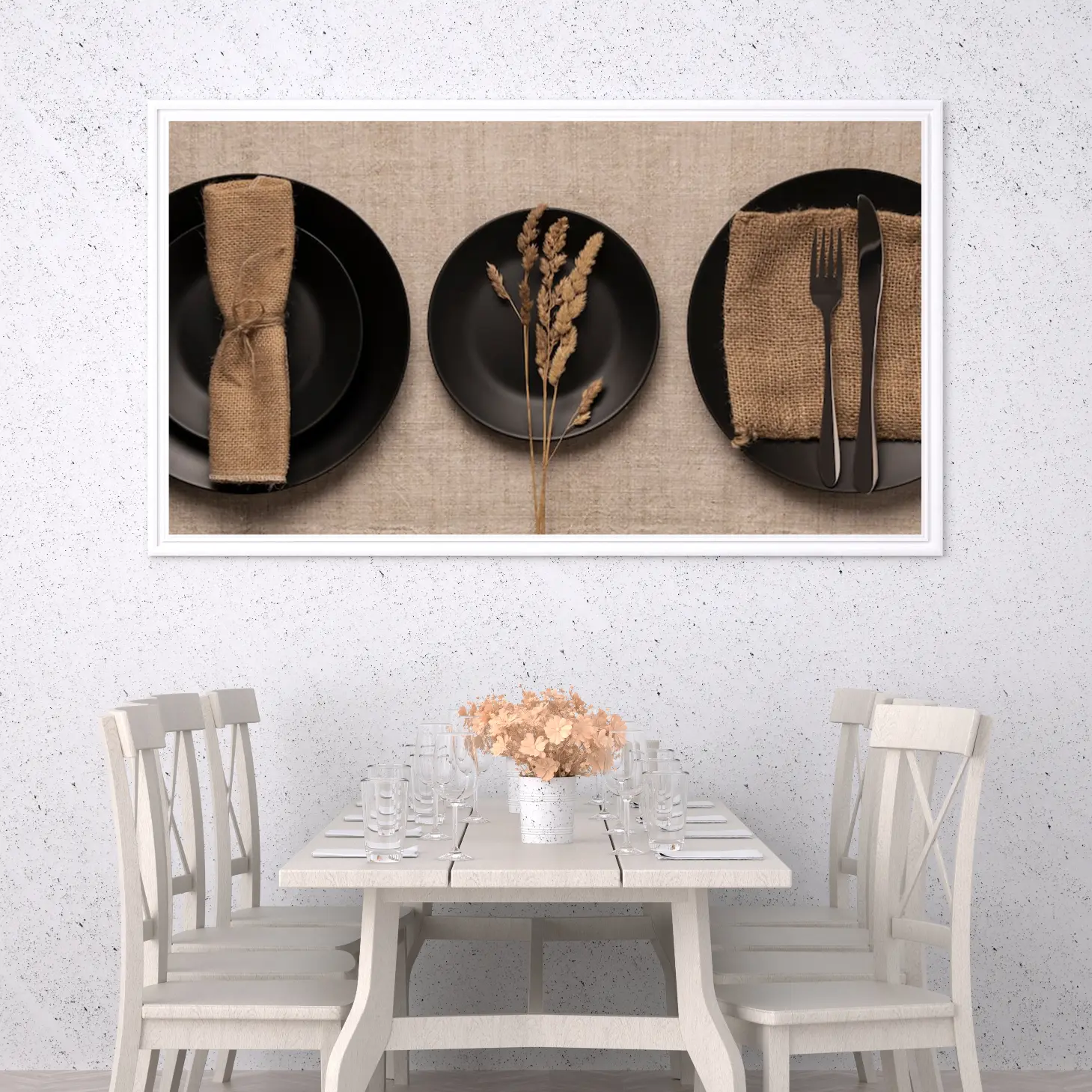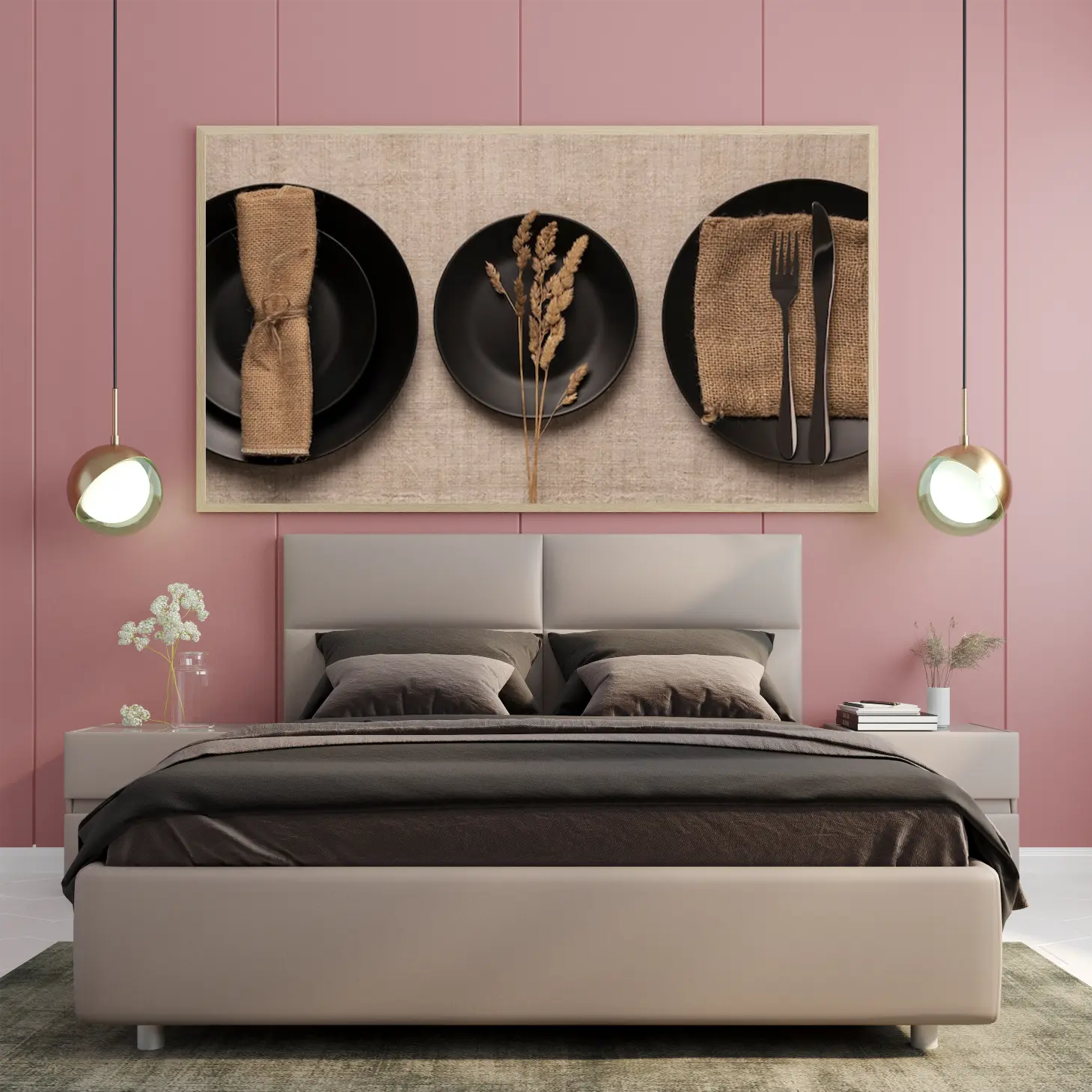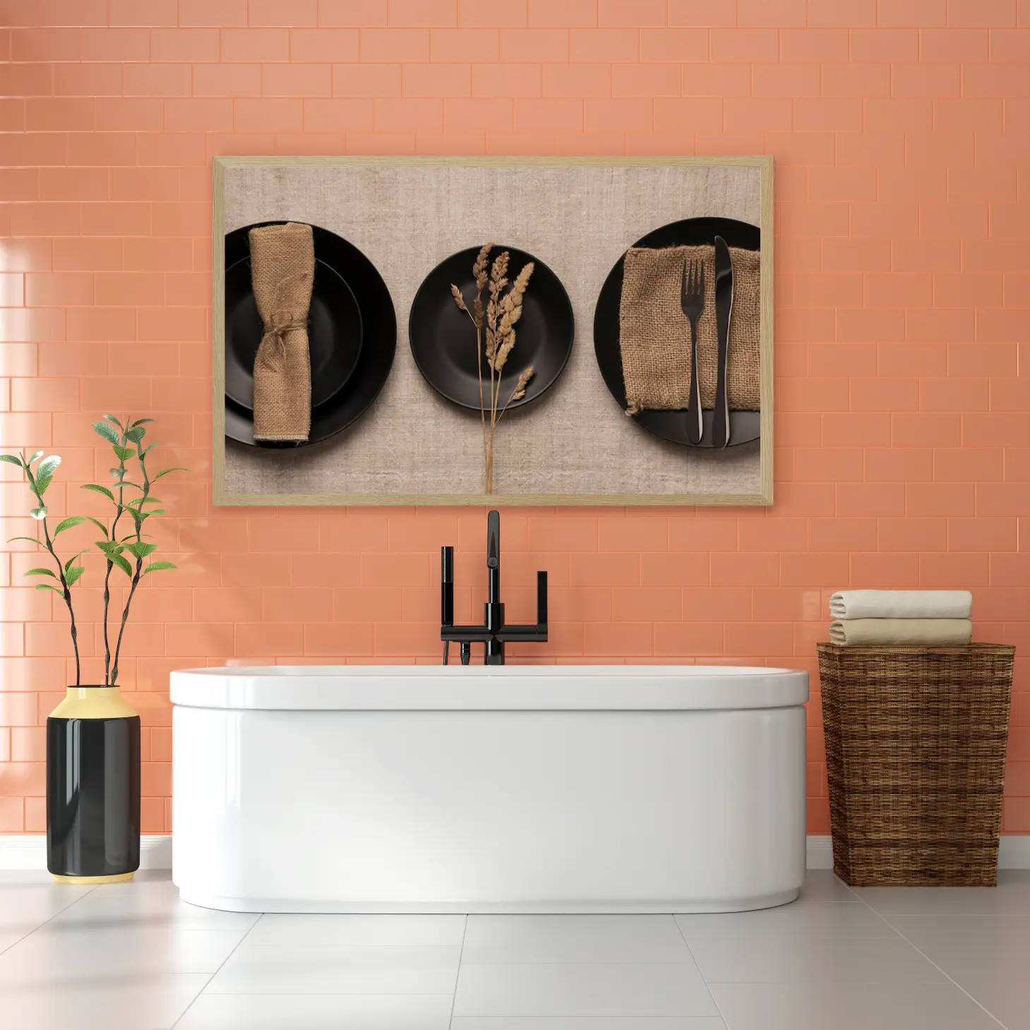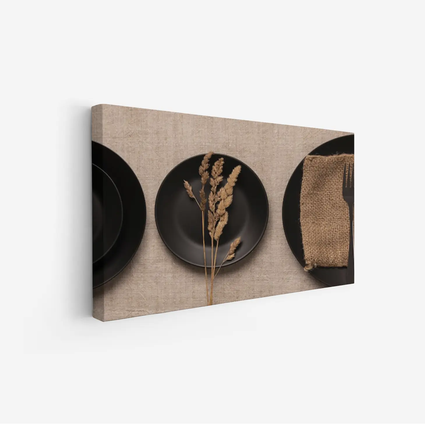لوحة طعام – أطباق سوداء – ألوان دافئة – هادئ – لوحات فنية مودرن – لوحات كانفاس
