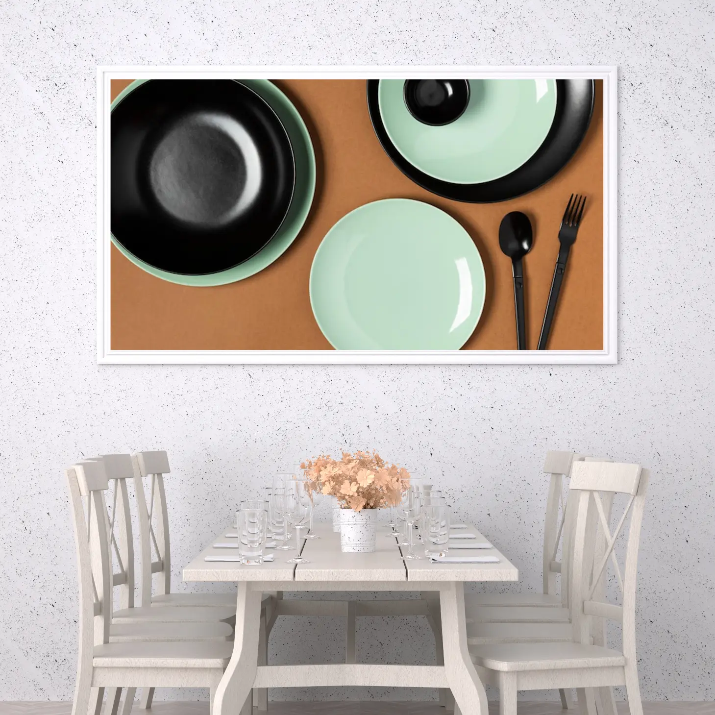 استمتع بجمال هذه اللوحة الفريدة التي تجمع بين الألوان الهادئة والتصميم العصري، حيث تعكس الأطباق المتنوعة تناغمًا رائعًا يضفي لمسة من الأناقة على أي مساحة. تتوفر بمقاسات متعددة وإطارات أنيقة، مما يجعلها خيارًا مثاليًا للهدايا التي تعبر عن الذوق الرفيع في المناسبات الخاصة. اجعل من هذه التحفة الفنية جزءًا من ديكور منزلك أو هدية مميزة لأحبائك.