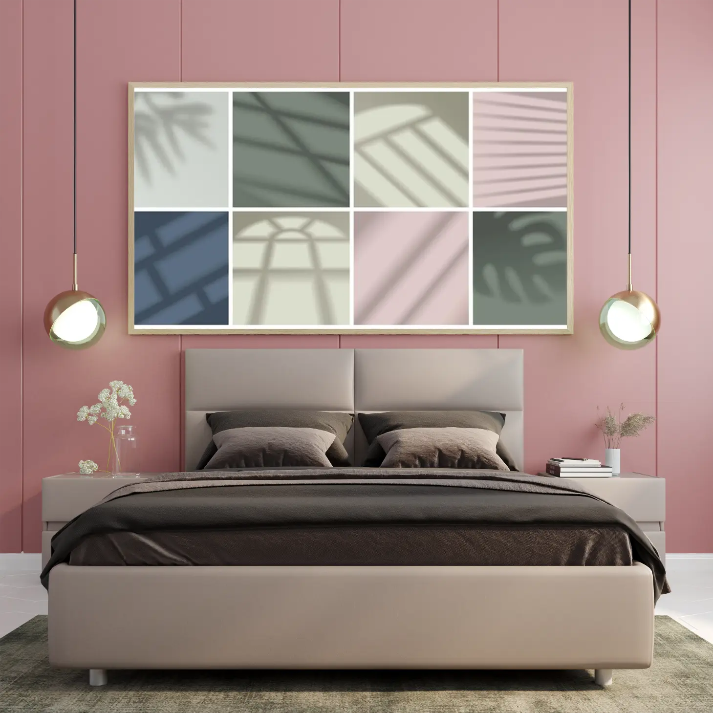 تتجلى في هذه اللوحة الفنية تجربة بصرية فريدة، حيث تتناغم الألوان الهادئة مع الظلال المتنوعة لتخلق أجواءً من السكينة والجمال. تعكس الأشكال الهندسية المتداخلة توازنًا مثاليًا، مما يجعلها خيارًا مثاليًا لإضفاء لمسة عصرية على أي مساحة. إن تأثير هذه القطعة الفنية على المكان لا يقتصر فقط على الجمال، بل يمتد ليعكس نمط حياة راقٍ ومتميز.