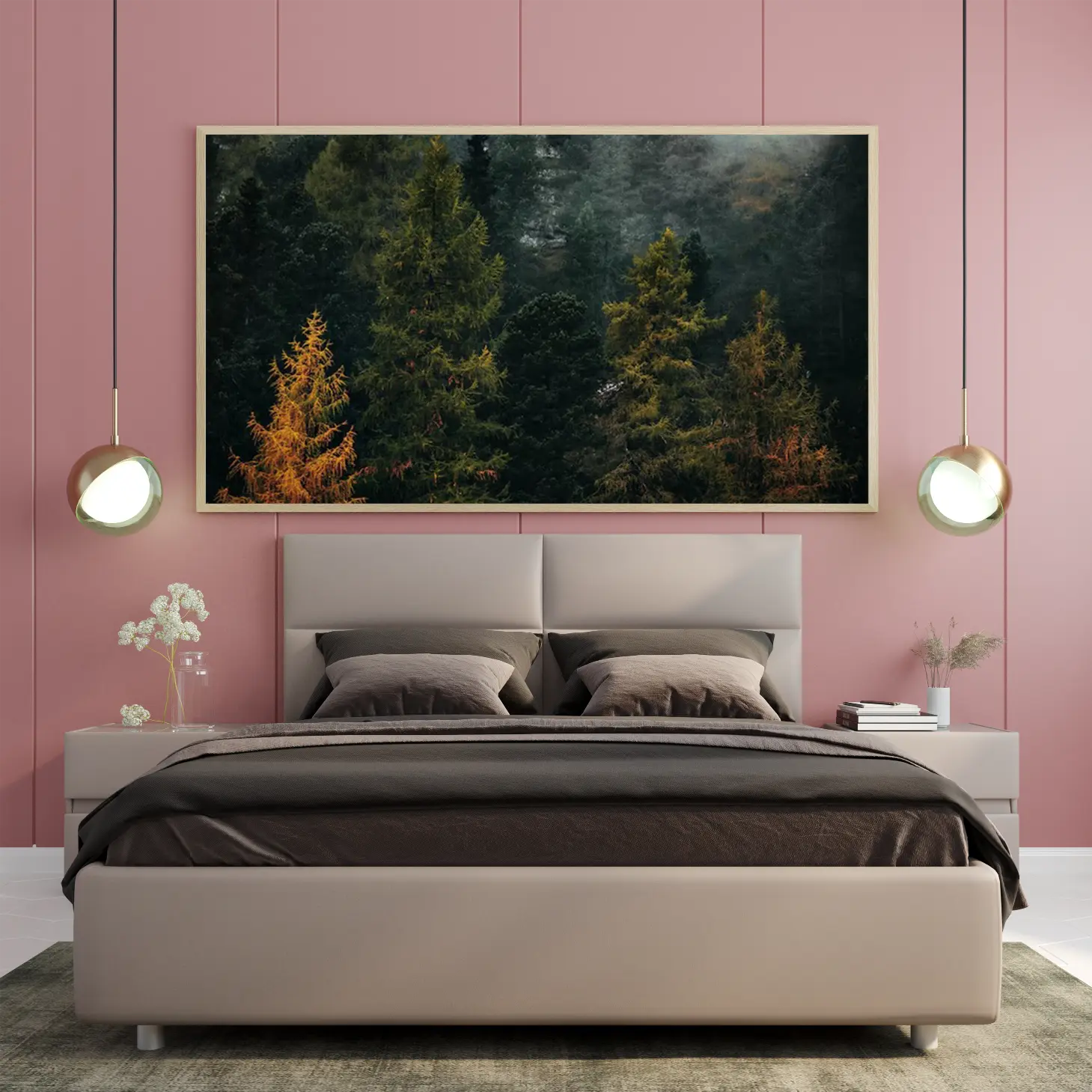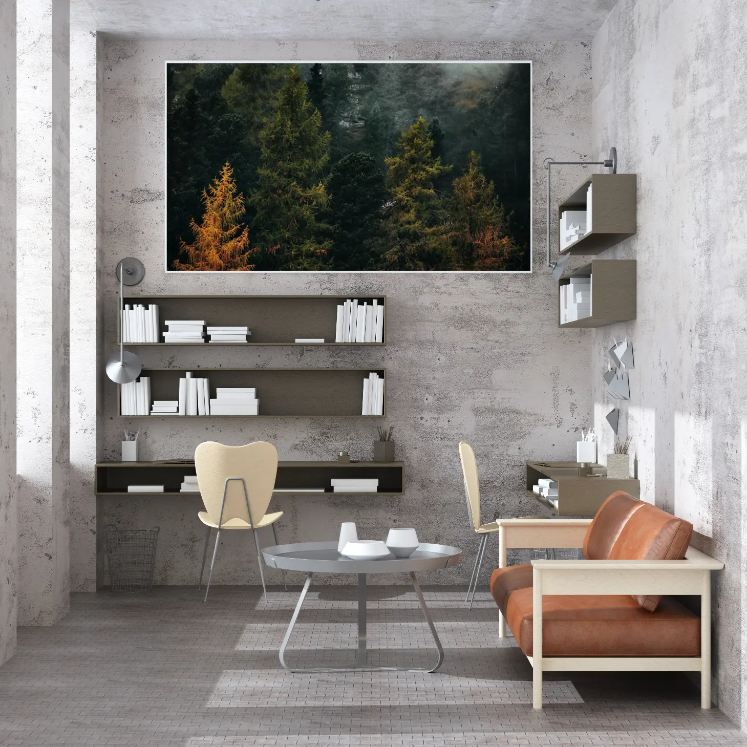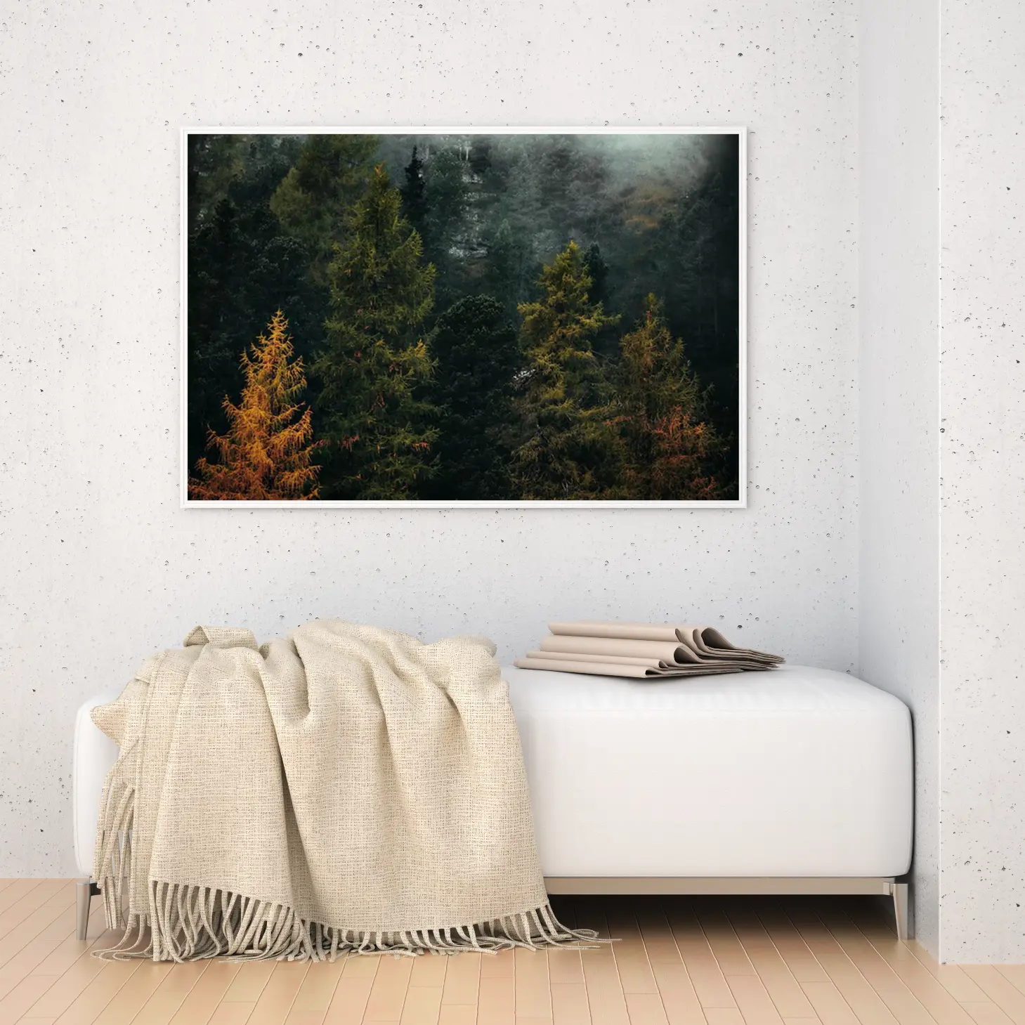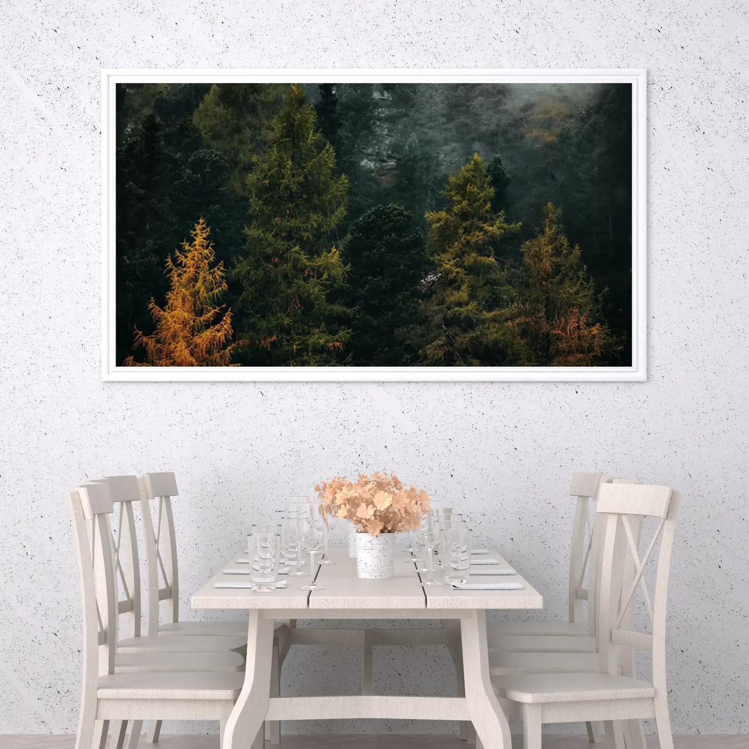تجسد هذه اللوحة جمال الطبيعة الخلابة، حيث تتناغم ألوان الأشجار المتنوعة مع الخلفية الغامضة، مما يخلق أجواءً من السكينة والهدوء. تعكس هذه القطعة الفنية روح الحياة البرية، وتضفي لمسة من الانتعاش على أي مساحة، مما يجعلها خيارًا مثاليًا لمن يسعى لإضفاء طابع طبيعي على ديكوره المنزلي. إن تأثيرها البصري يساهم في خلق بيئة مريحة، مما يجعلها إضافة مثالية لأي غرفة.